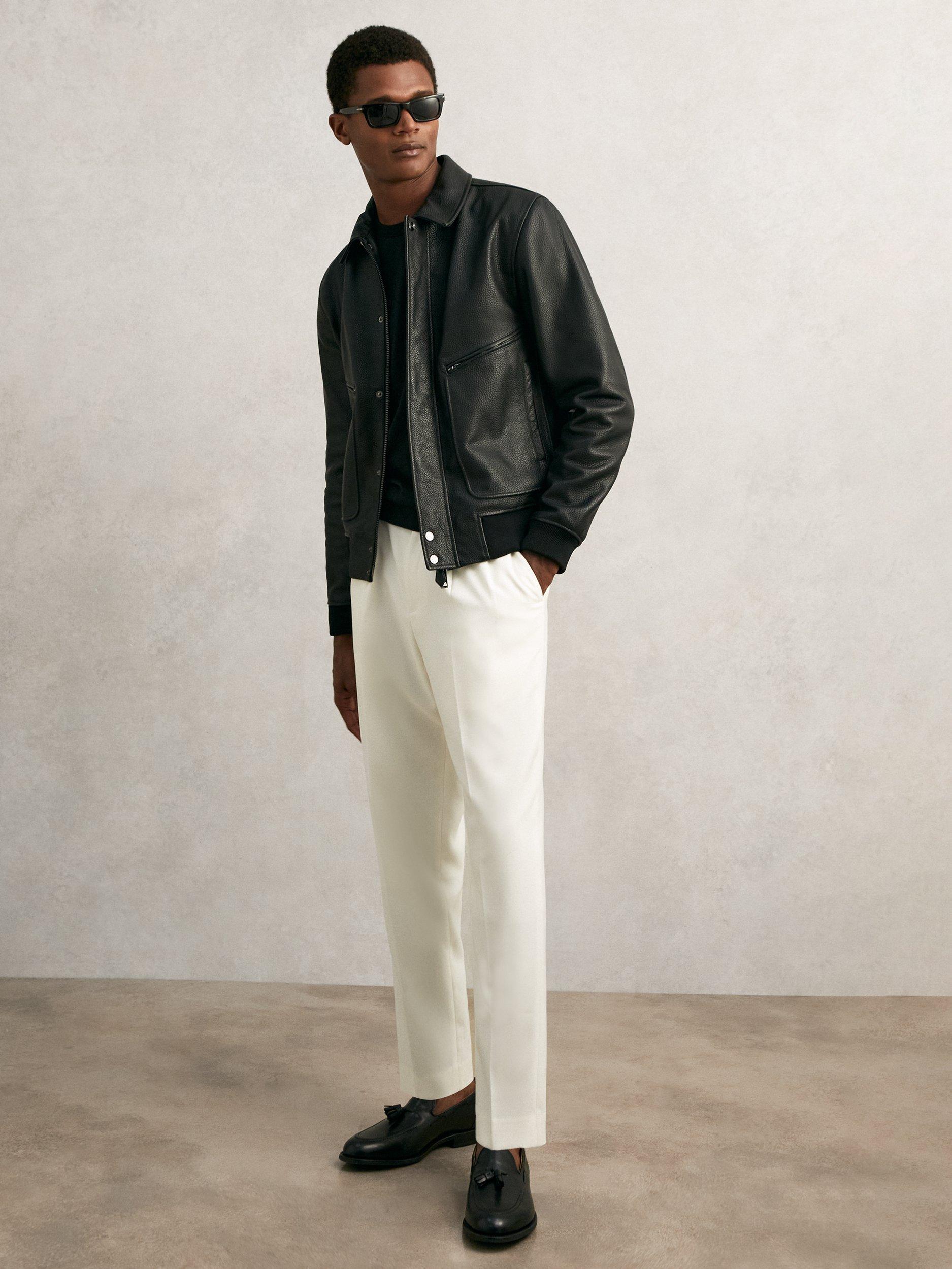 This leather jacket sharpens your look for any occasion, with a zip fastening for ease and comfort. Enjoy effortless layering and a fit that moves with you, making your day a little smoother.