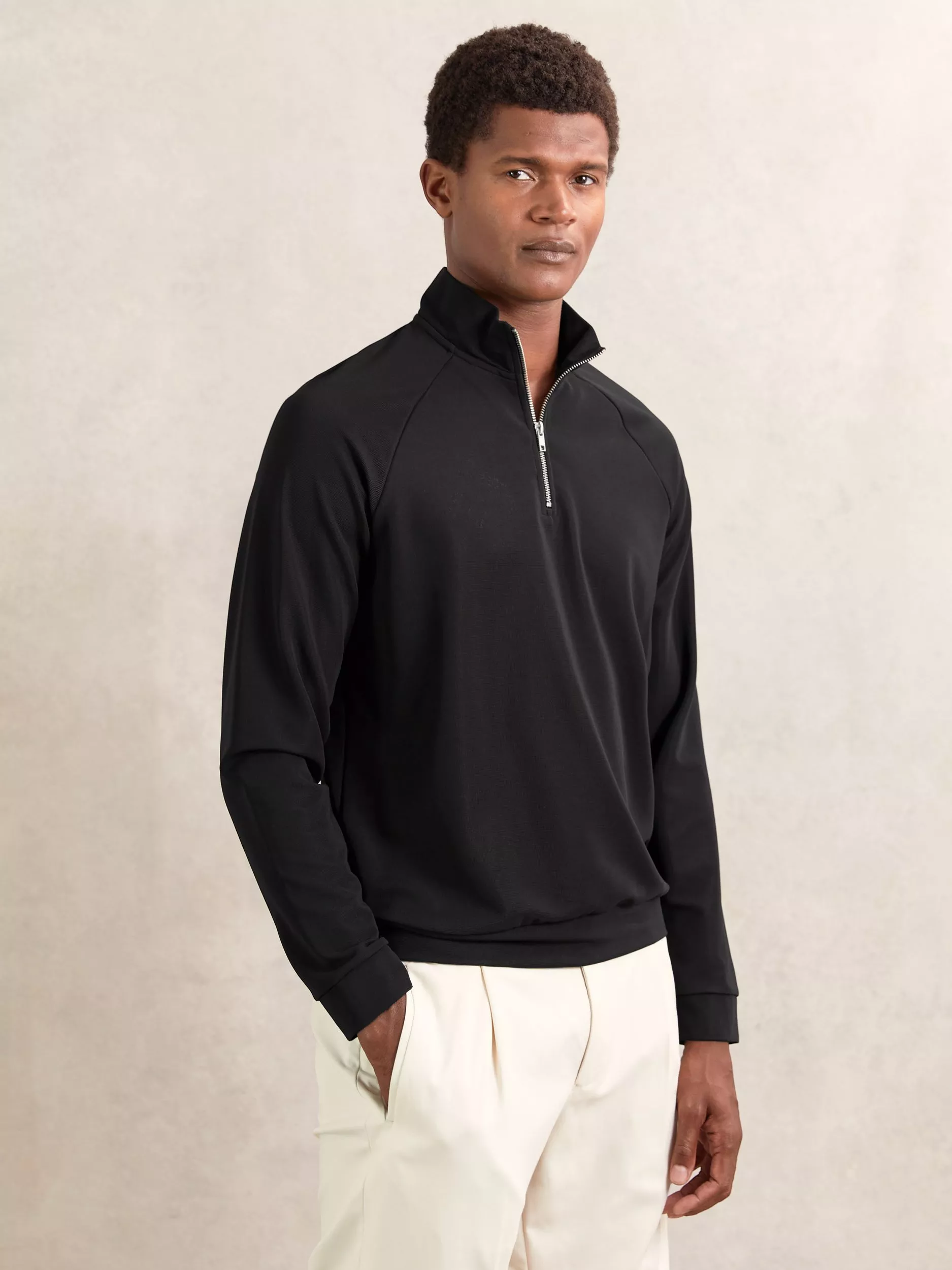 A long sleeved polo shirt from Reiss, with a regular fit and half zip neck. Pull on with chinos for a smarter edge.