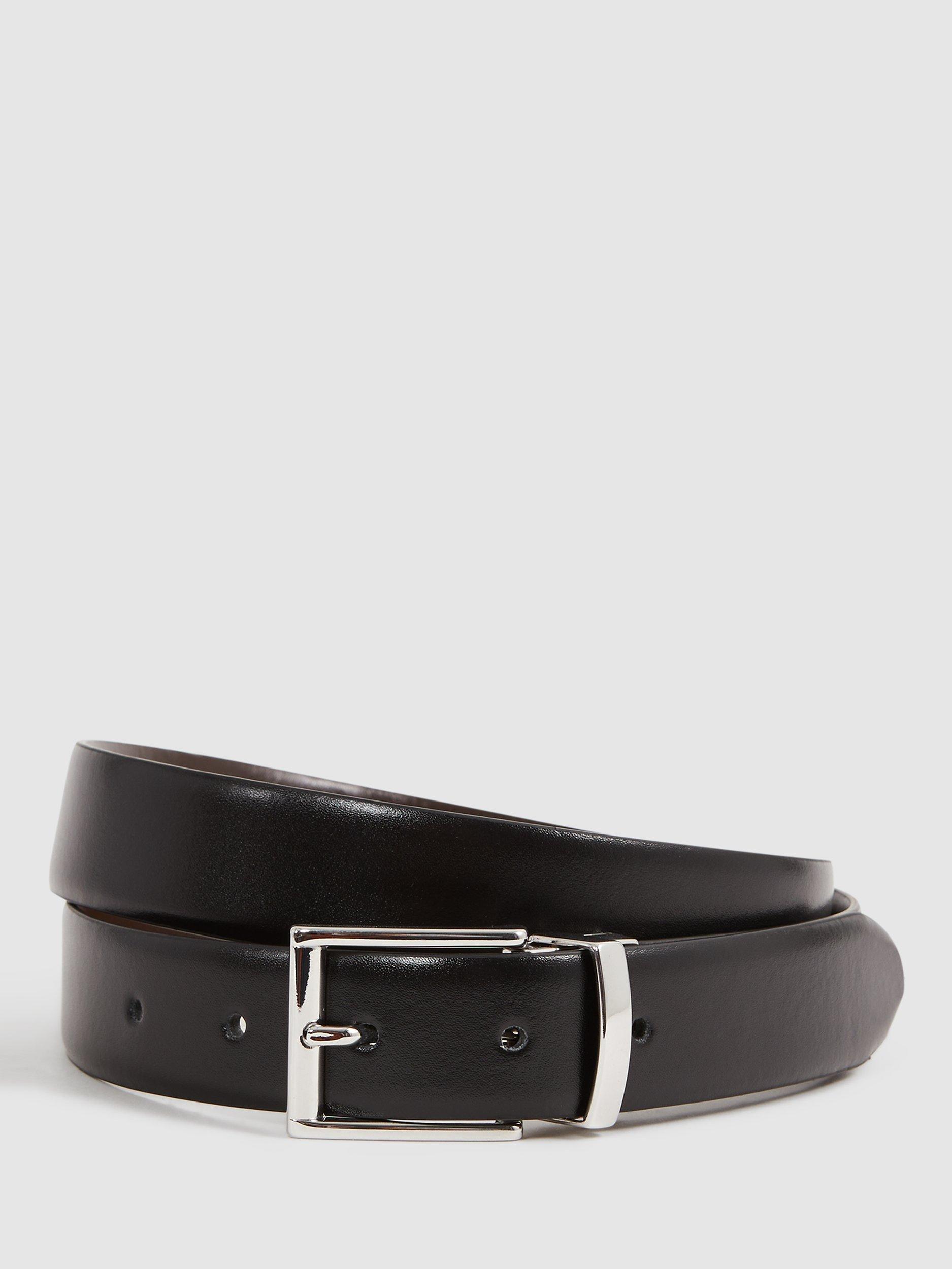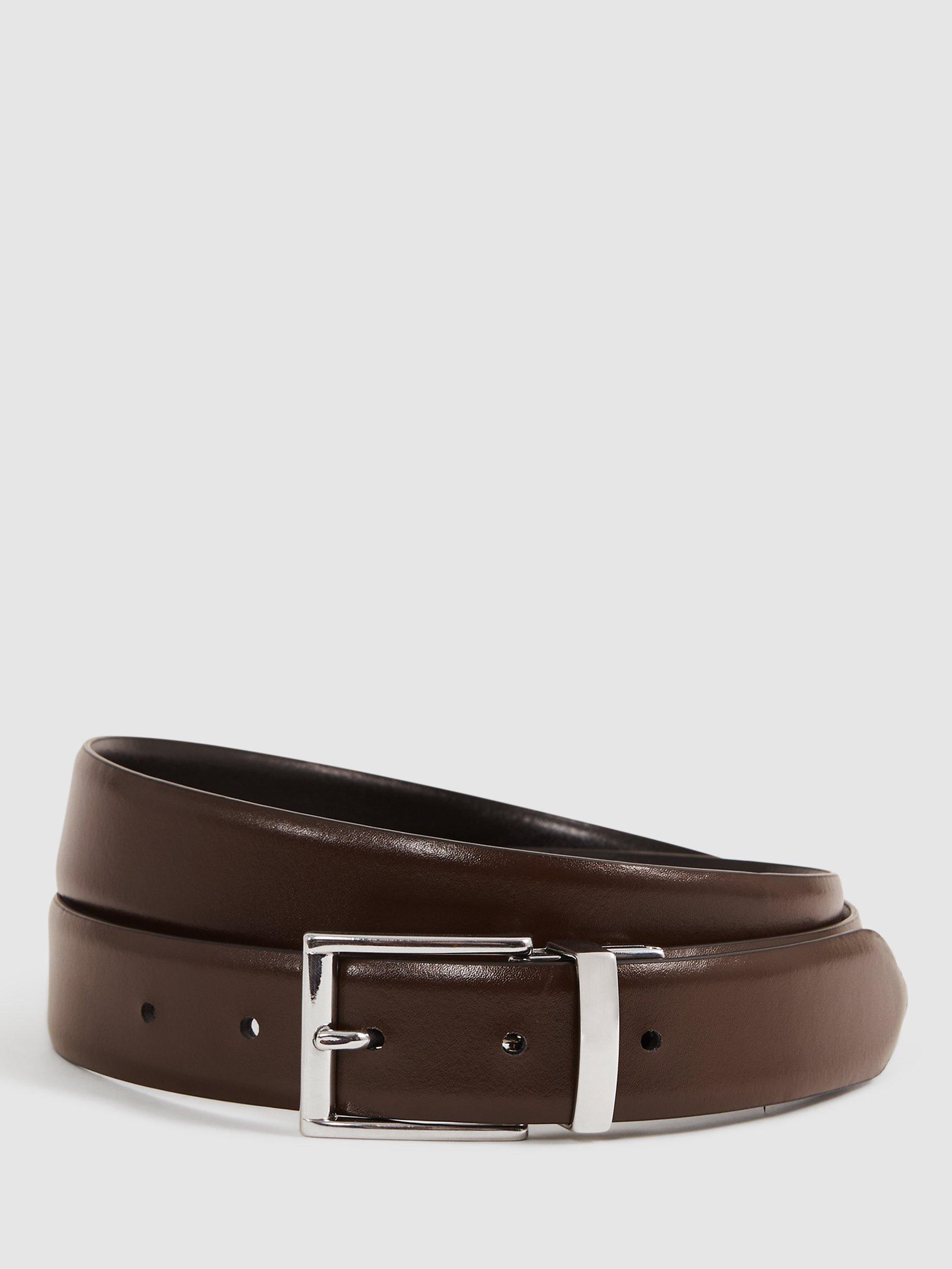ReissRicky Leather Belt, Black/Dark Brown