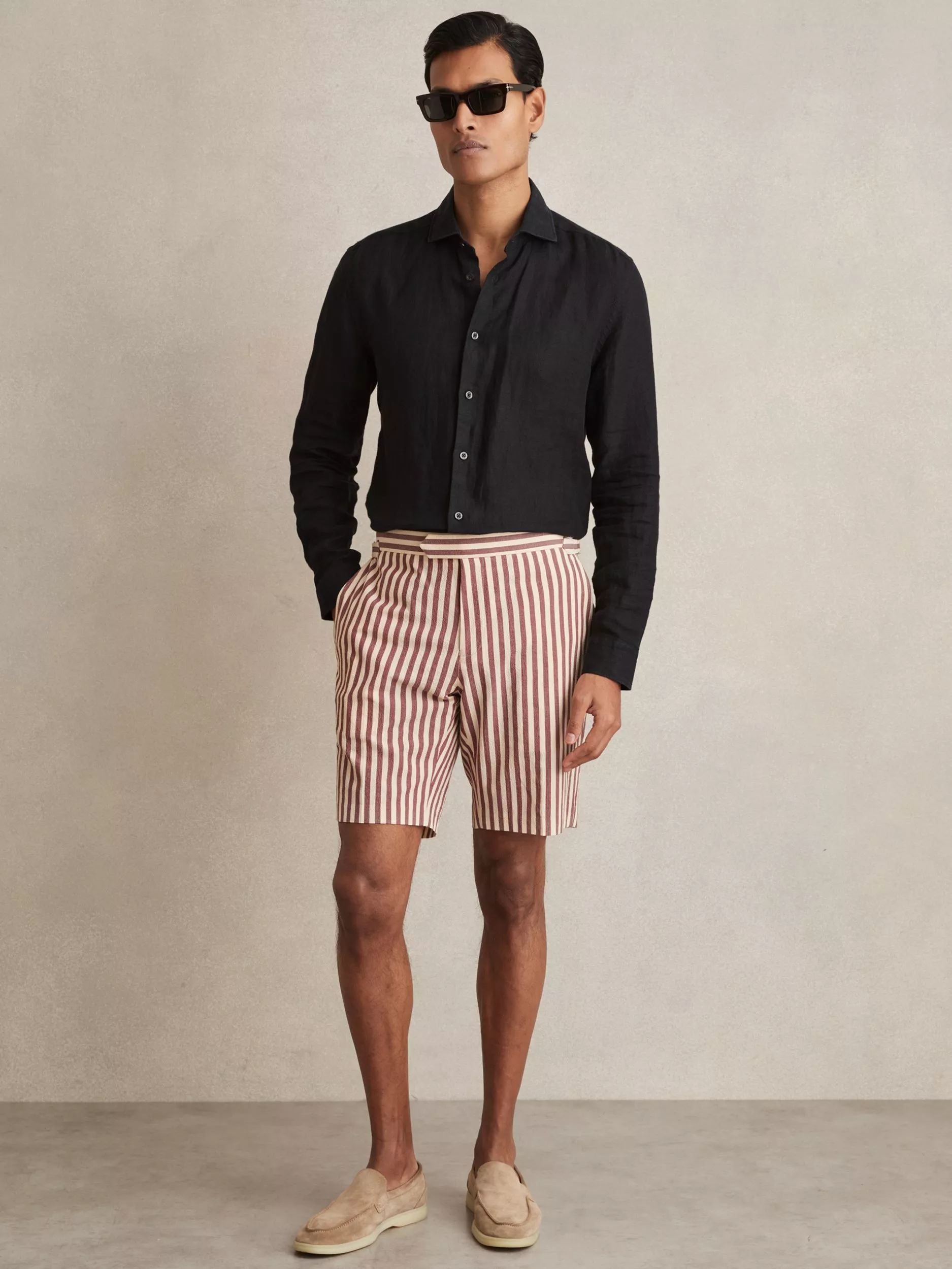 Patterned with timeless stripes, these shorts from Reiss are blended with cotton for a soft, breathable handle. Offering the ideal blend of relaxed and refined style, they will serve as a sophisticated companion to t-shirts and knitwear.