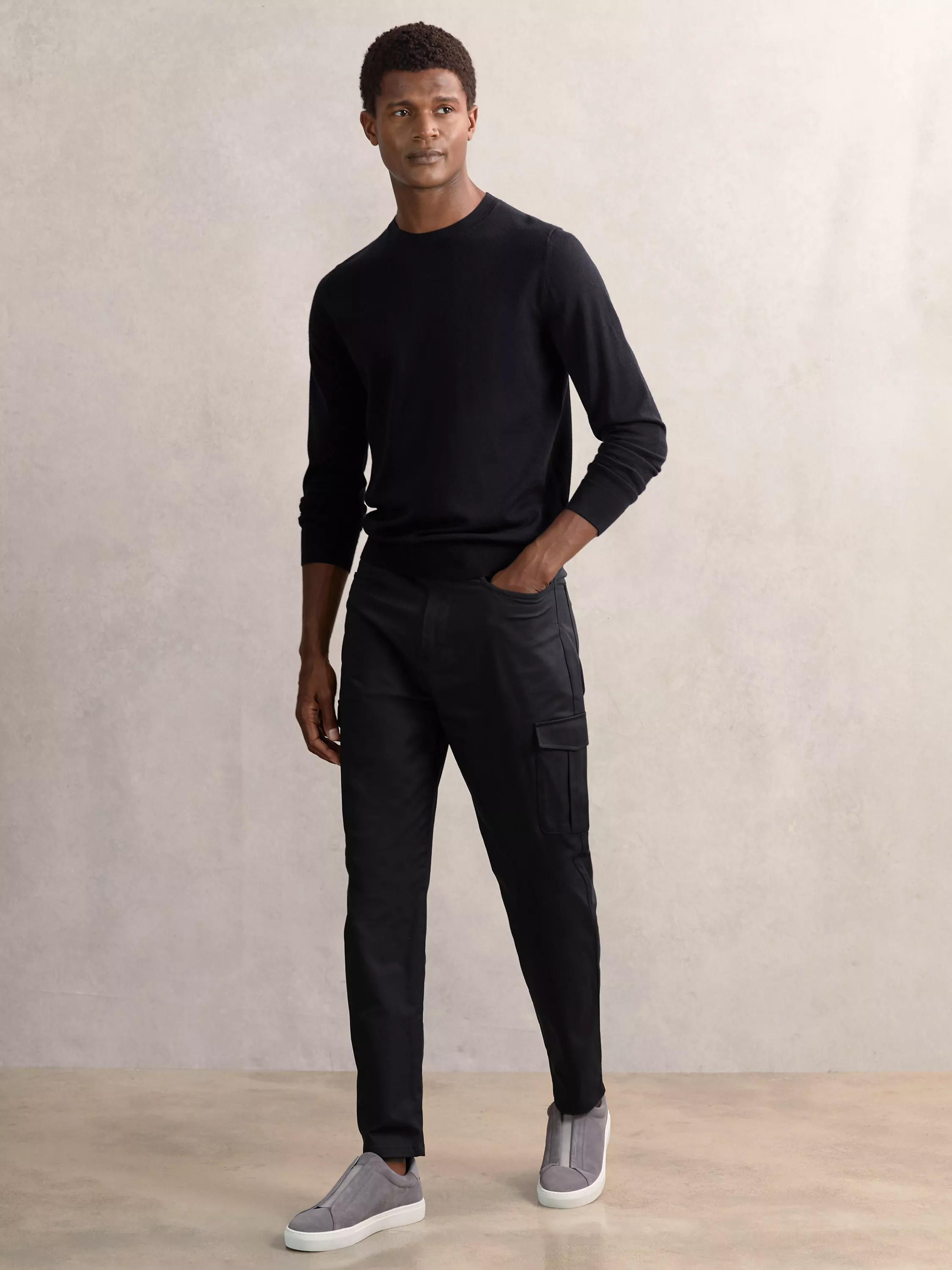 A pair of cargo trousers from Reiss, in a cotton blend with regular-length hems. Clever pockets keep your essentials close, while the straight cut ensures comfort all day.
