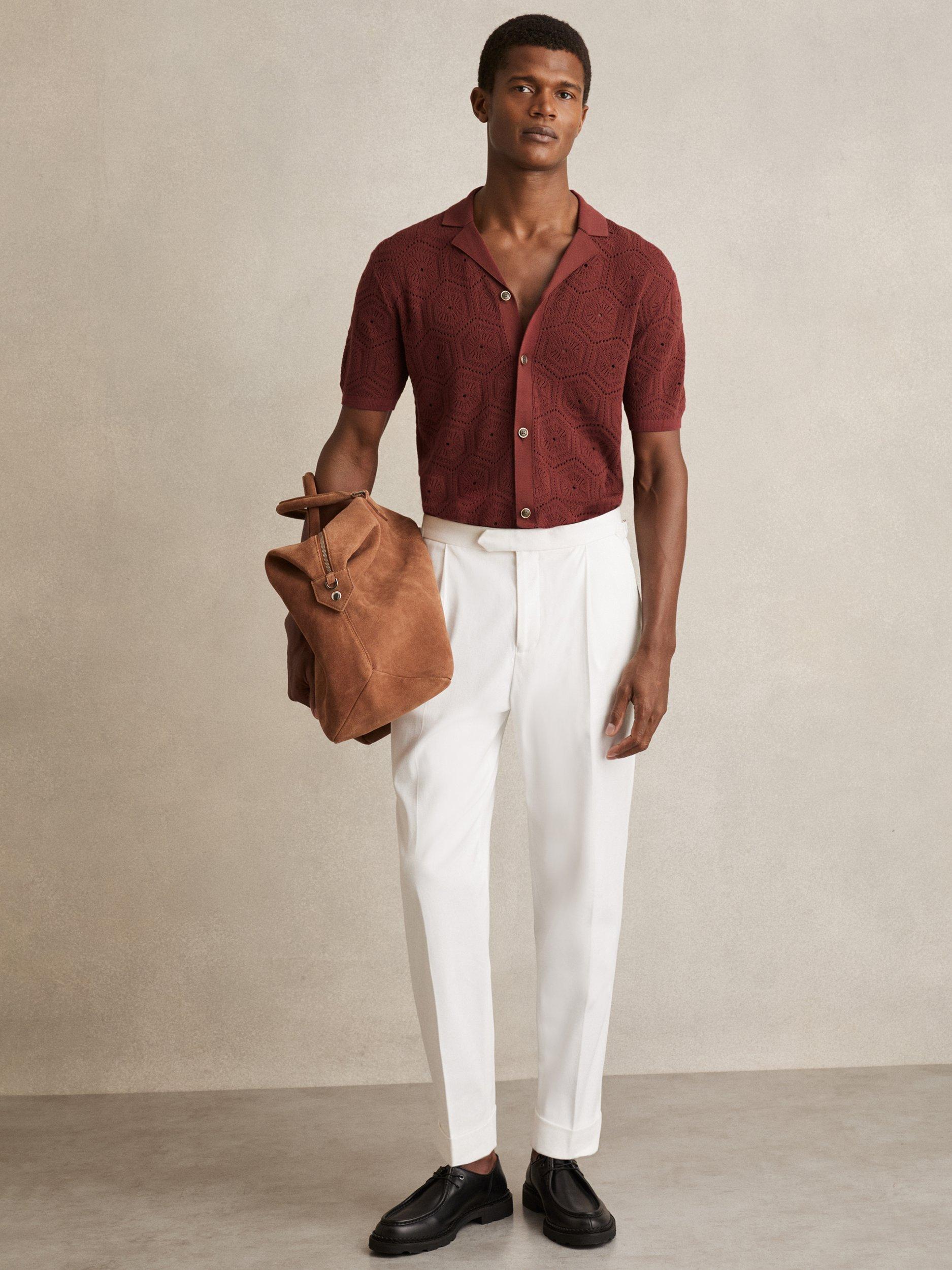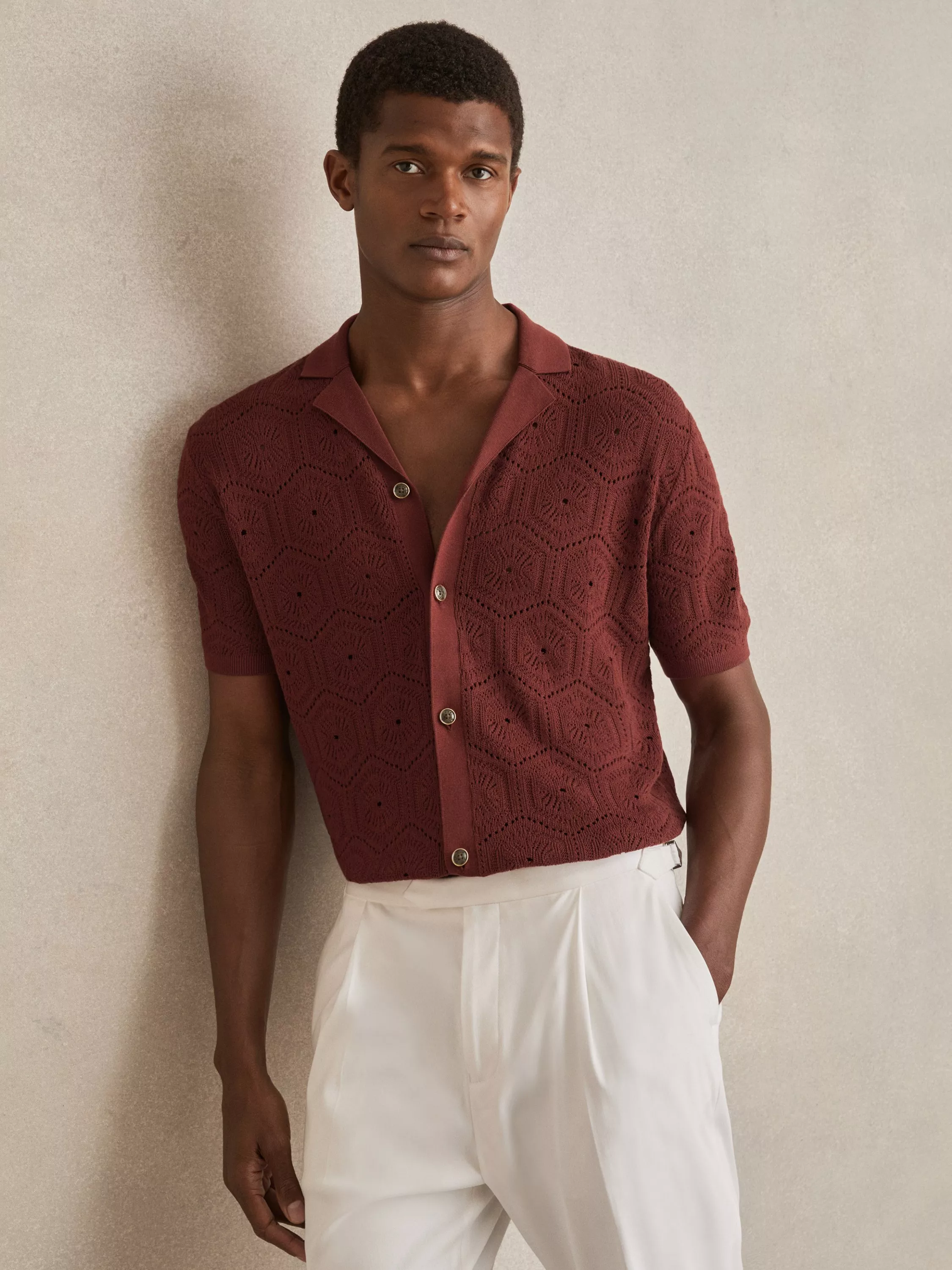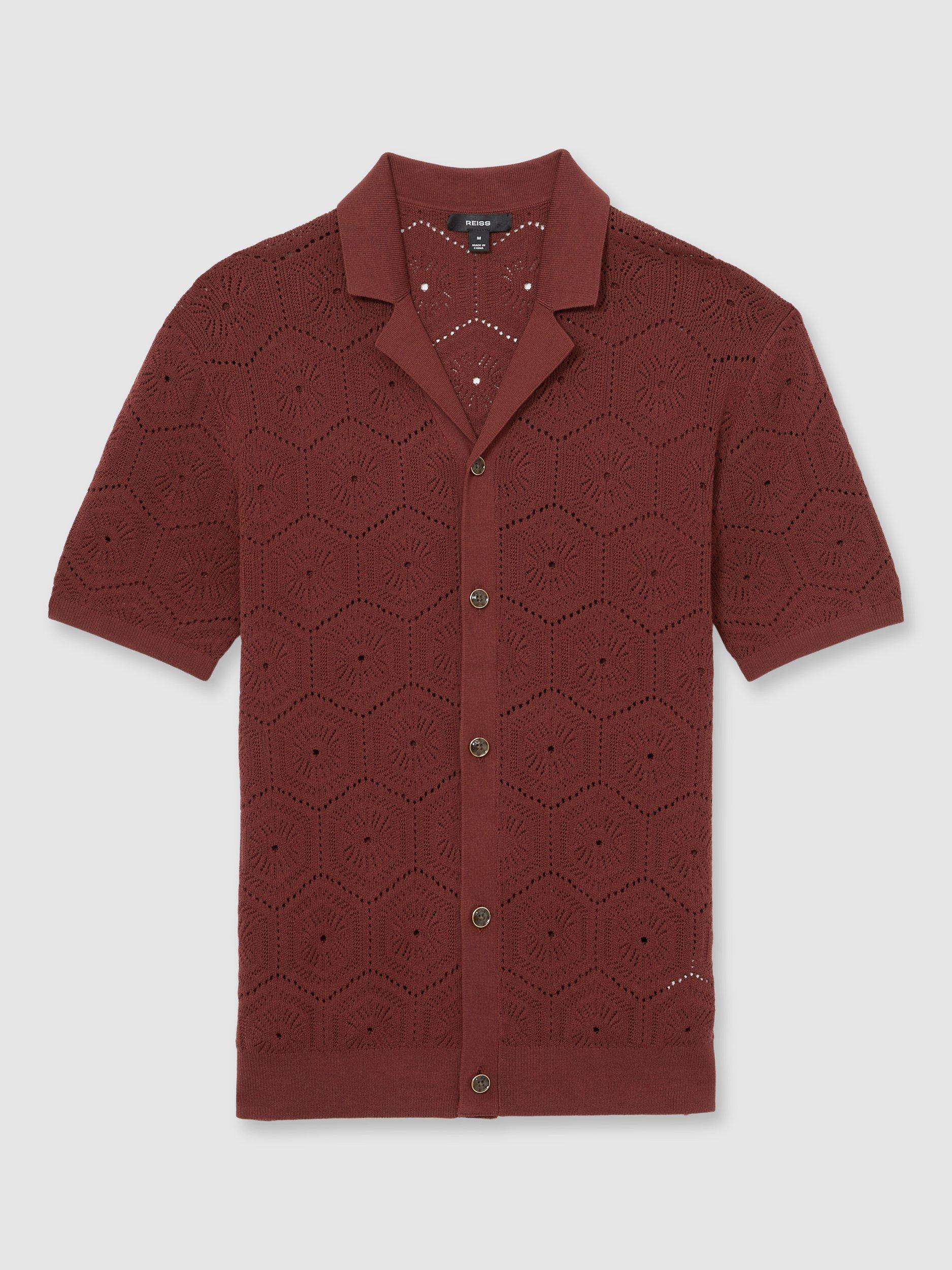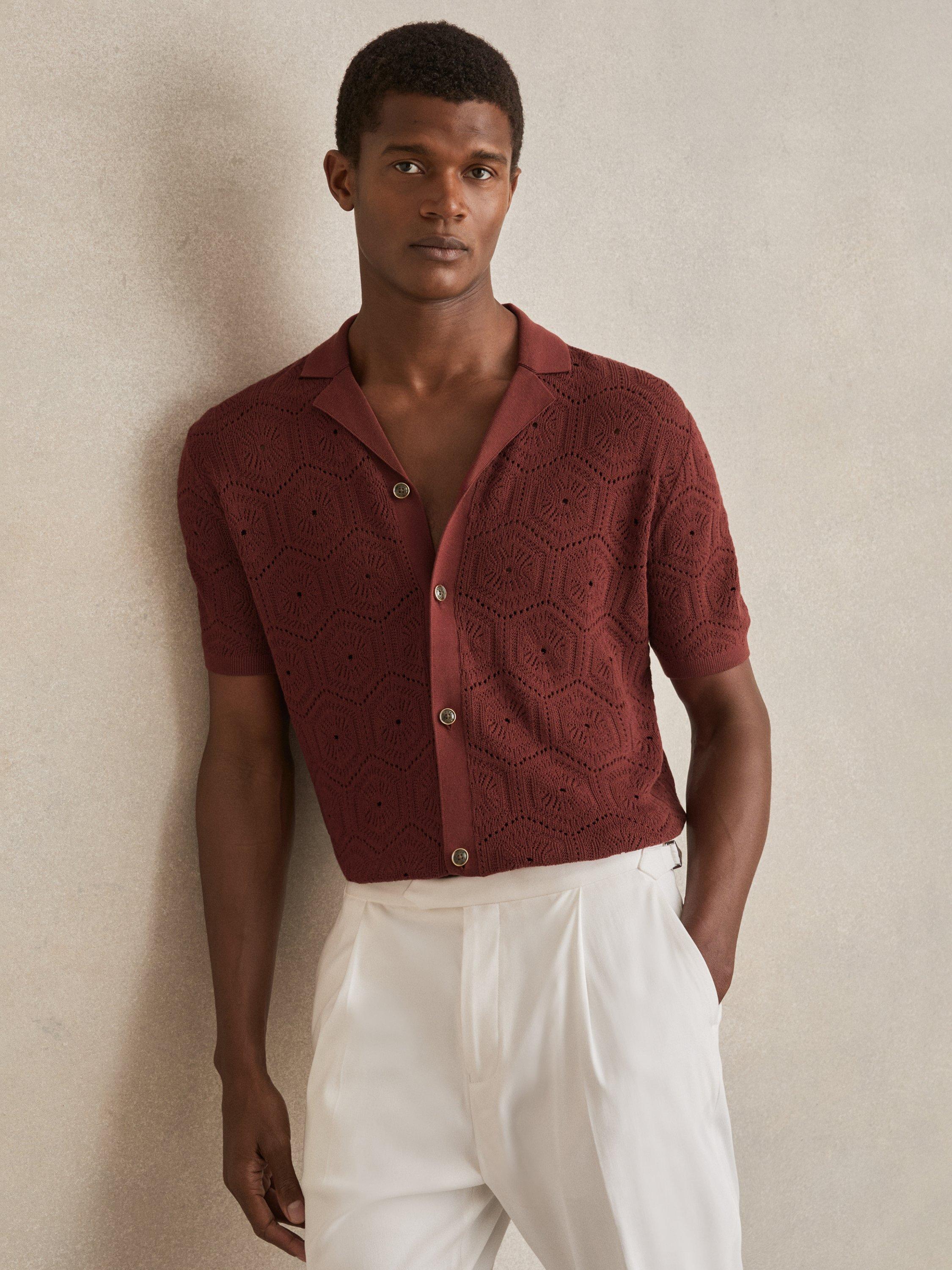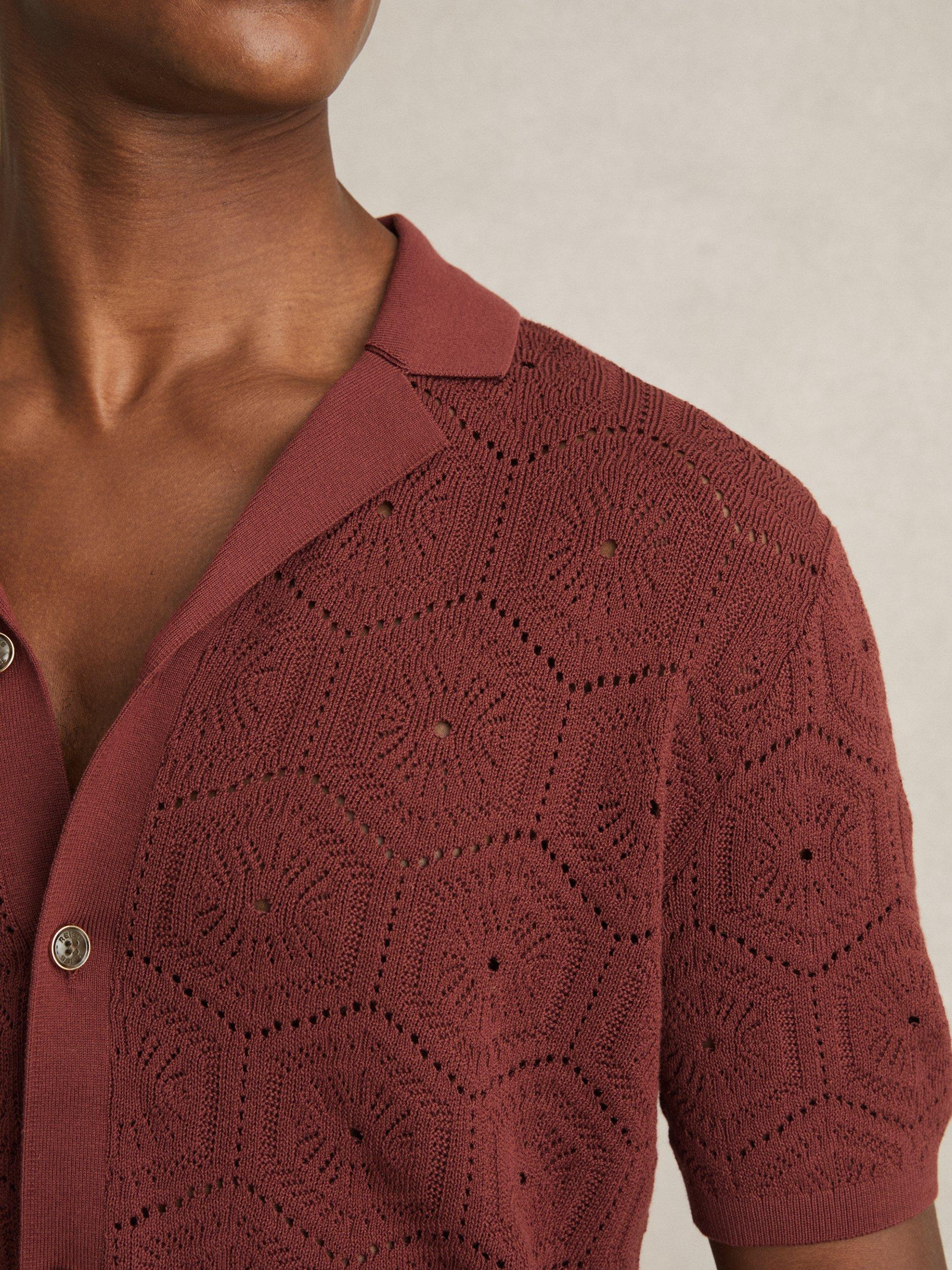 The Royce shirt combines the airy texture of pointelle knit with a Cuban collar for a relaxed yet refined look. tortoiseshell-effect buttons and ribbed trims complete this effortlessly stylish piece.