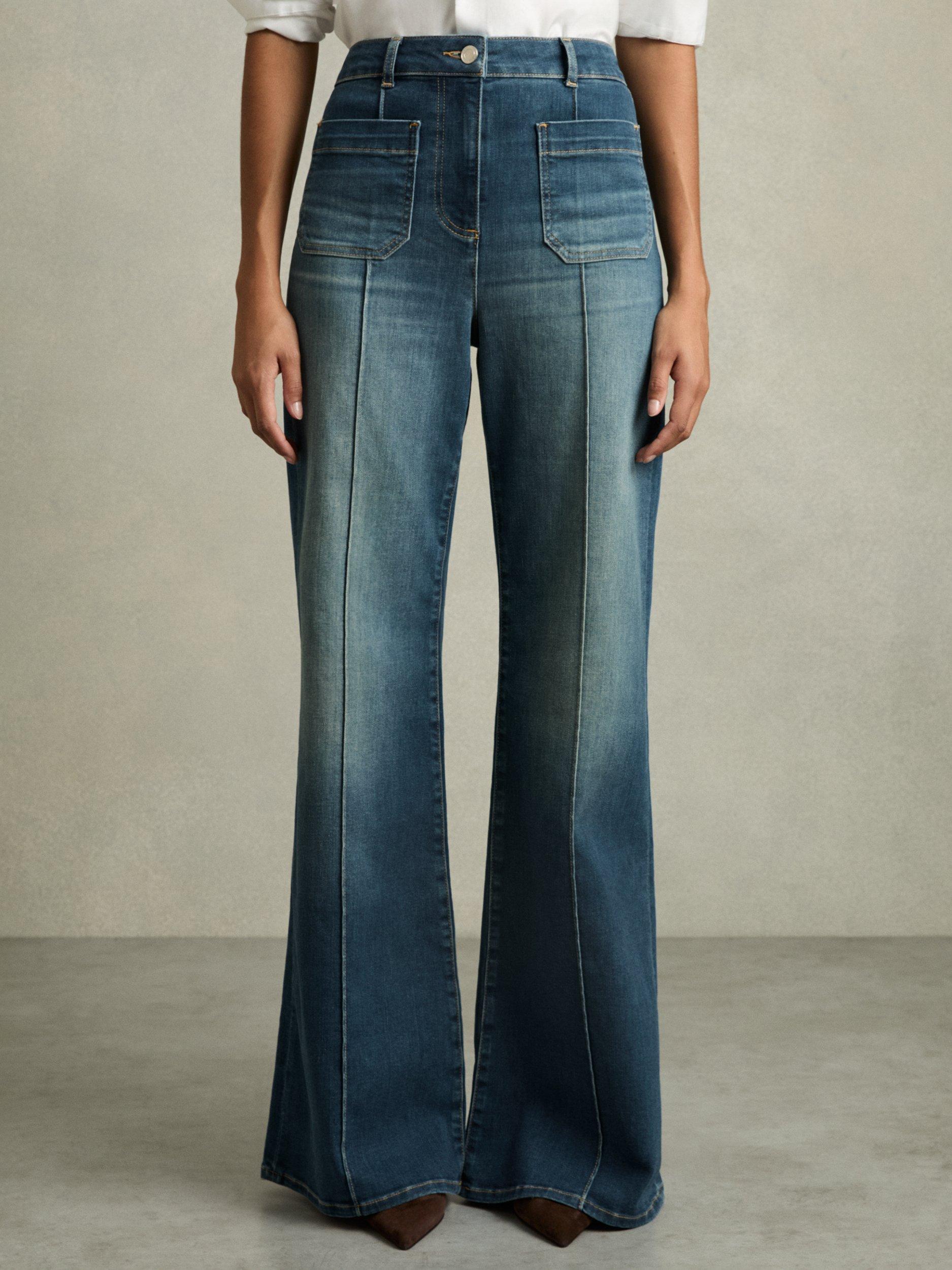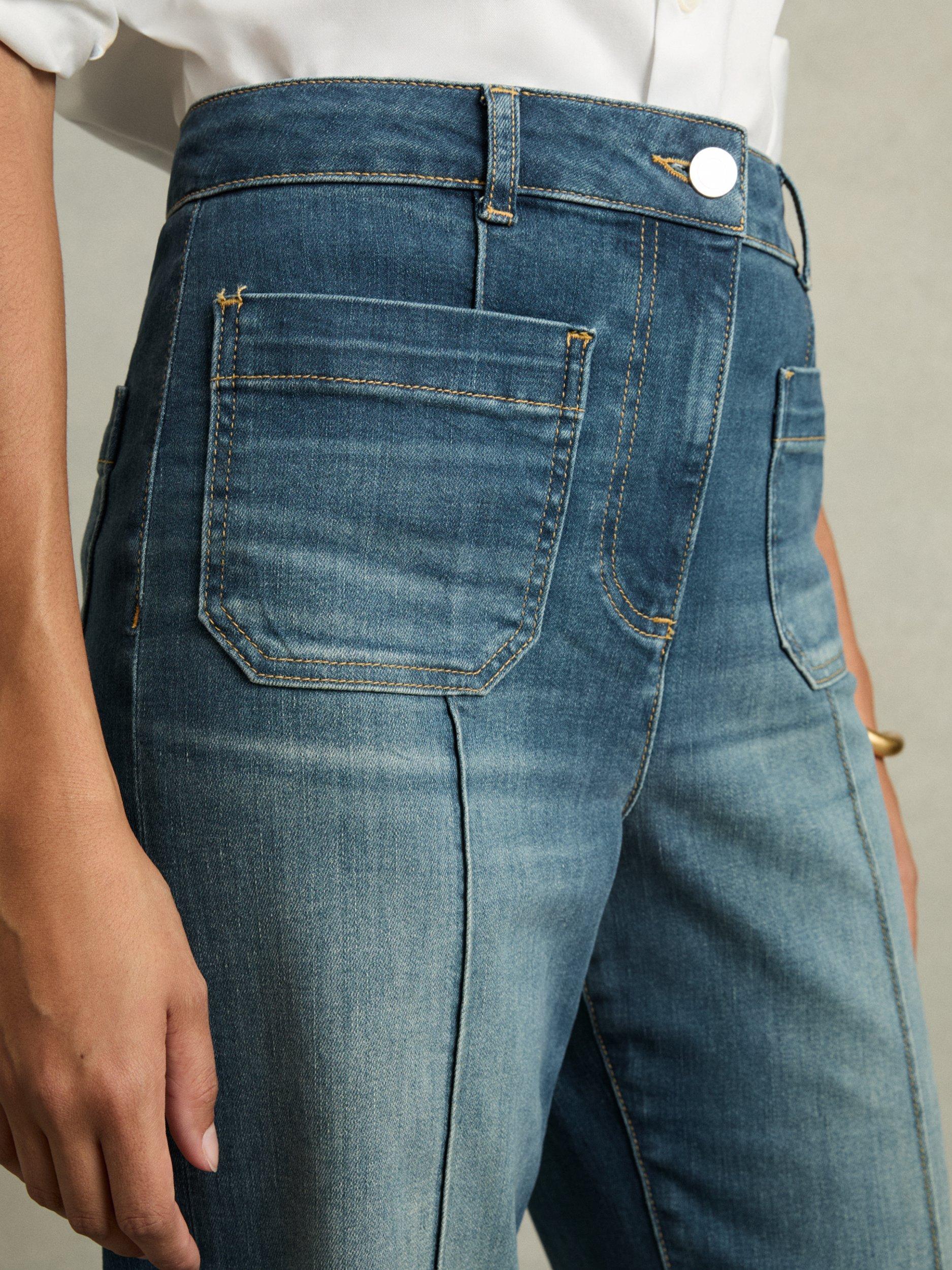 With a subtle flared hem and patch pockets, these retro mid rise jeans by Reiss offer a timeless choice in denim and feature a regular length hem.