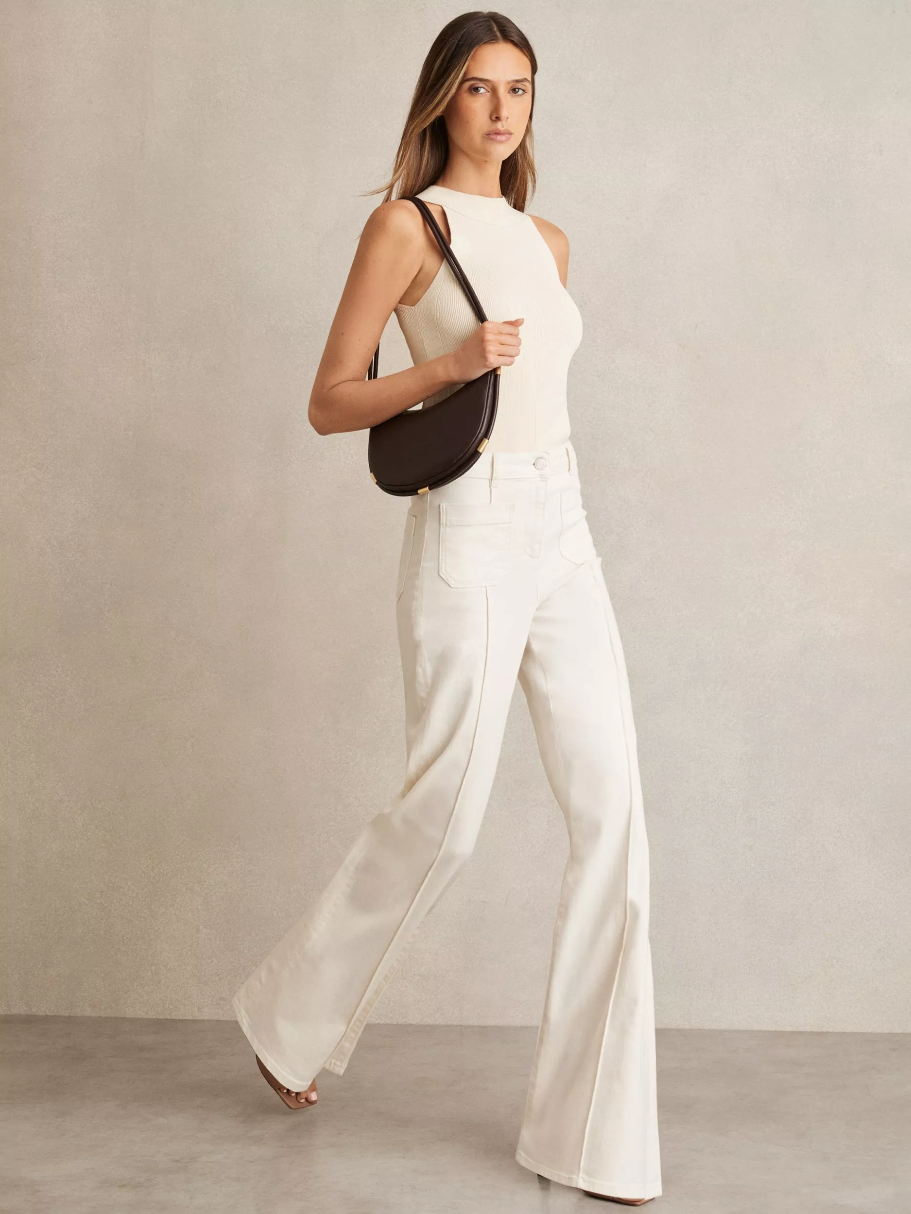 ReissSakura Patch-Pocket Flared Jeans, Ecru