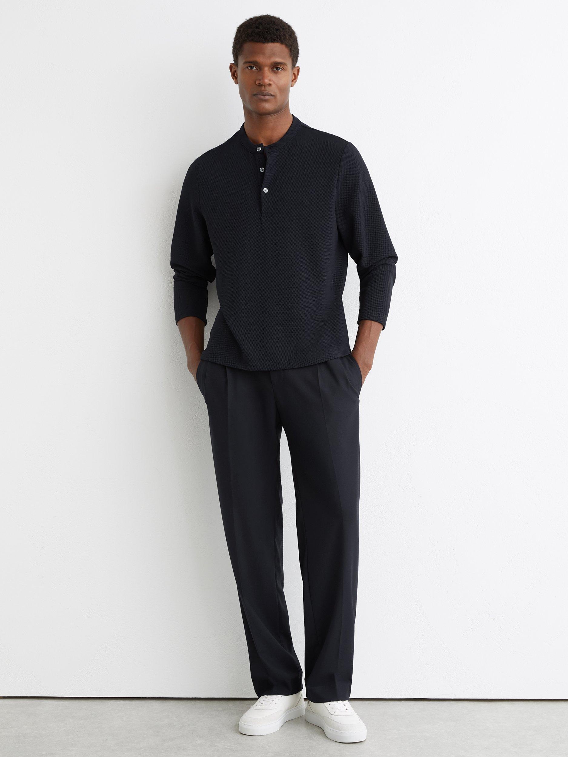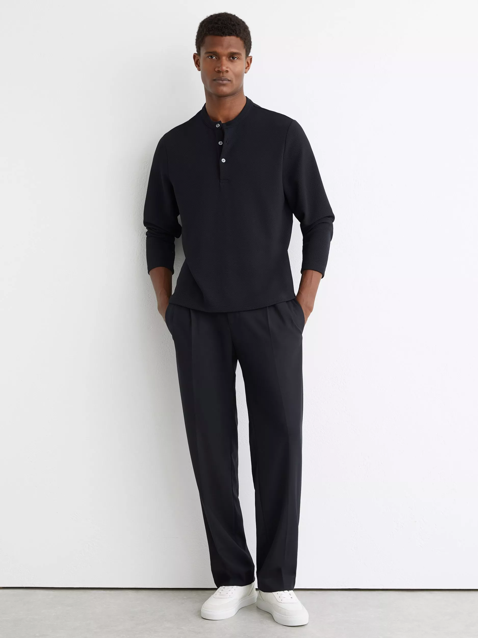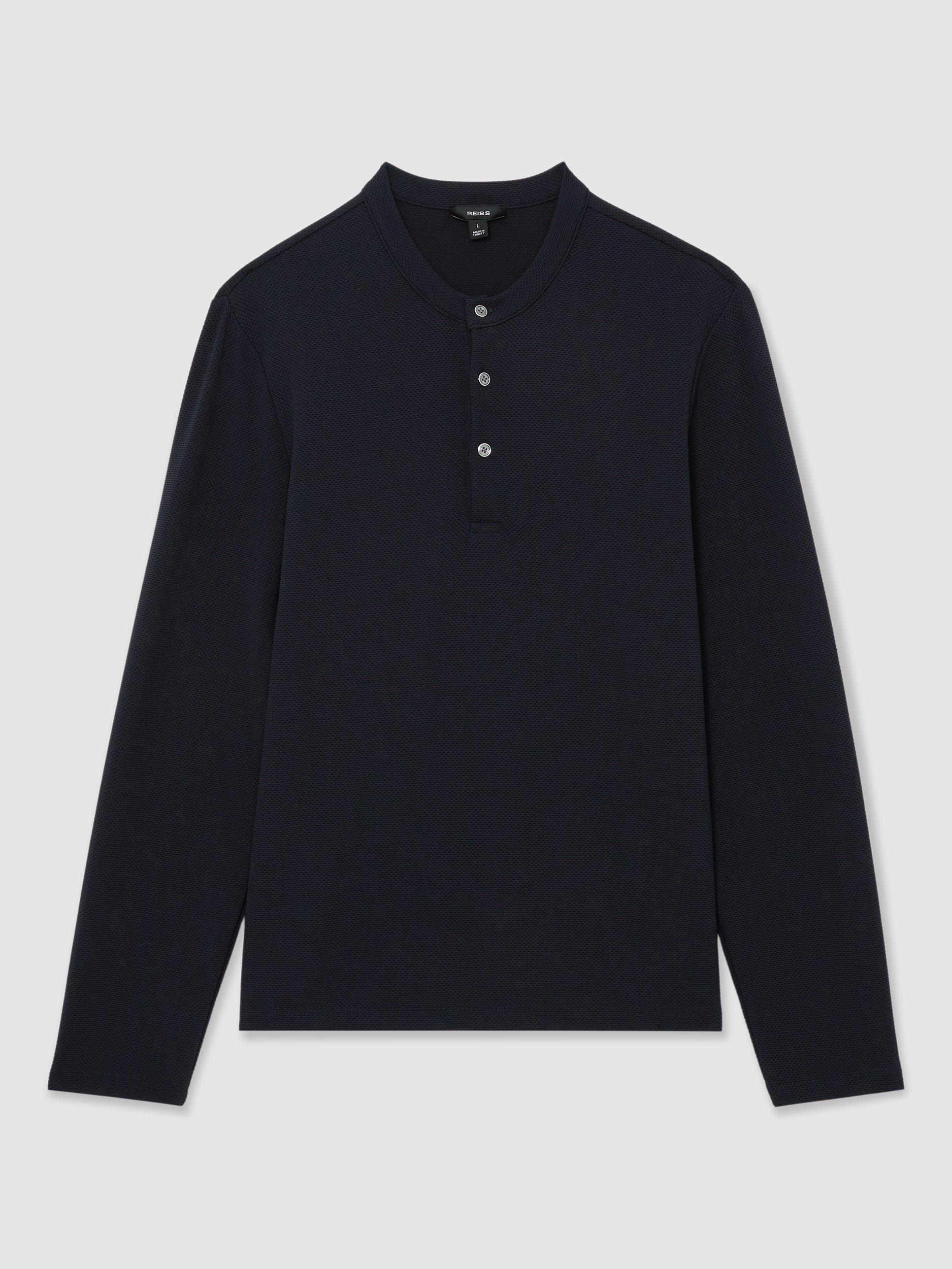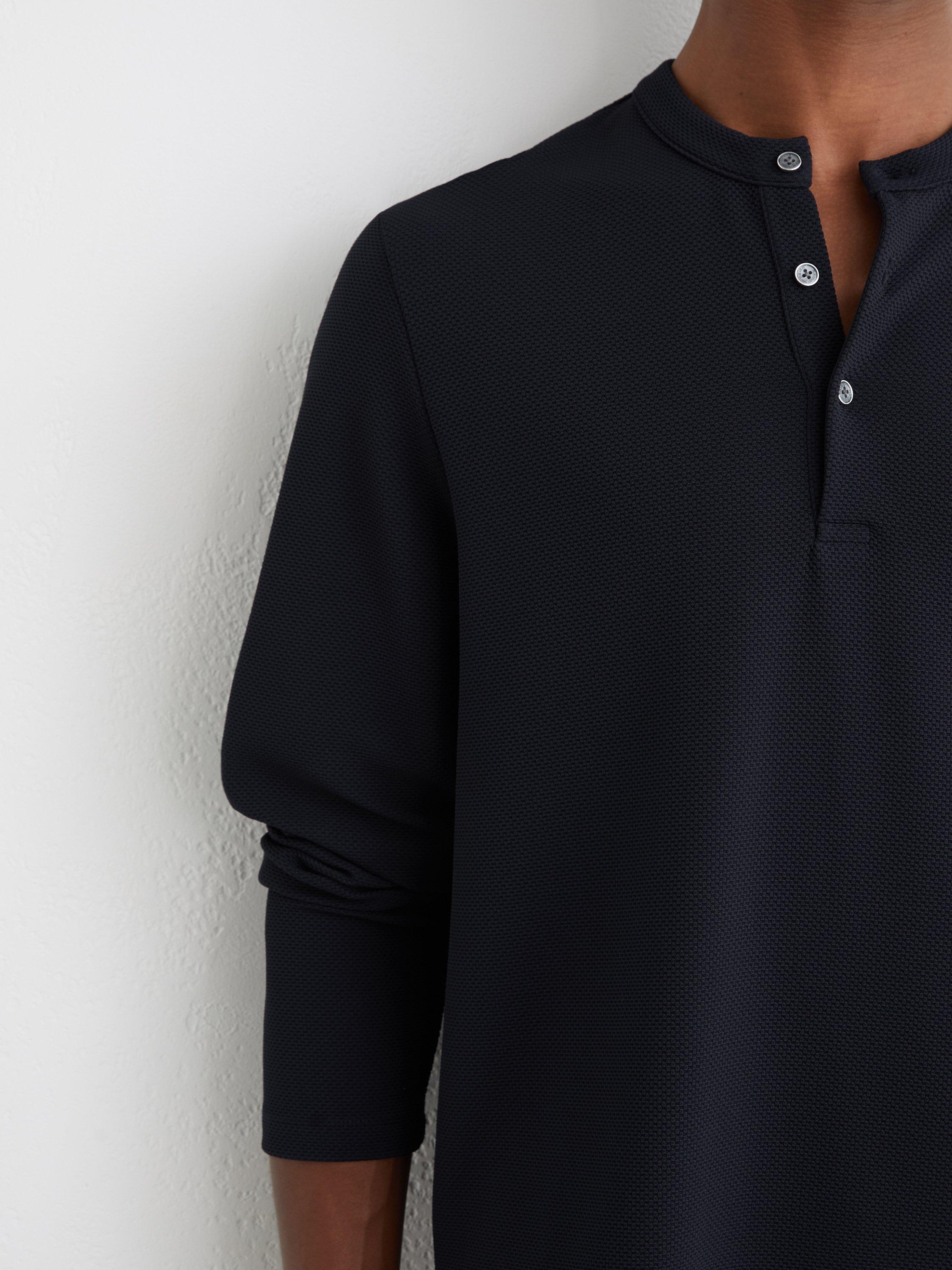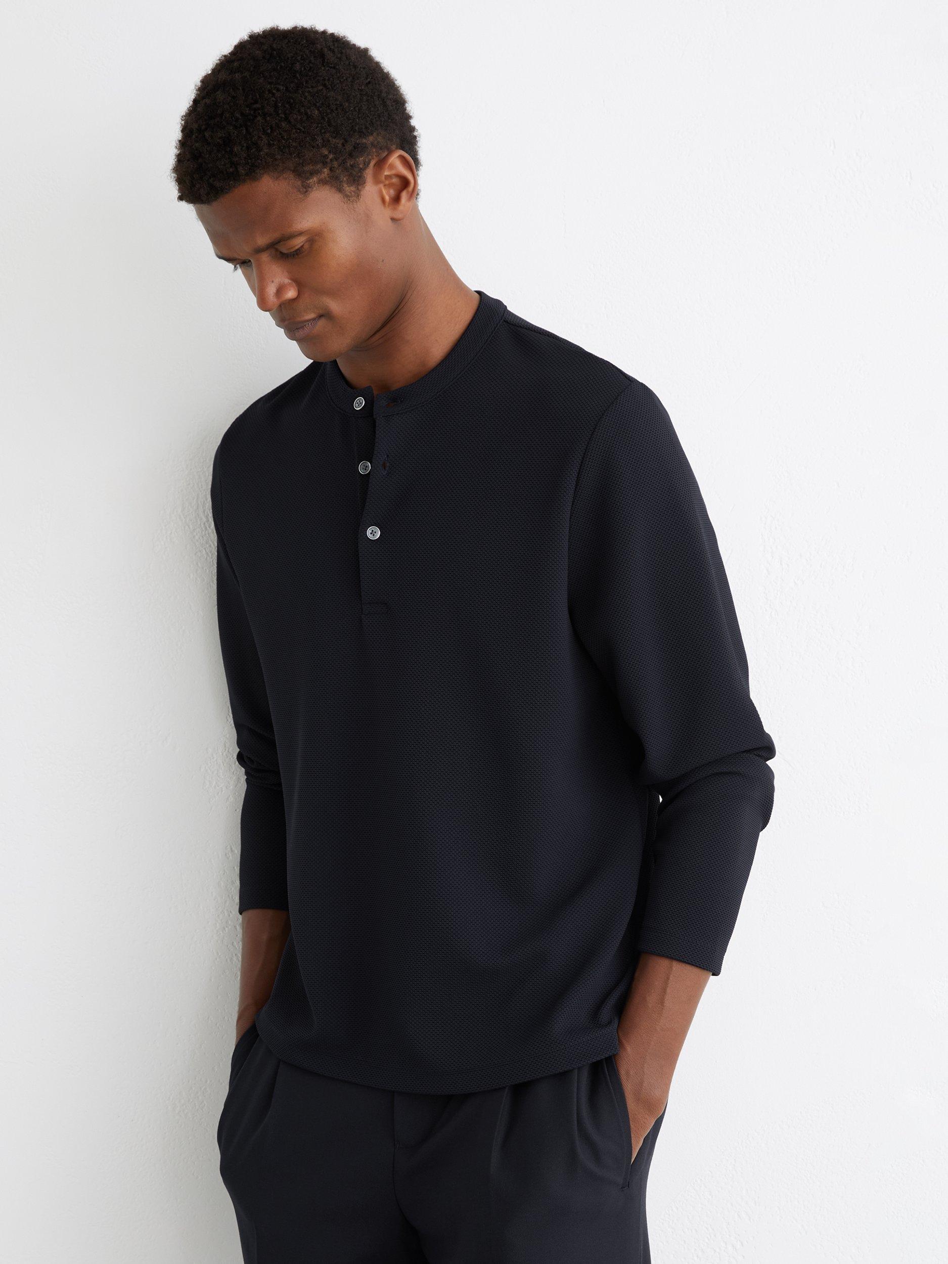 Keep things laid-back in this regular-fit jersey top, designed with a button neck and long sleeves.