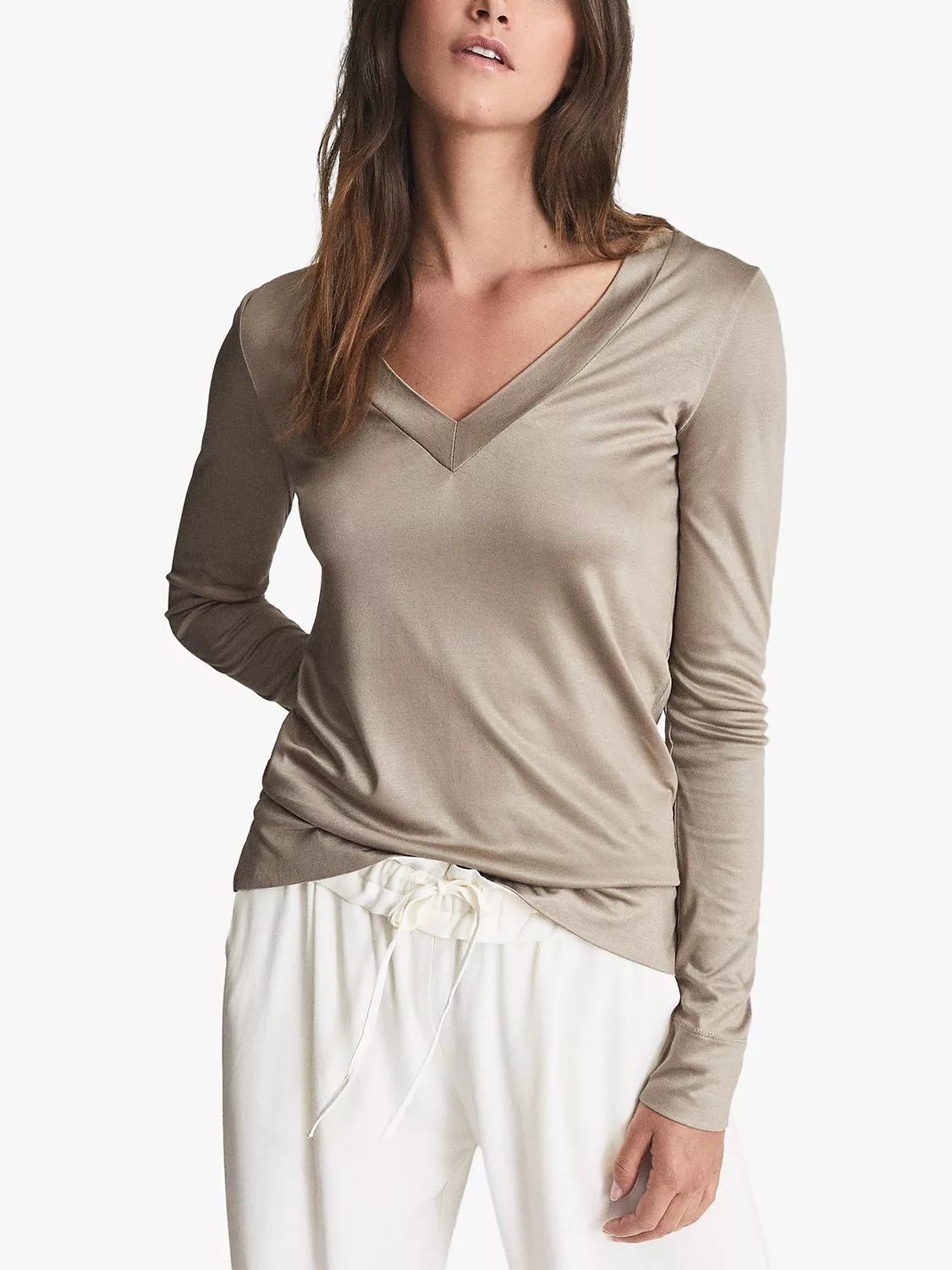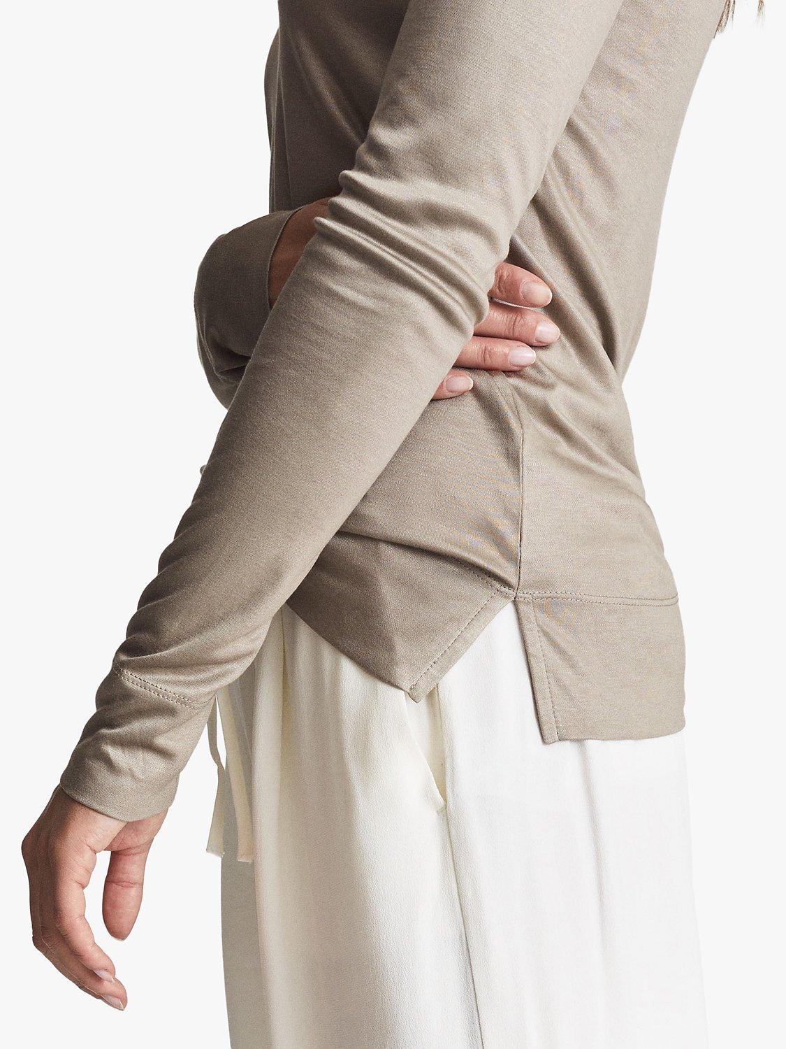 The Selena top from Reiss is a smart-casual style that works both in the office and at the weekend. Cut in a fluid jersey fabrication, it's designed with a V neckline and long sleeves which make it an ideal layering piece during the cooler months. Wear it with tailored trousers and classic court shoes for a smart combination.