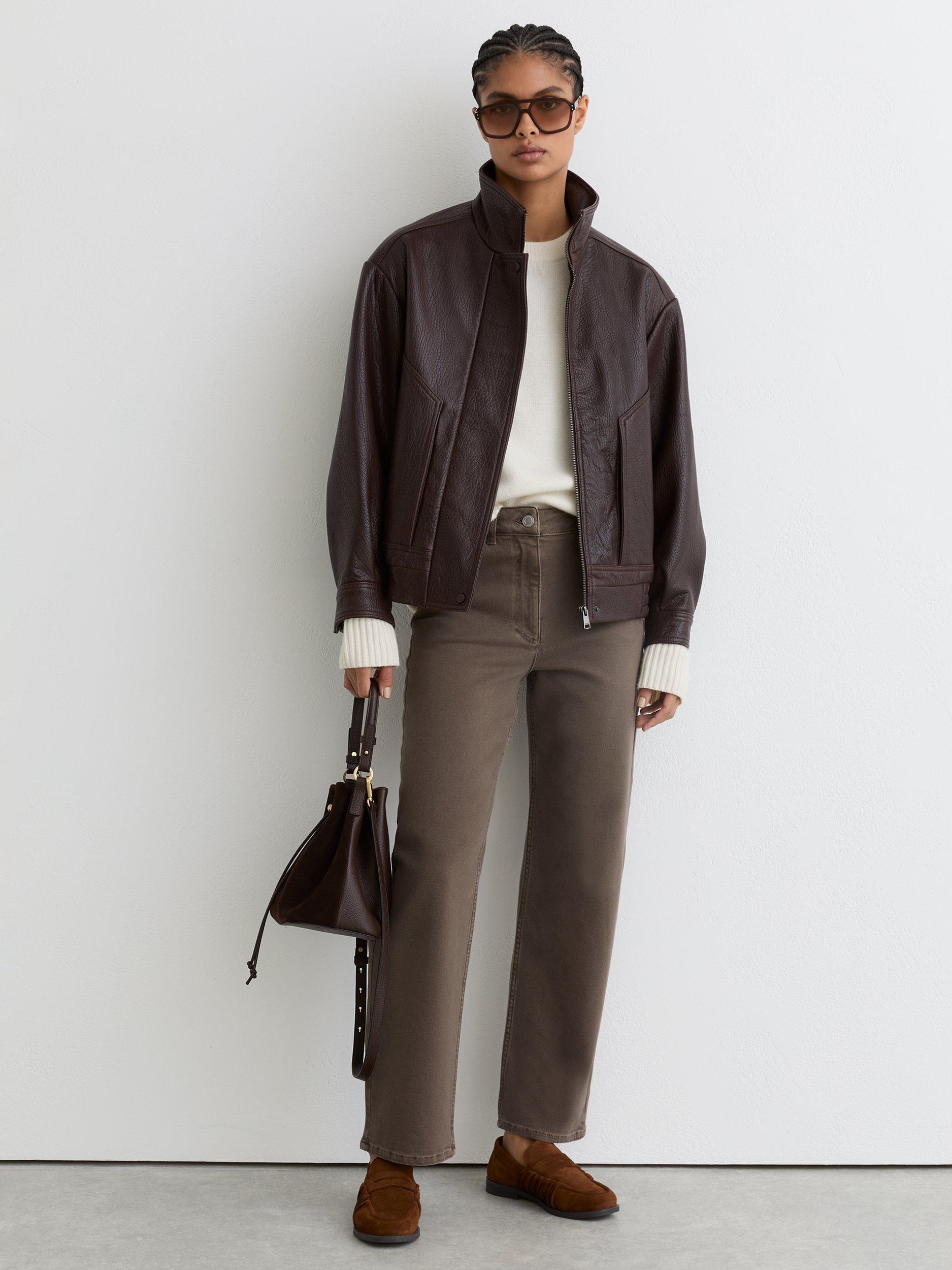 Made to be worn with absolutely everything - a pair of straight-leg jeans Reiss. Sculpted from a stretchy cotton blend with a mid rise and a zip fastening, they fall to a regular length.