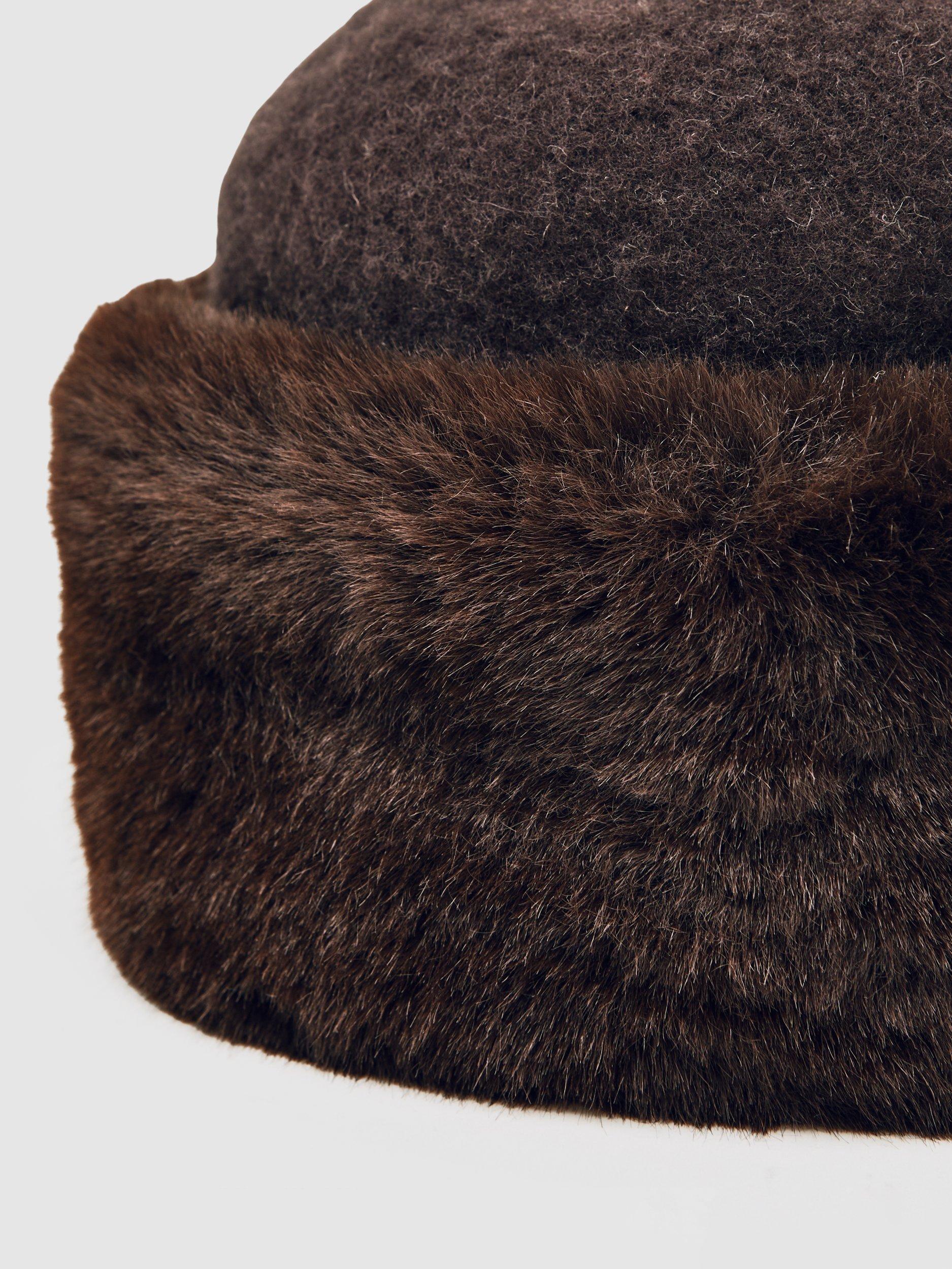 Effortlessly accenting your ensemble, this faux fur hat from Reiss will combat the cold with it's warming woollen construction.
