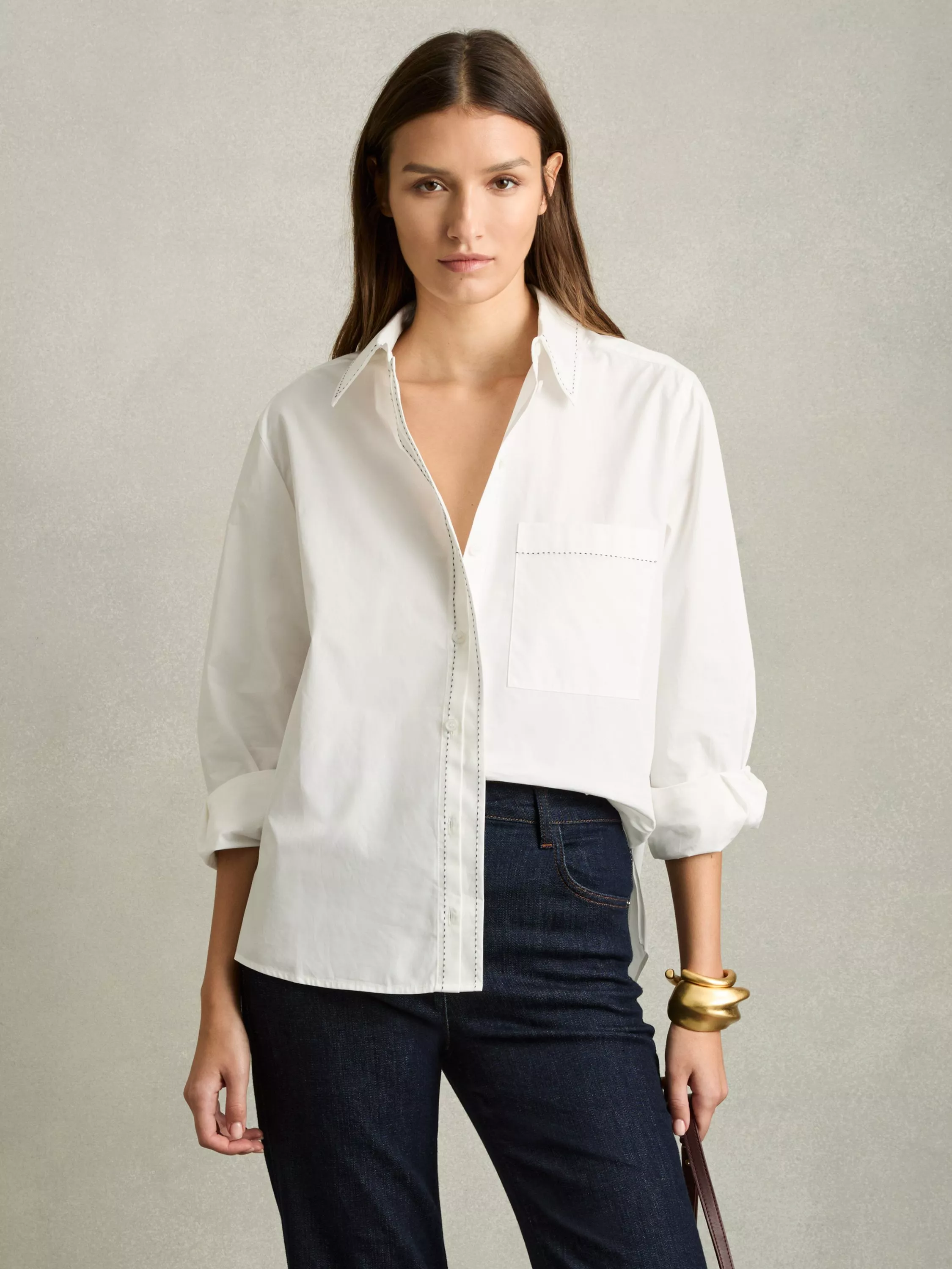 Elevating your everyday, this shirt from Reiss is free-from-fuss for timeless appeal. Designed with a crisp collar neckline and long sleeves, it's made from soft cotton with contrast stab stitching.