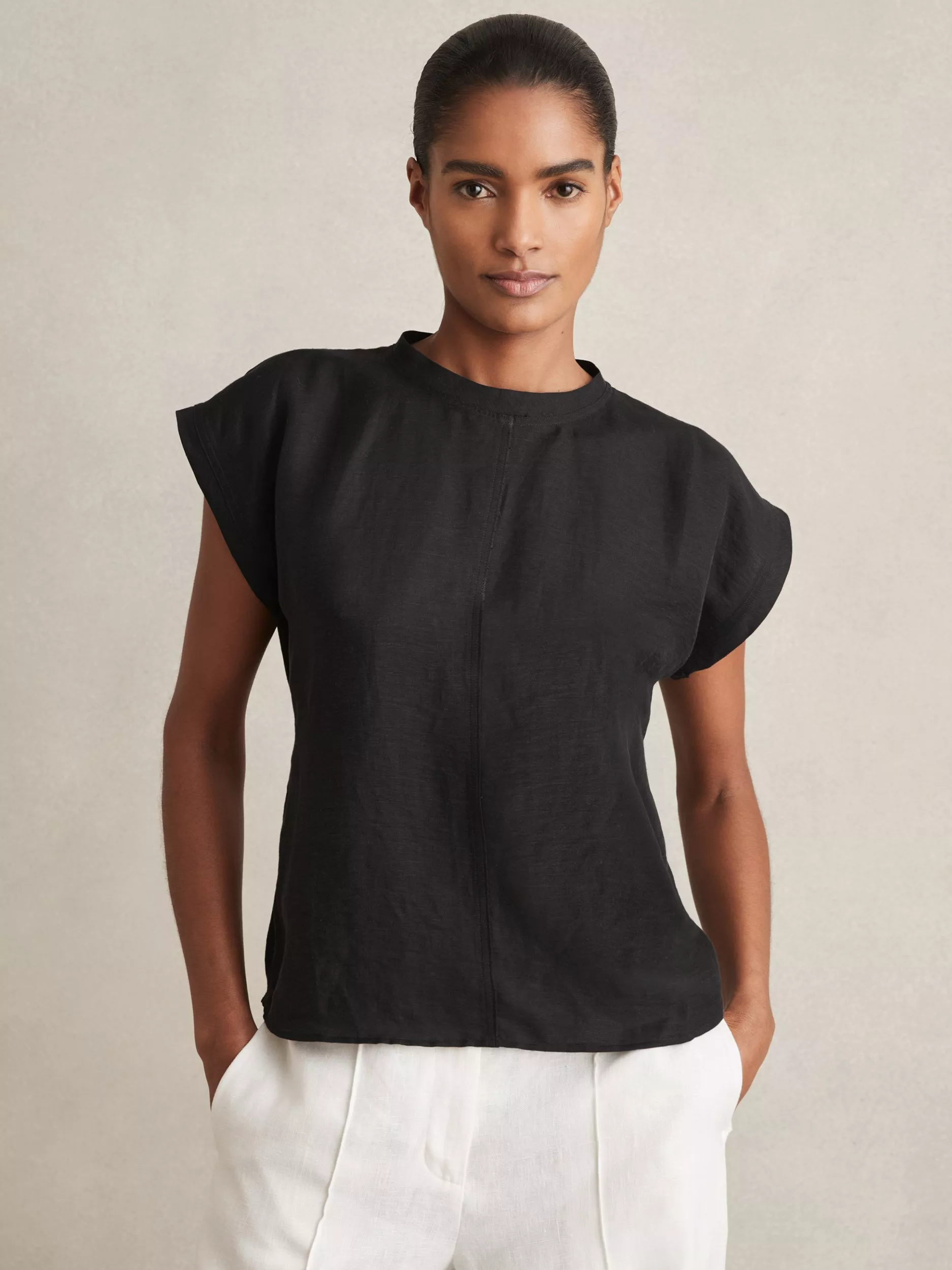 Bolstering your daytime collection, this top by Reiss is designed with a tie back. Cut with a fuss-free round neck and cap sleeves, it is lightweight and breathable with a linen blend - perfect for keeping cool in summer.