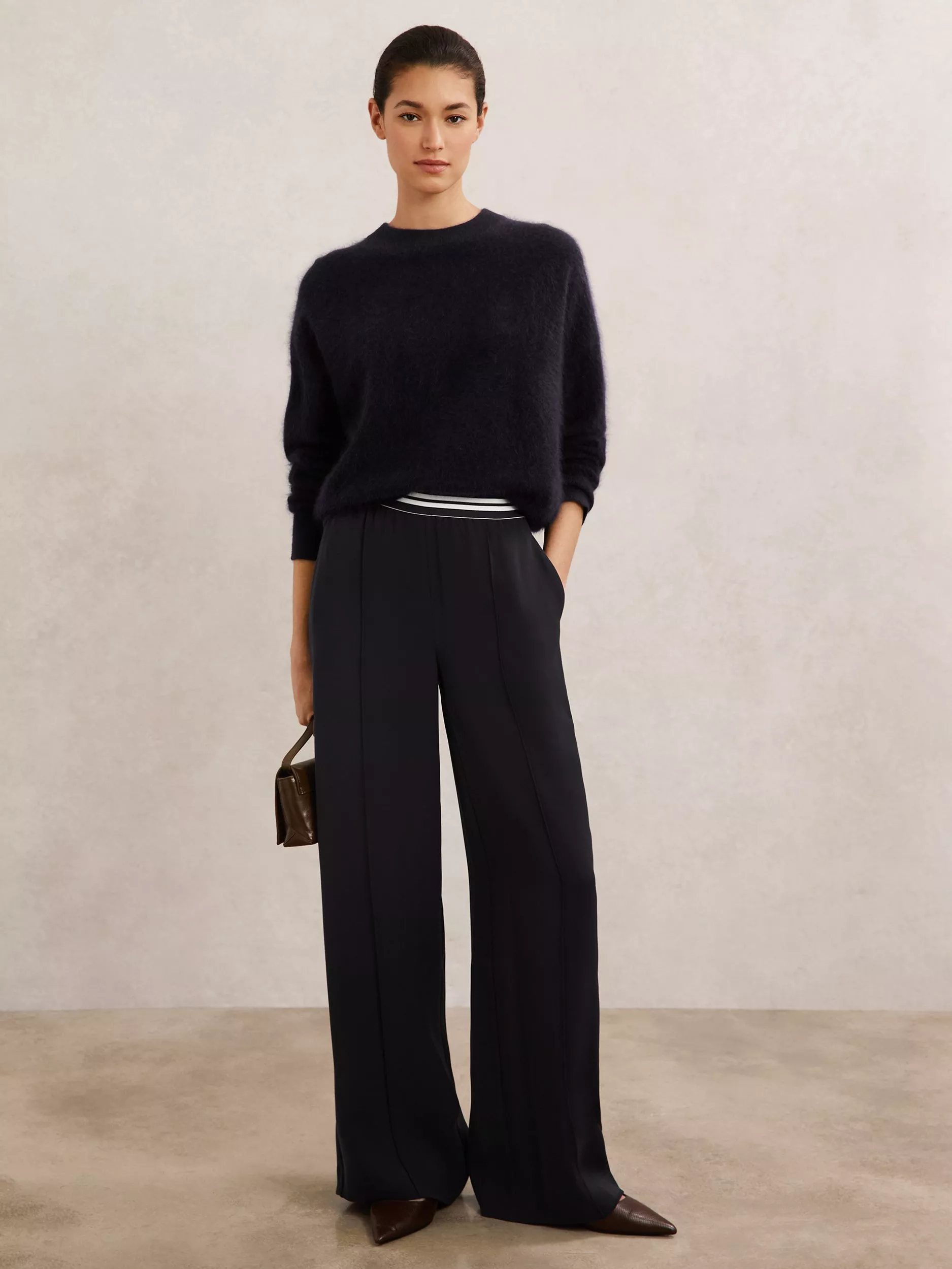A pair of perfectly oversized, perfectly nonchalant wide-leg joggers from Reiss. They sit mid rise with an elasticated waist and a regular length.