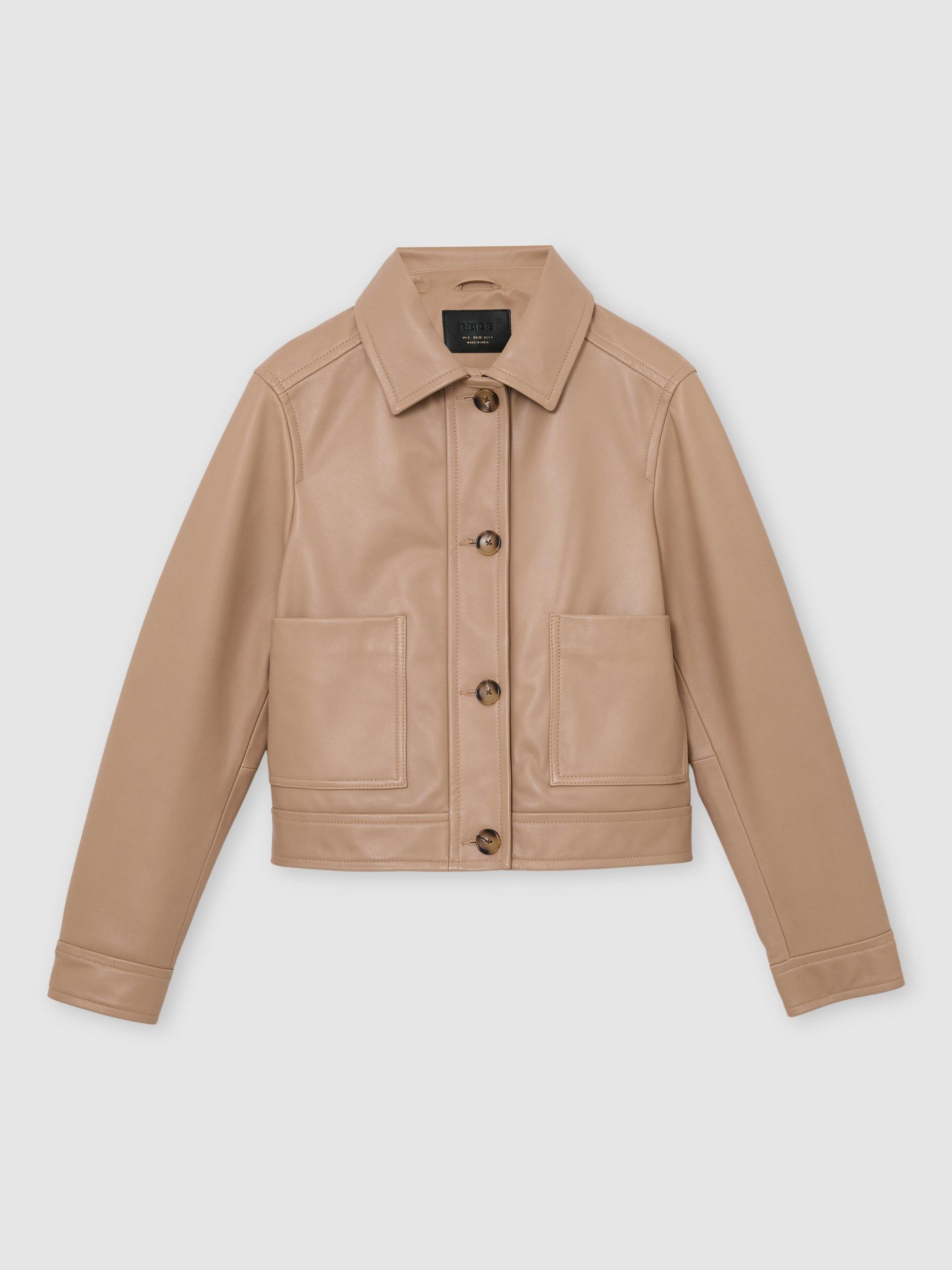 This boxy-cut jacket delivers lasting comfort and confidence for your day, designed in smooth leather for effortless wear. The classic collar and long sleeves are tailored to fit seamlessly into your routine.