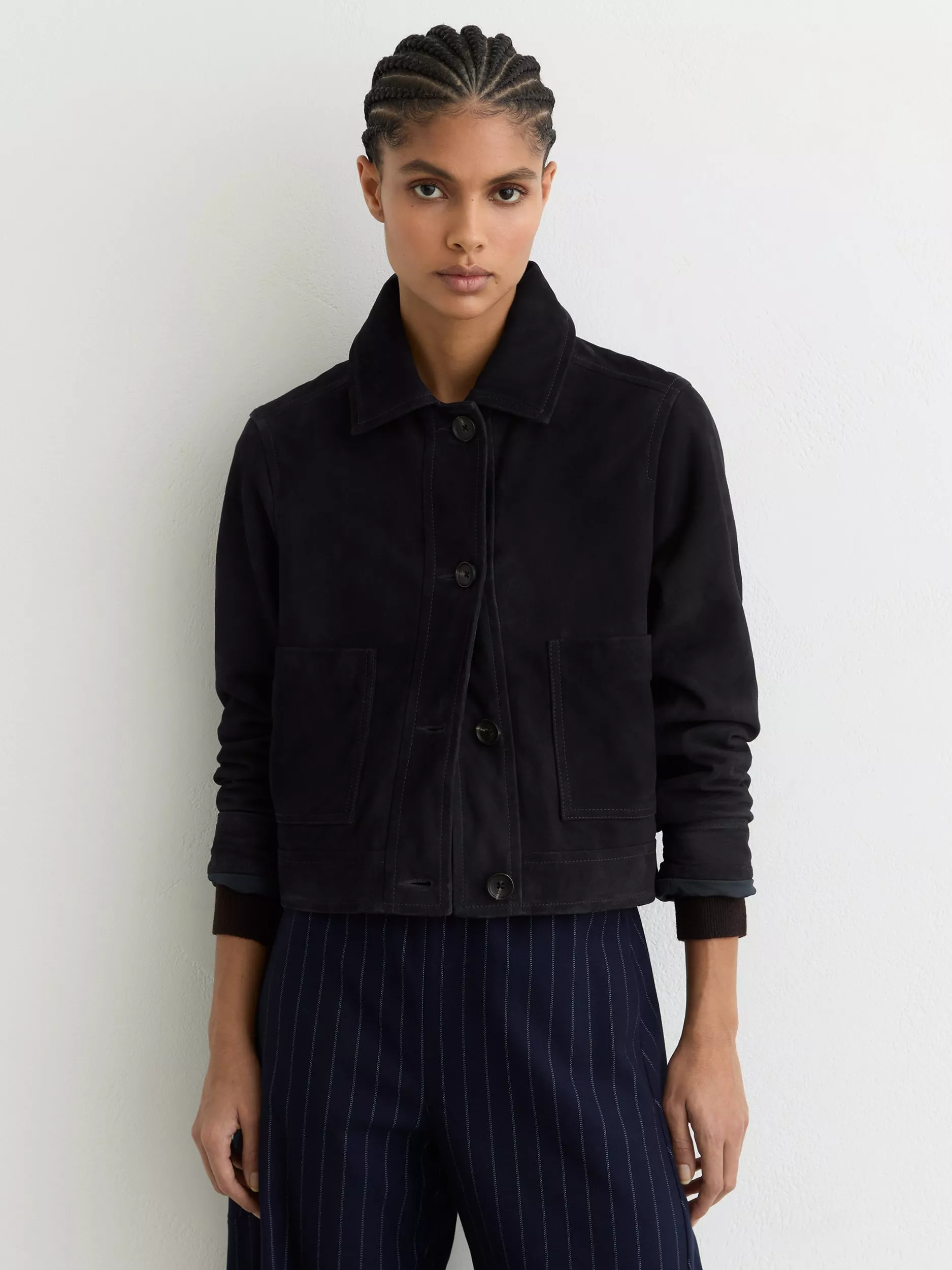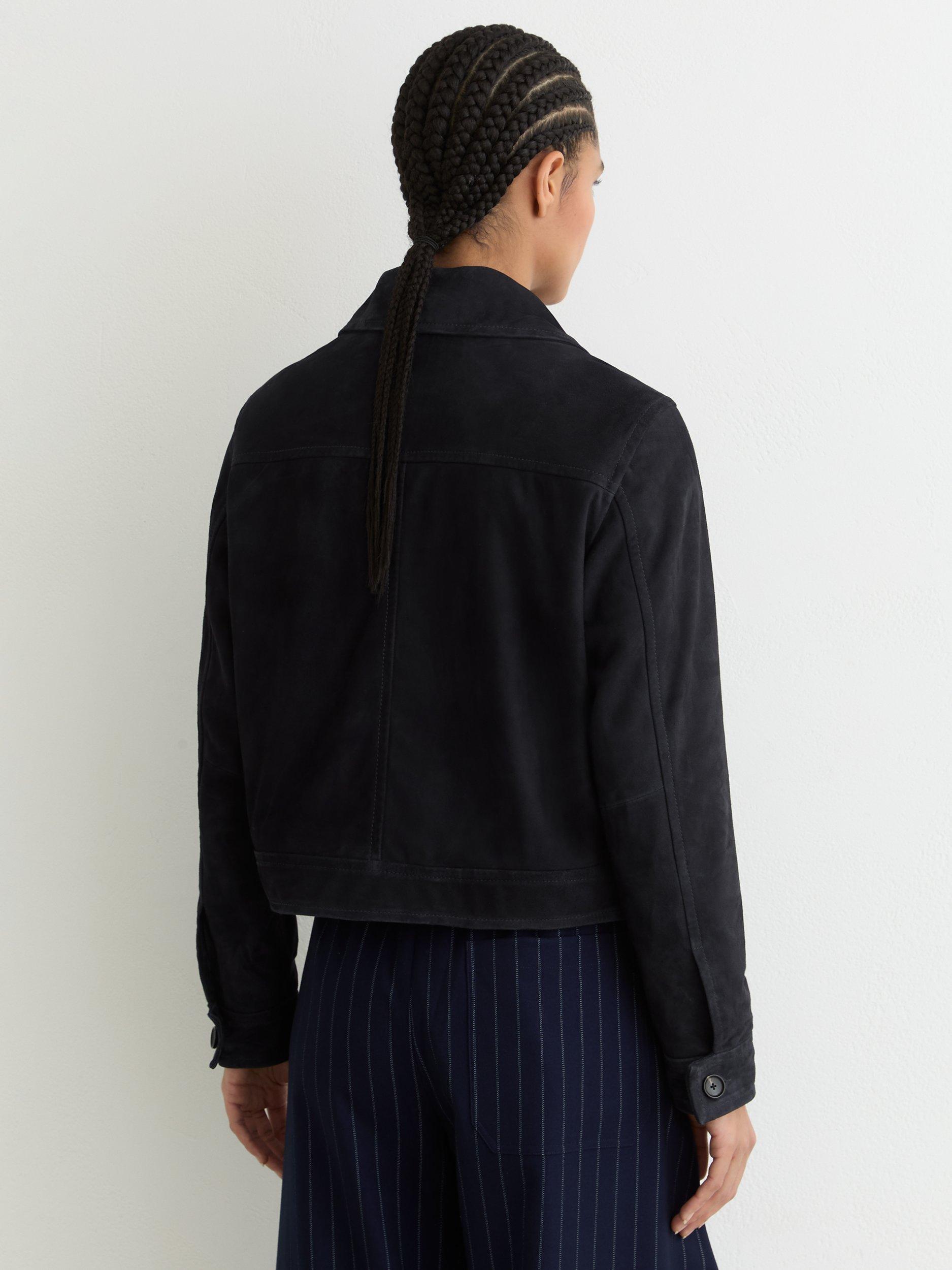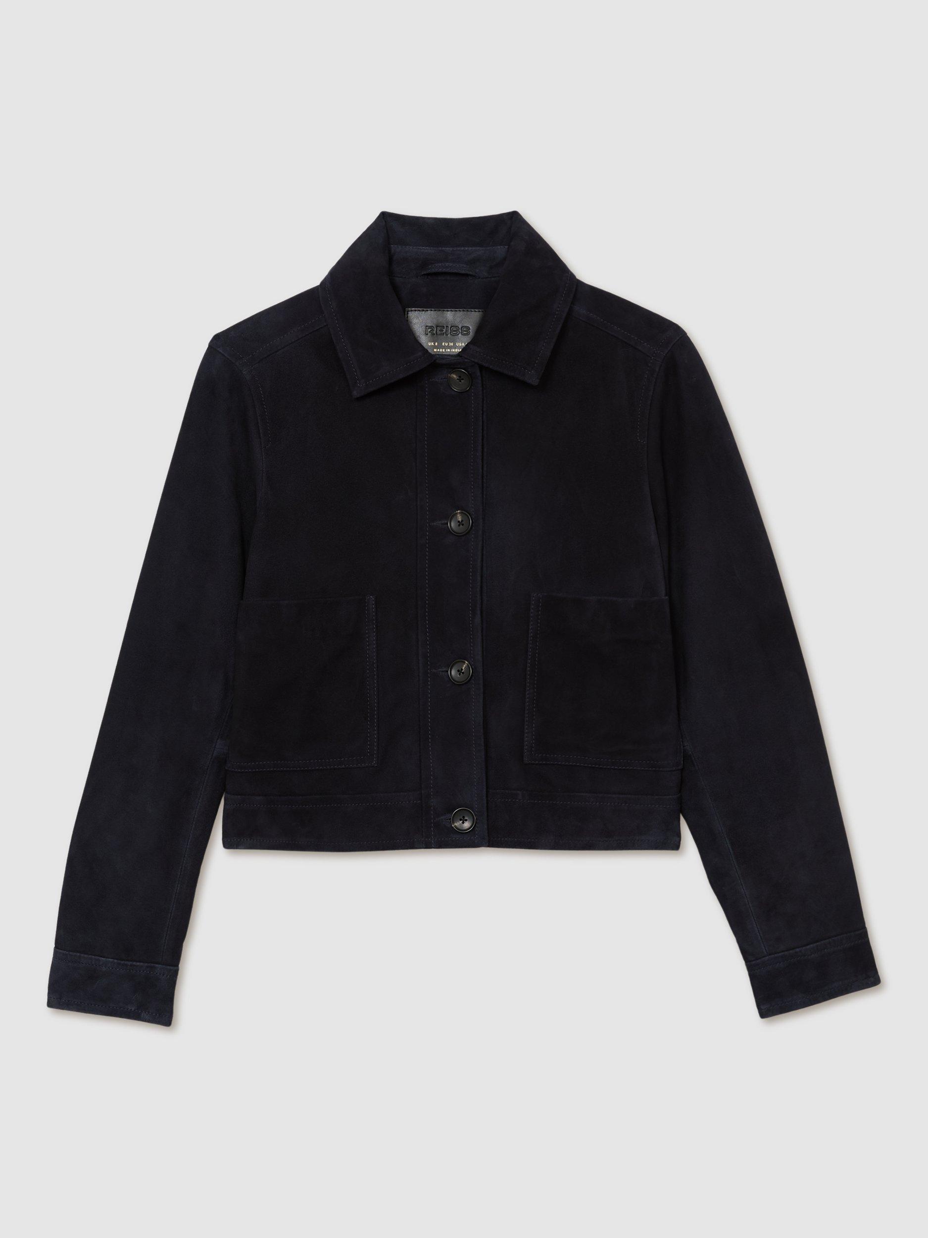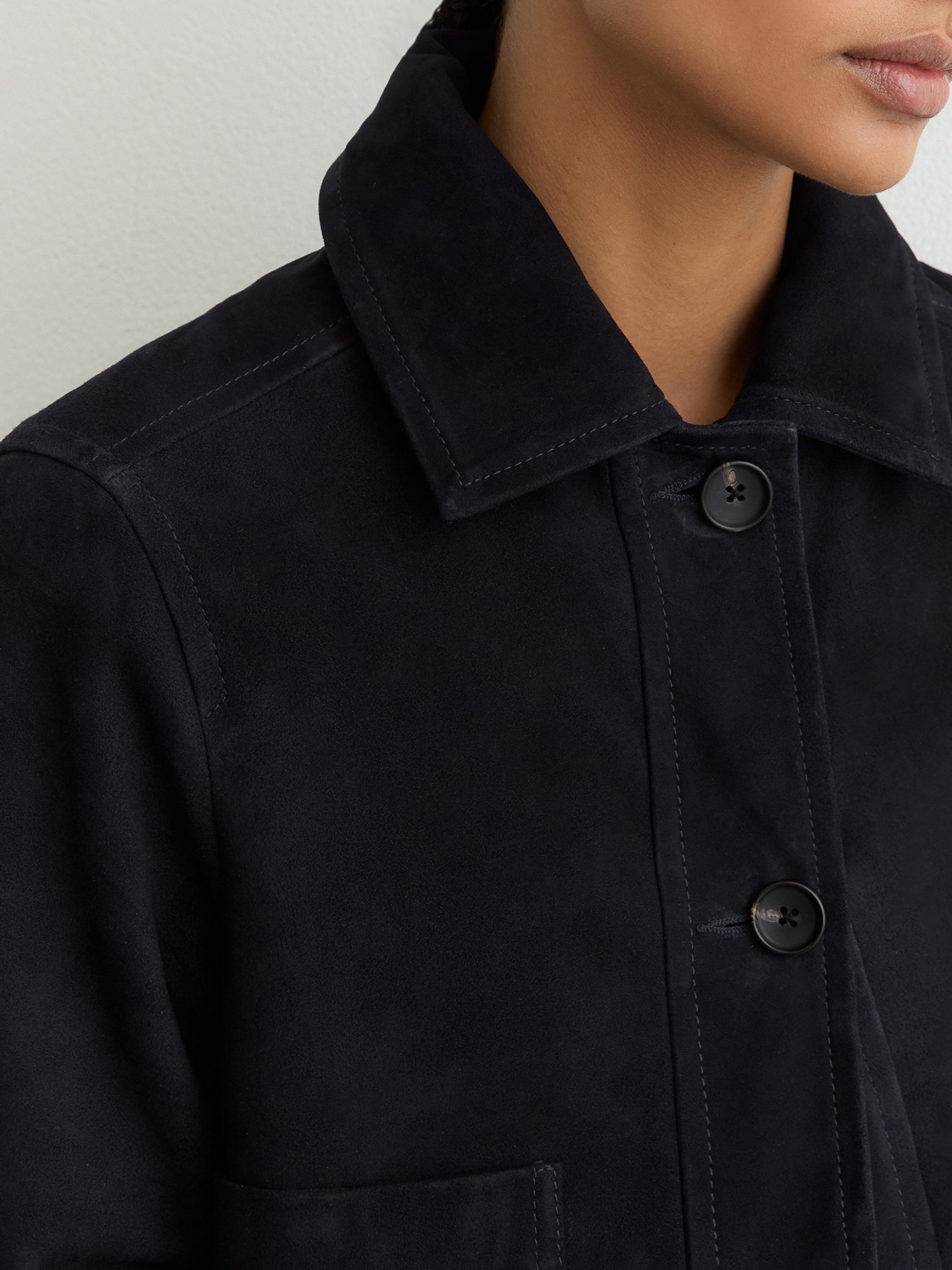 This boxy-cut utility jacket keeps you ready for anything. In soft suede with patch pockets, it offers comfort, confidence, and a touch of sharp style to every outfit.