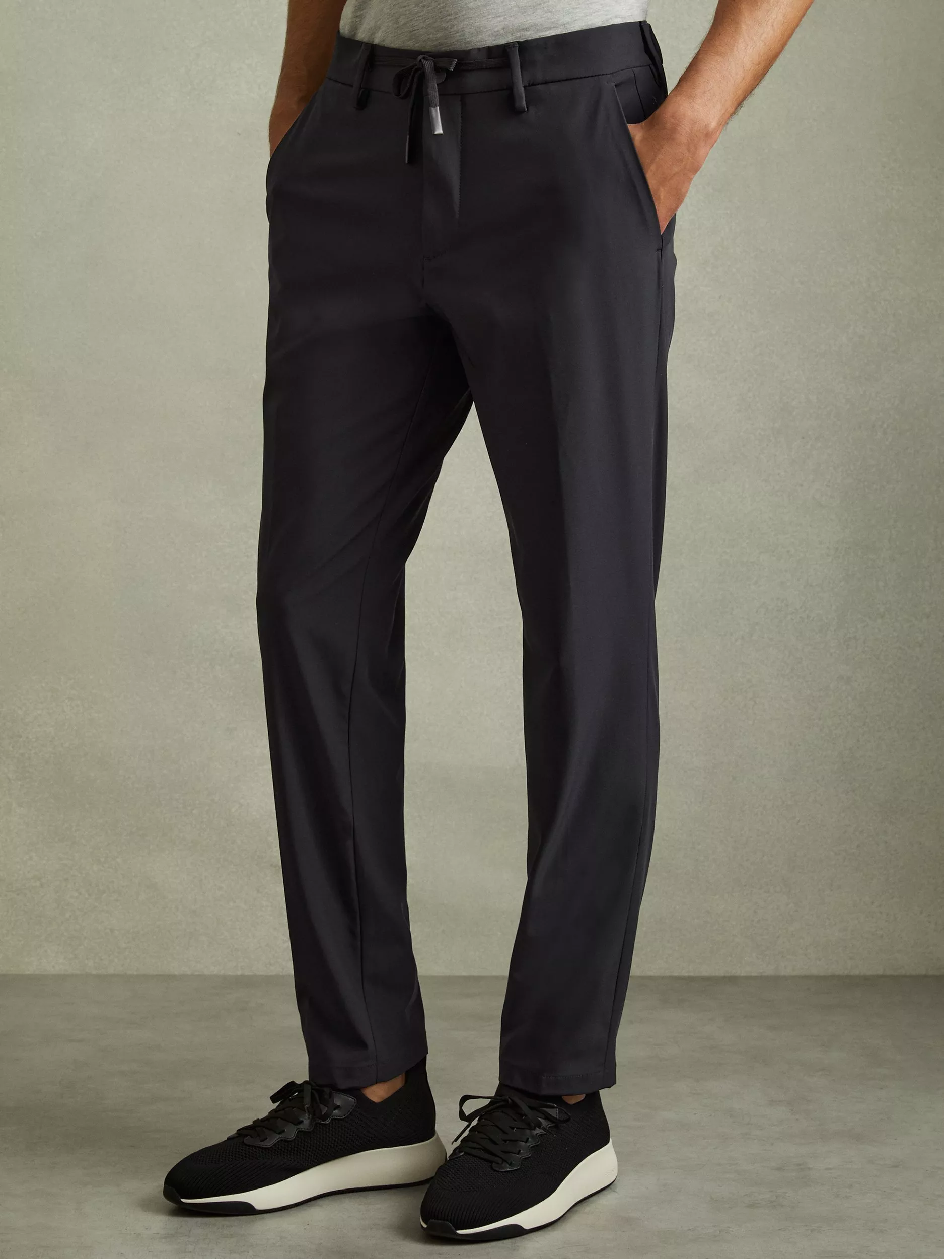 Made from a technical-stretch fabric, the Split trousers have a sportive aesthetic. A drawstring threads through the waistband, cinching the fit.