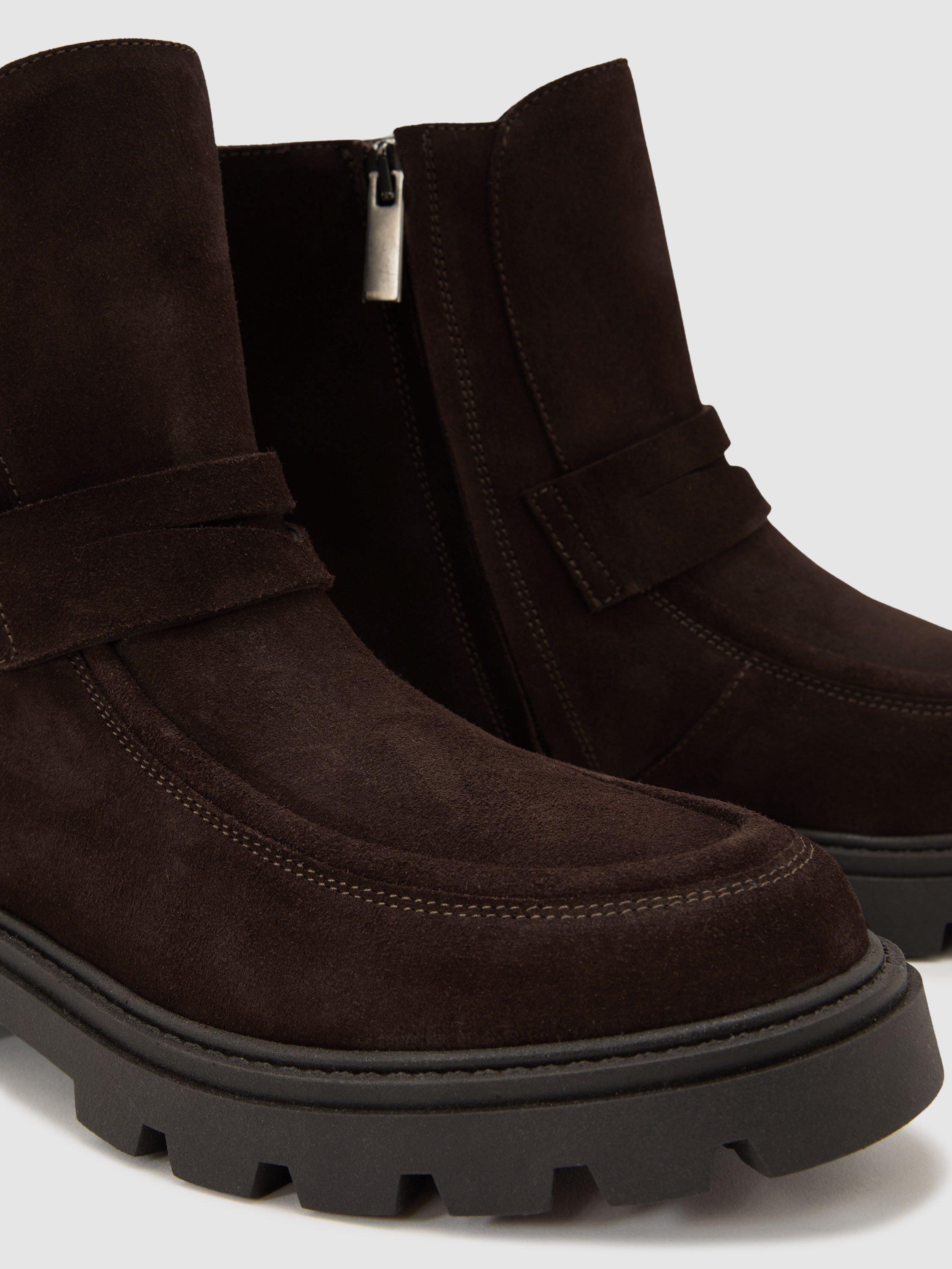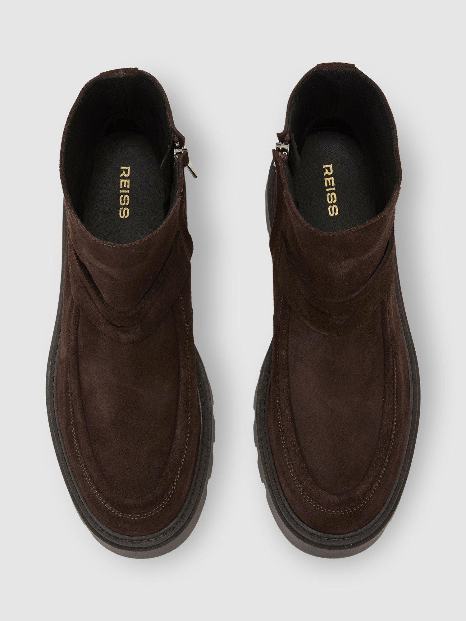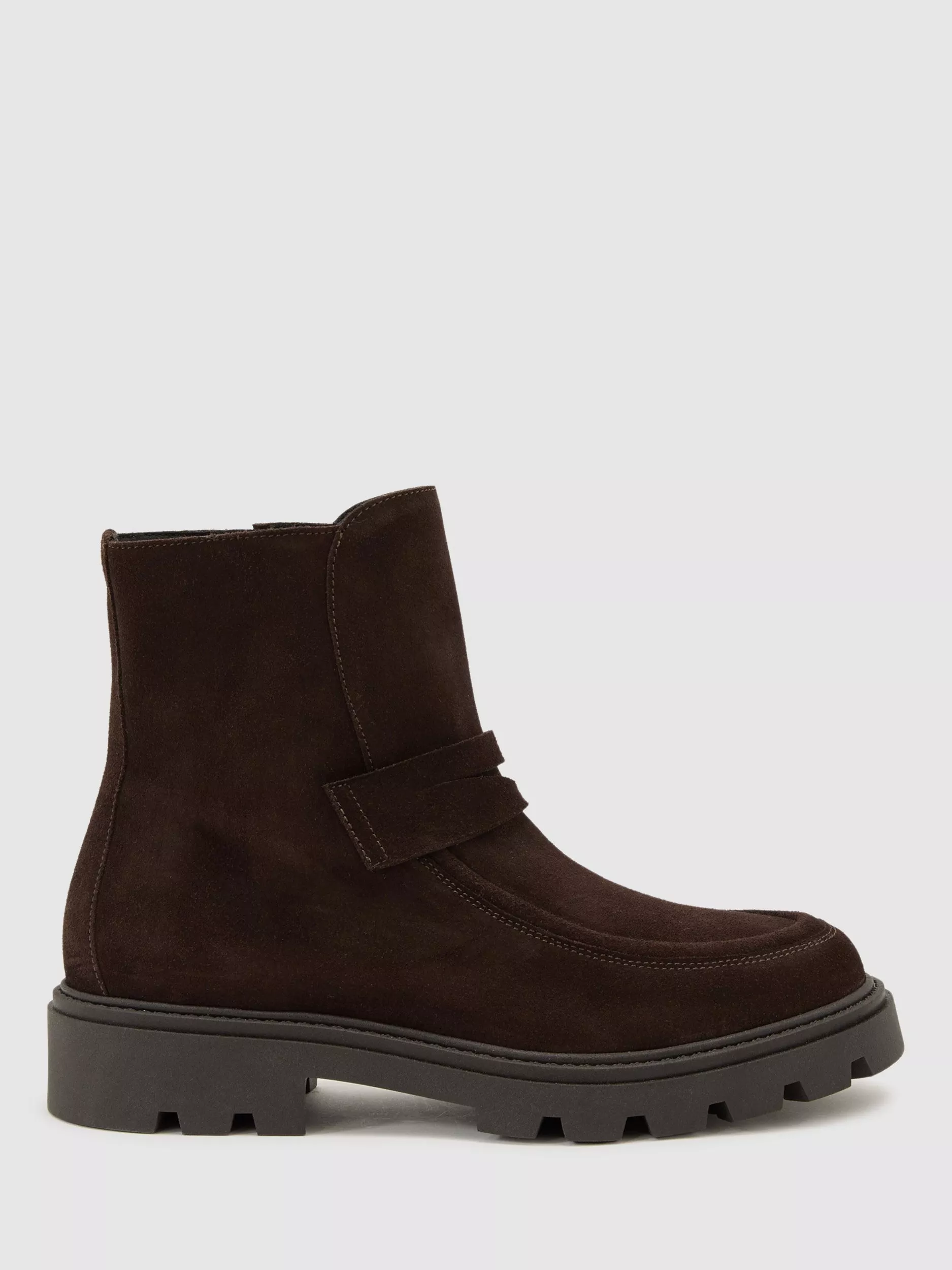 Ankle boots by Reiss, crafted in plush suede with a supple leather lining. A comfortable 4cm heel adds subtle lift, while the slip-on design and resilient rubber sole keep you ready for crisp autumn days.