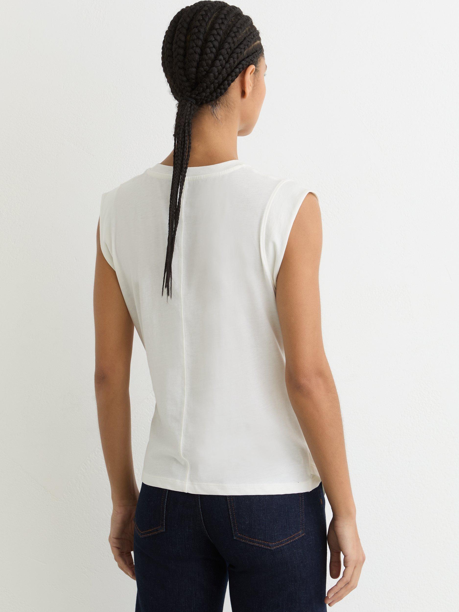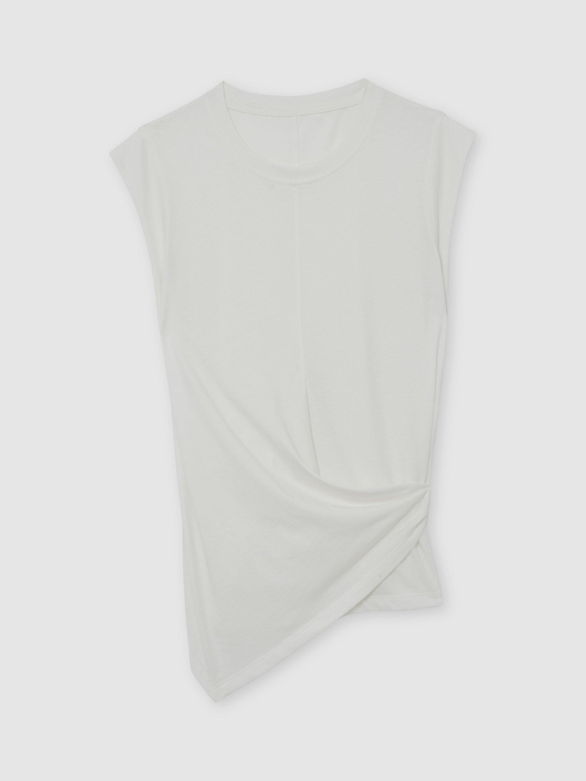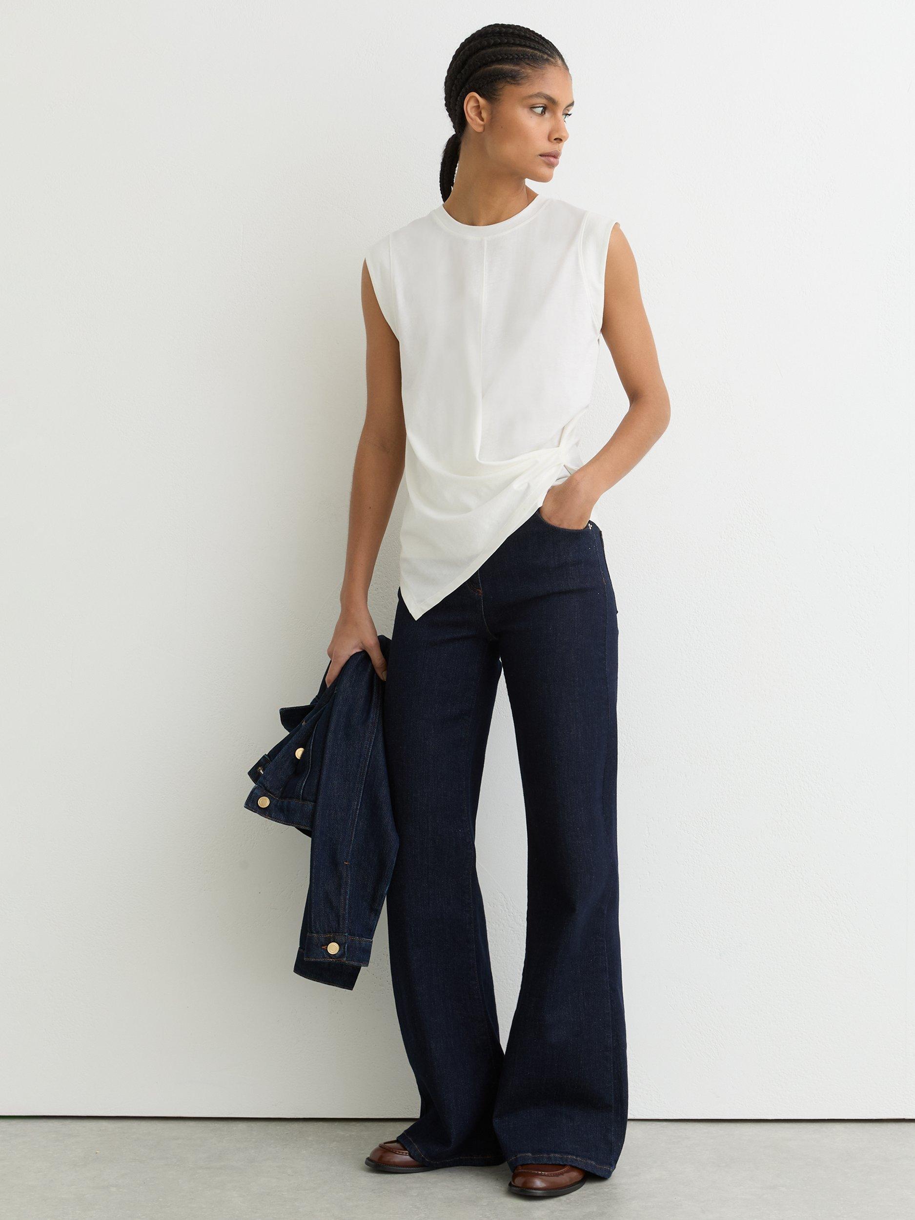 A gathered drape T-shirt by Reiss, crafted from soft cotton. With a round neck and cap sleeves, the plain colour means it goes with everything. Made for easy days and endless sunshine.