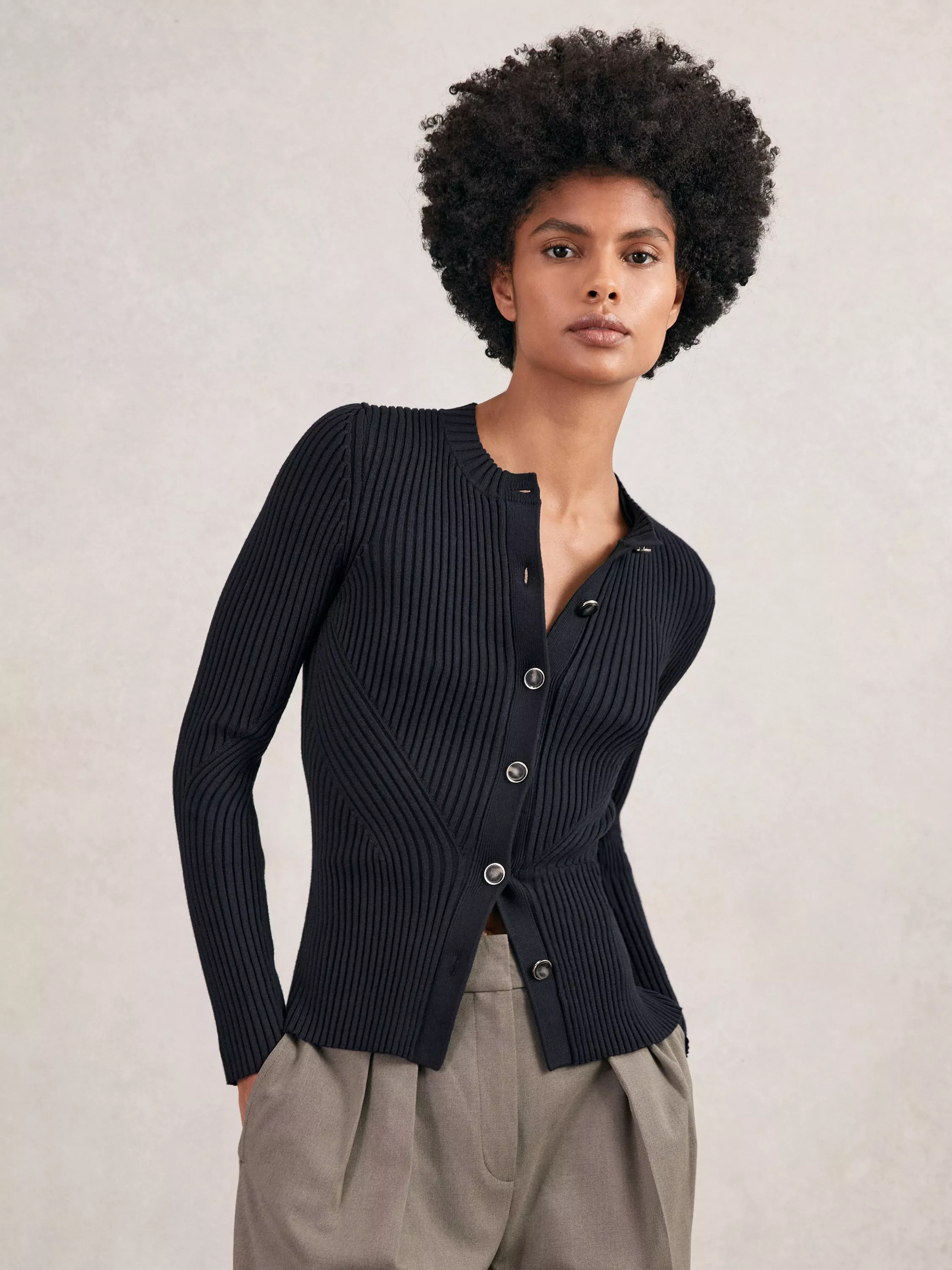 ReissTula Ribbed Knit Cardigan, Navy