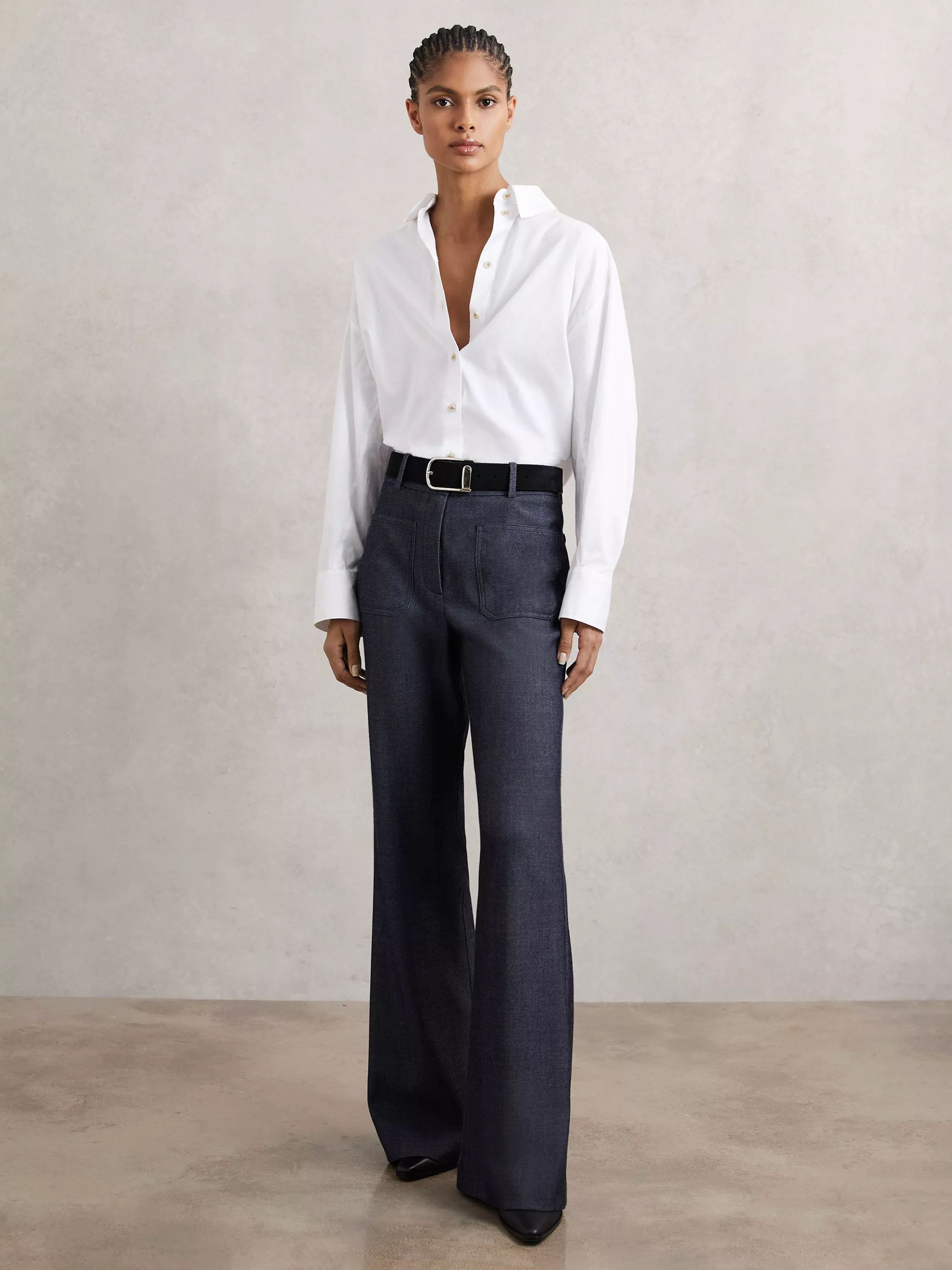 ReissUma Flannel Flared Wool Blend Trousers, Blue