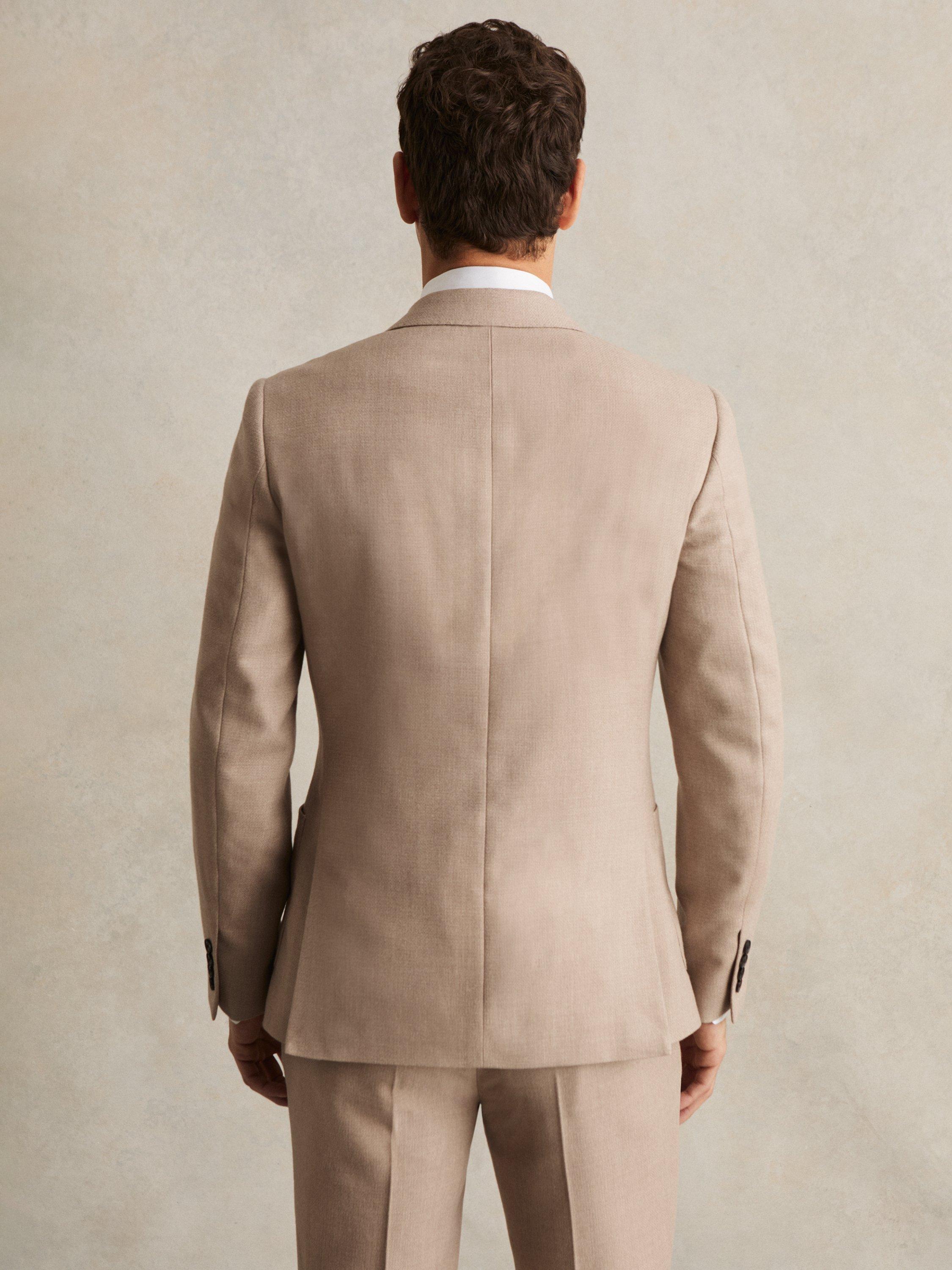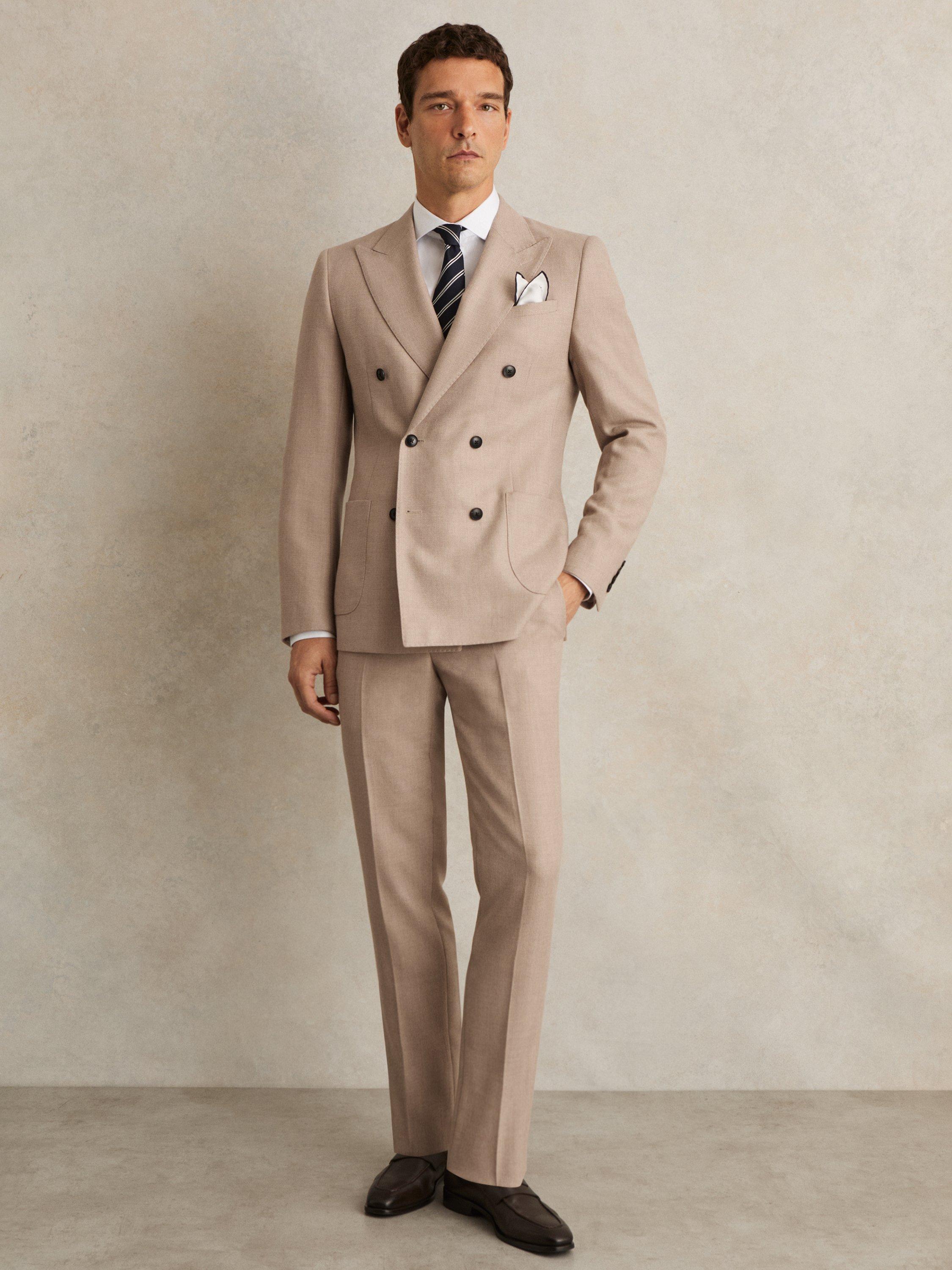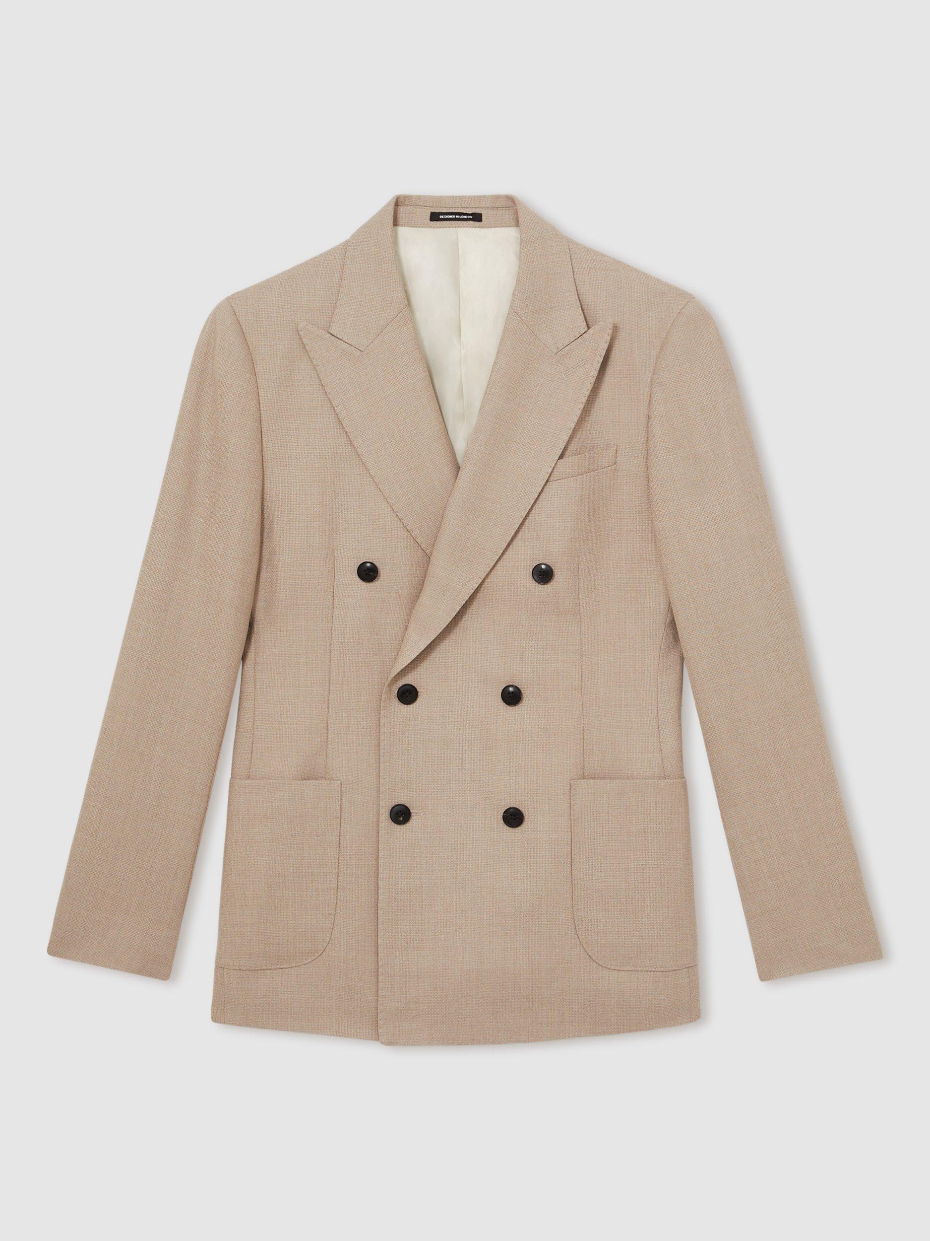 The Venus blazer from Reiss is tailored from a textured wool blend to a slim, double-breasted silhouette with a six-button front. Peak lapels with pick stitching and softly shaped shoulders sharpen the profile, while patch pockets offer a refined finish.