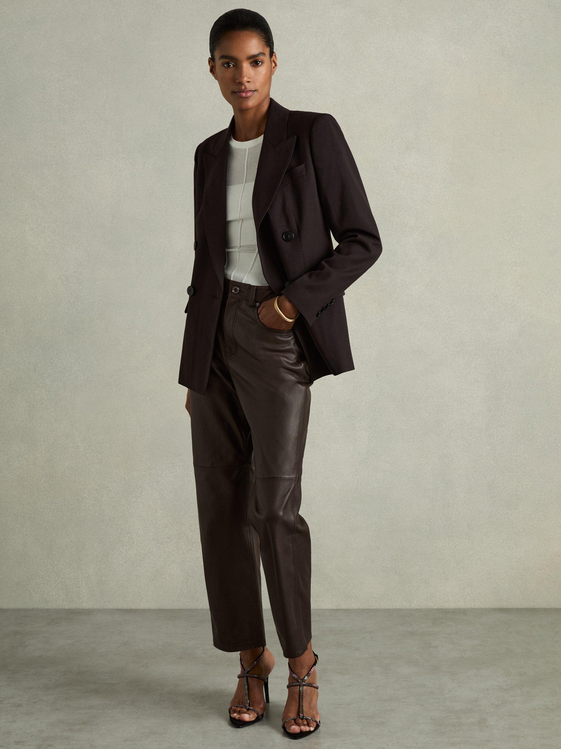 Soft and supple in pure leather, this pair of cropped trousers from Reiss sit high on the hips and falls to a slim straight silhouette. Glam up or pair with chunky knits on laid-back autumnal days.