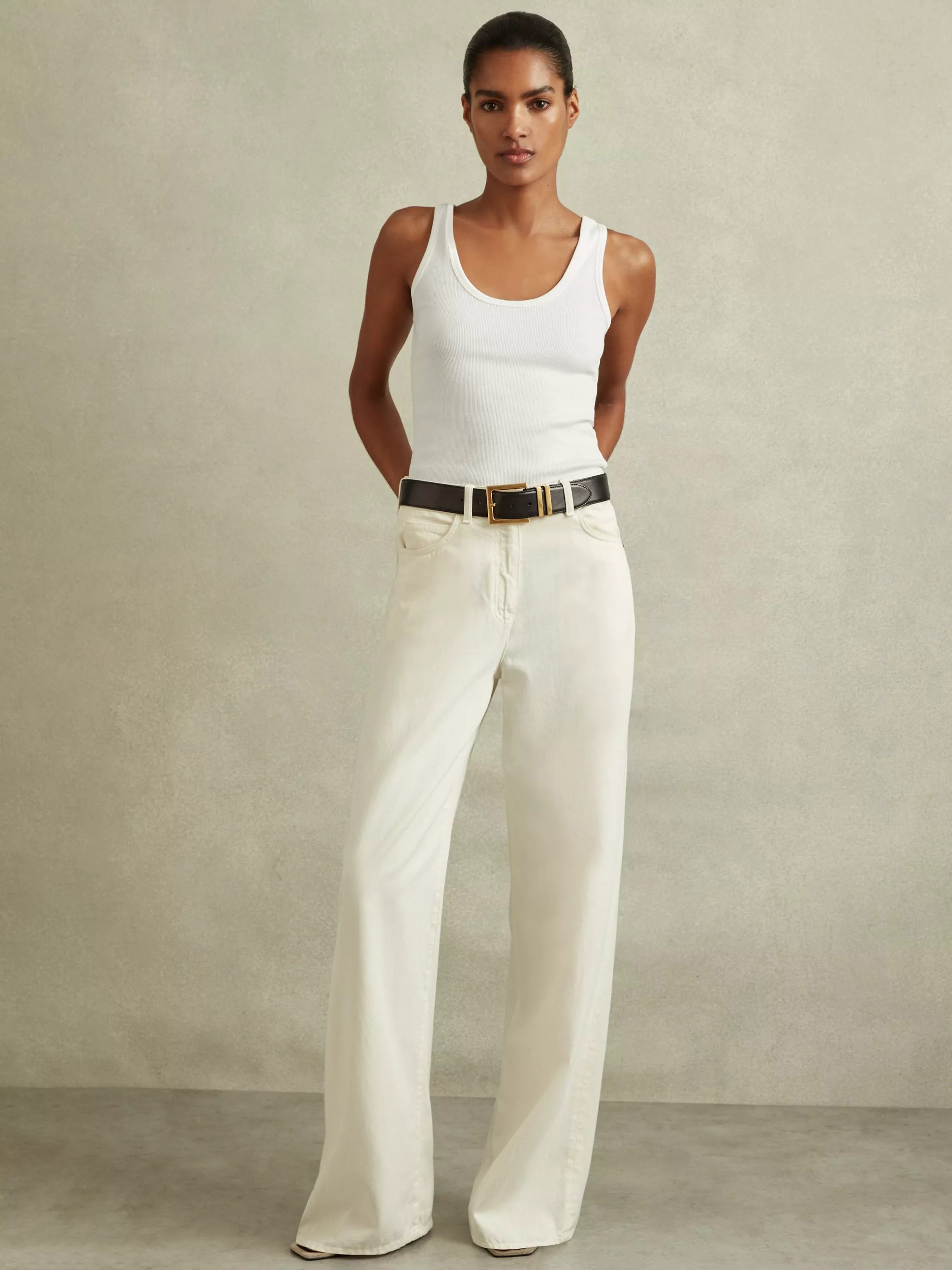 ReissViolet Scoop Neck Ribbed Vest Top, White
