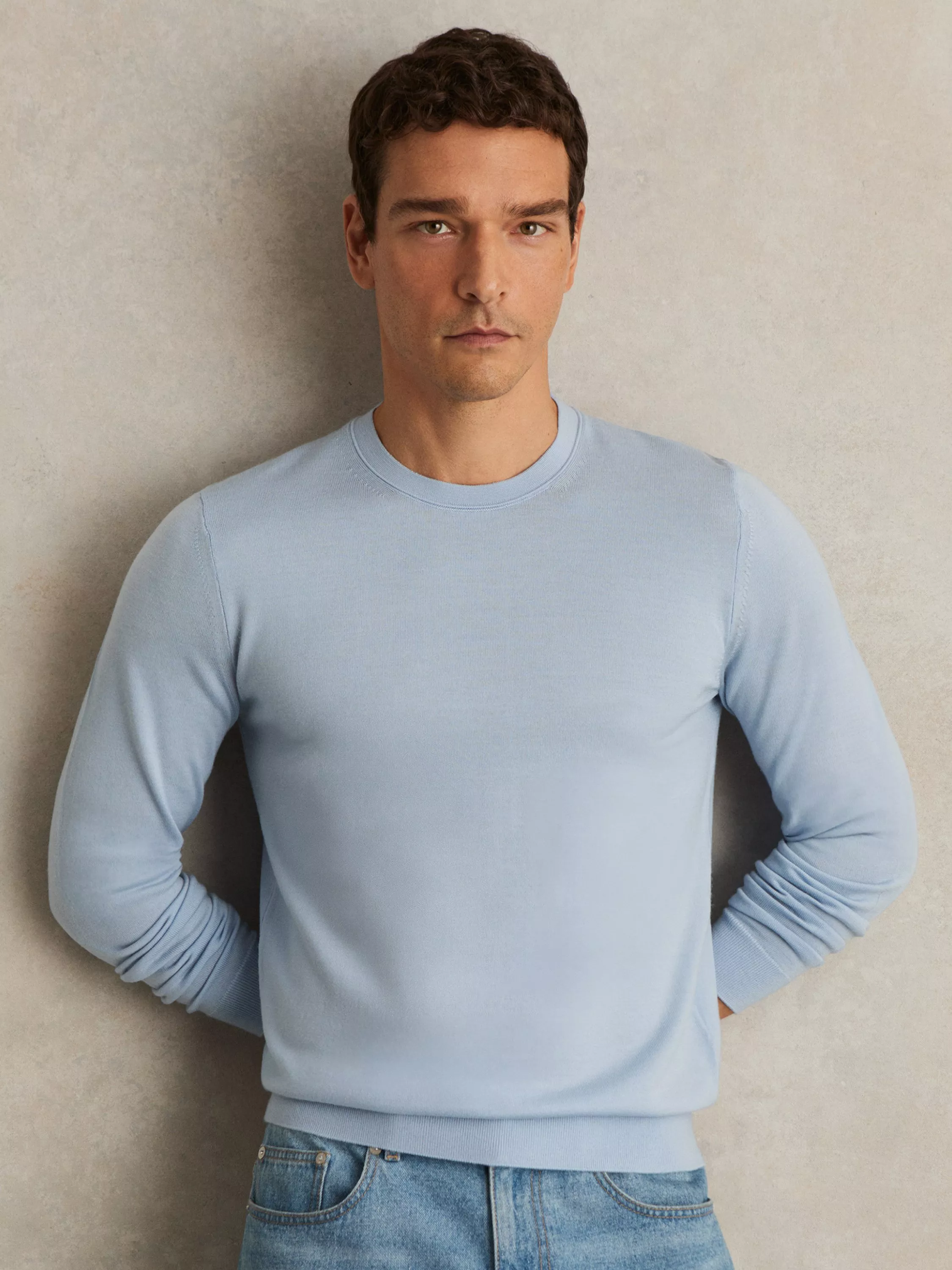 Pulling on easily in cooler climes, this crew neck knit from Reiss is finely knitted from wool for a super cosy texture.