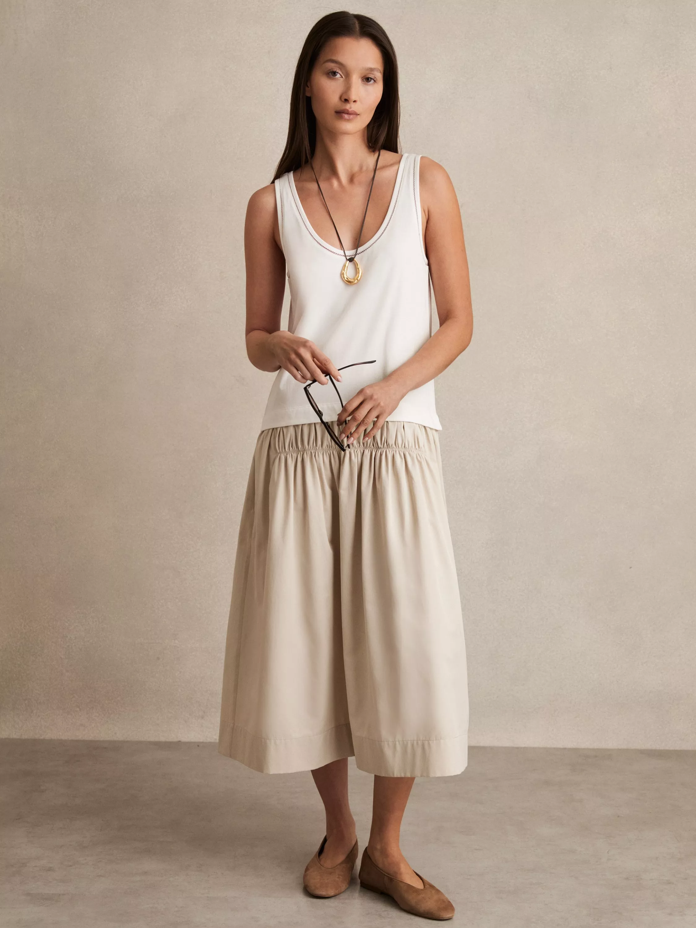 A casual favourite, this split midi dress from Reiss is made from a cotton fabric blend and gives the appearance of a vest and a skirt. With a scoop neckline, this style features a contrast flared skirt with an elasticated dropped waist.
