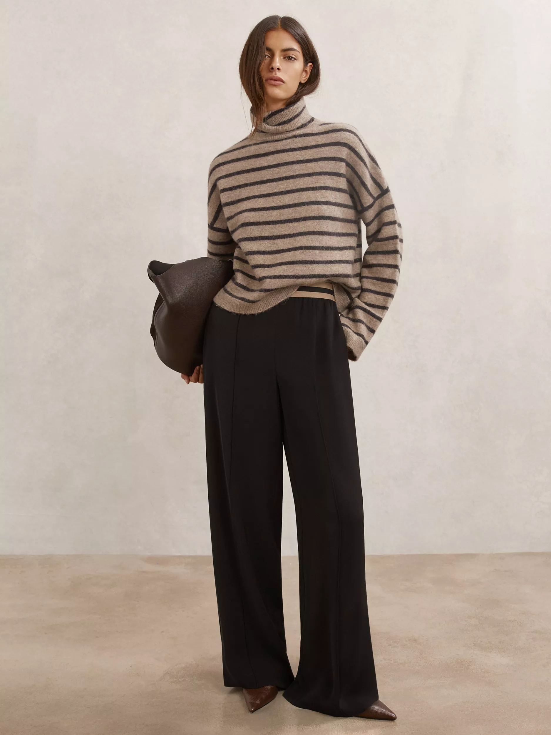 A fine knit roll neck, featuring soft alpaca blend stripes for lasting comfort and a distinctive look. Layer for any casual occasion.