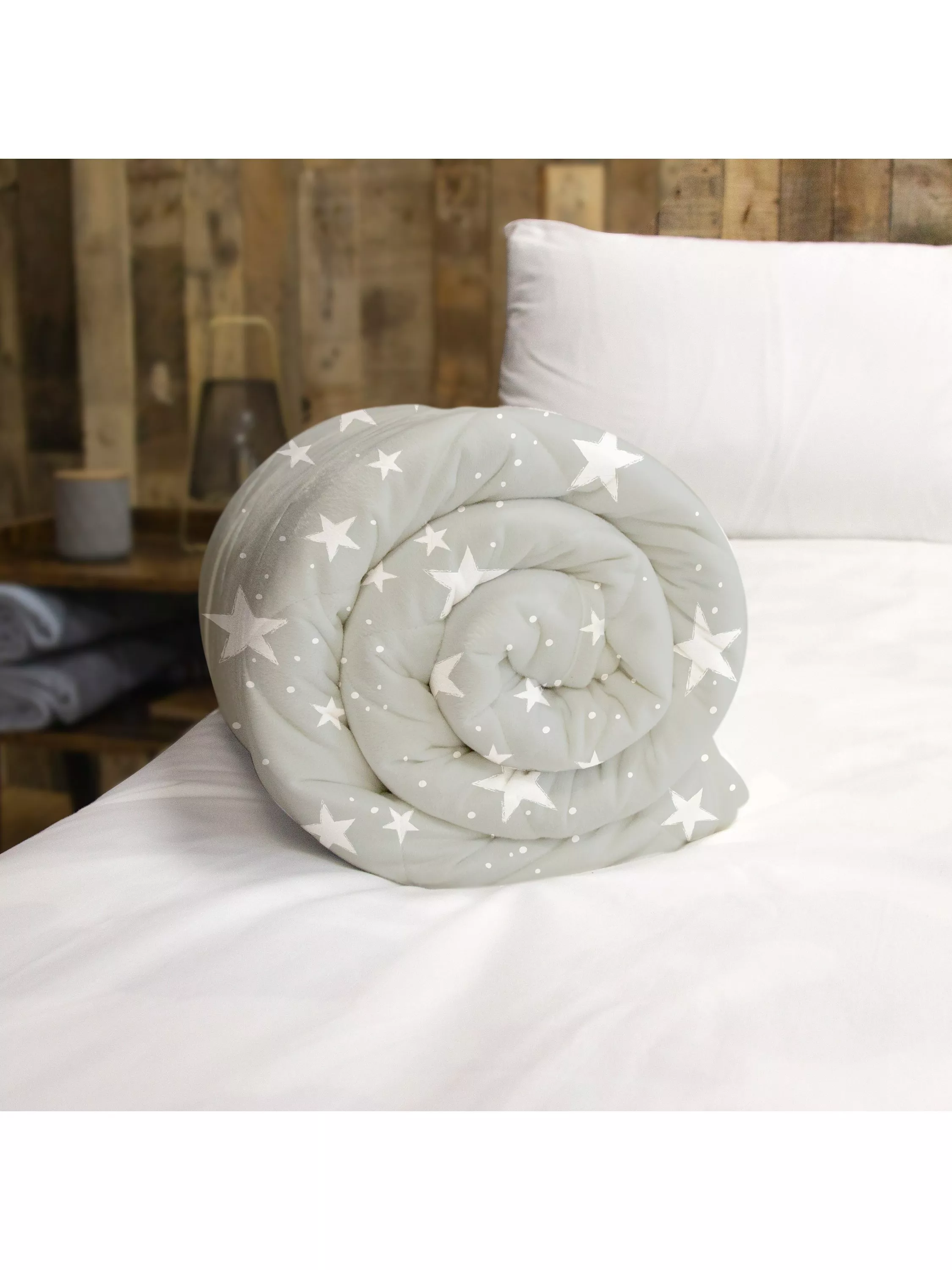 Weighted blankets are designed to reduce anxiety, improve sleep quality and aid relaxation. They have a special weighty filling that stimulates deep touch pressure across the body, creating the sensation of a comforting hug. This calming effect restores a sense of stillness and restfulness. This weighted blanket from Rest Easy Sleep Better is designed with a playful star print.