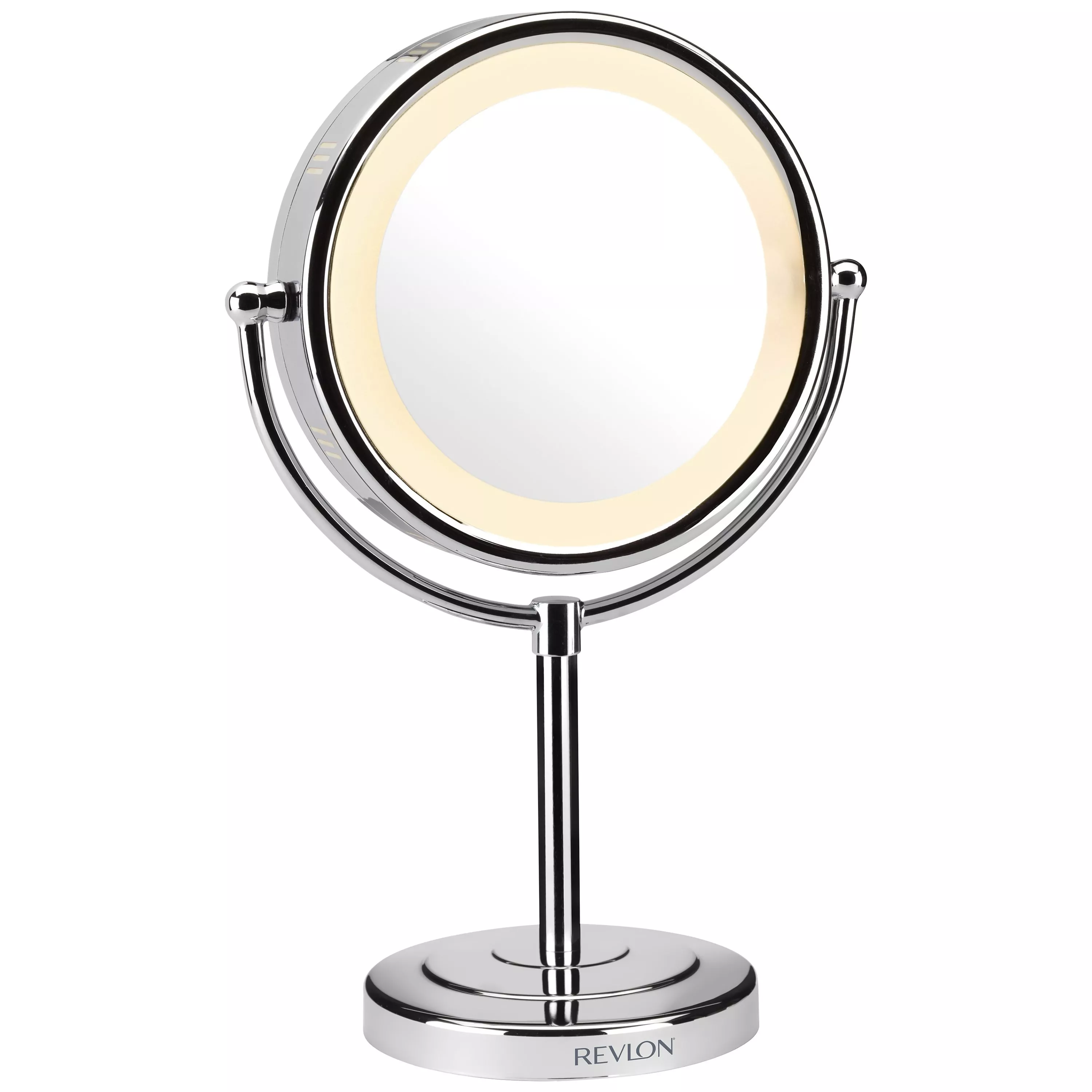 This luxury double-sided mirror is perfect for make-up application and detailed grooming. In a sleek and contemporary polished chrome finish with a simple ripple-effect base, the mirror will look chic in any interior.