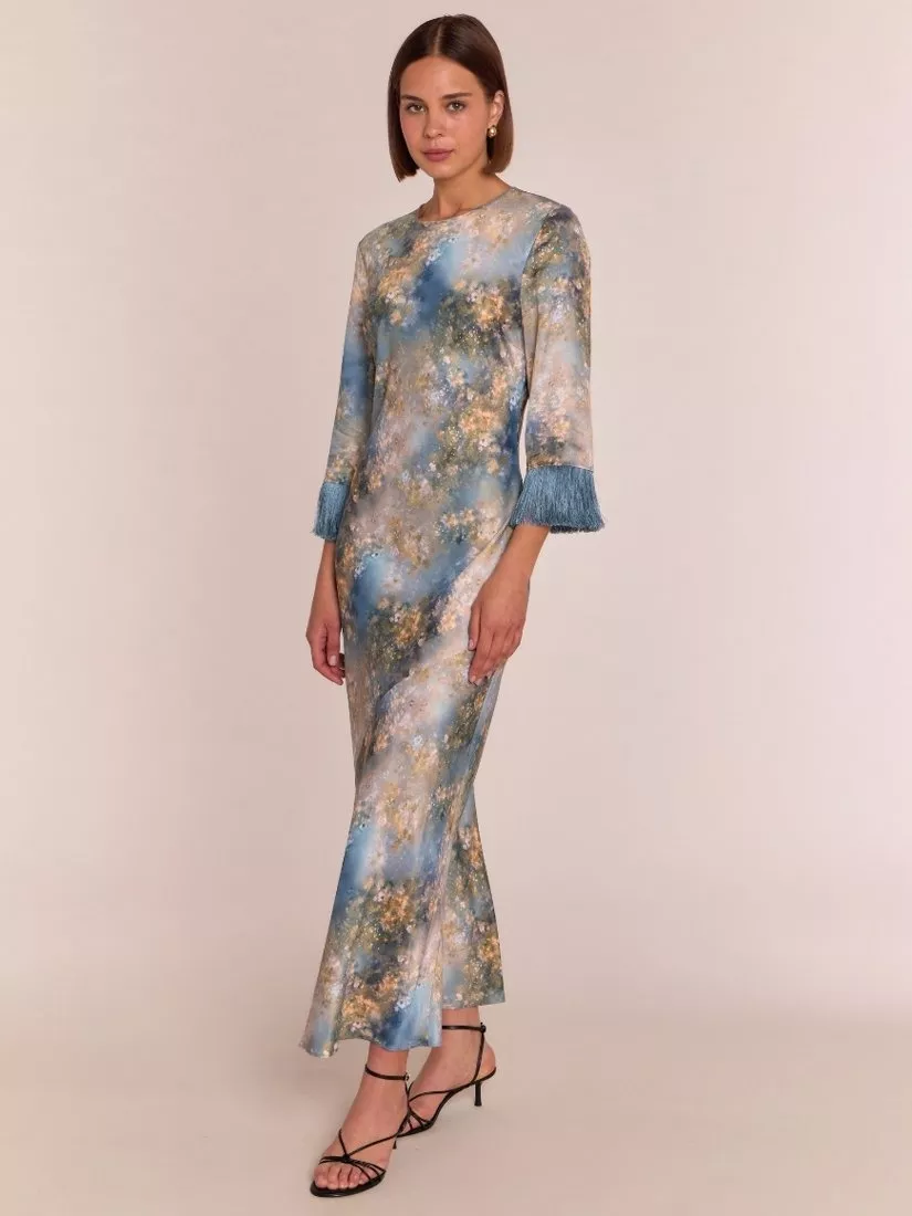 The best-selling Dolly dress is back with a summery twist. Featuring a flattering round neckline and 3/4 length sleeves with playful fringe detail, this dress is as cool as it is comfortable. The celestial print is sure to win attention at any event, from a wedding guest to a garden party or an evening out for dinner. A small side split adds a touch of movement, while the keyhole neck and button detail at the back finish off the look.
