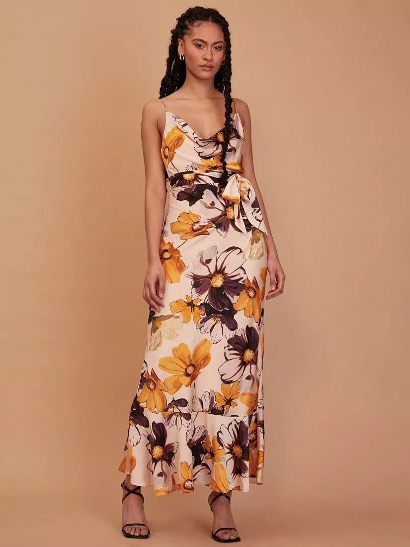 RewrittenPollenca Cowl Neck Floral Print Maxi Dress, Multi