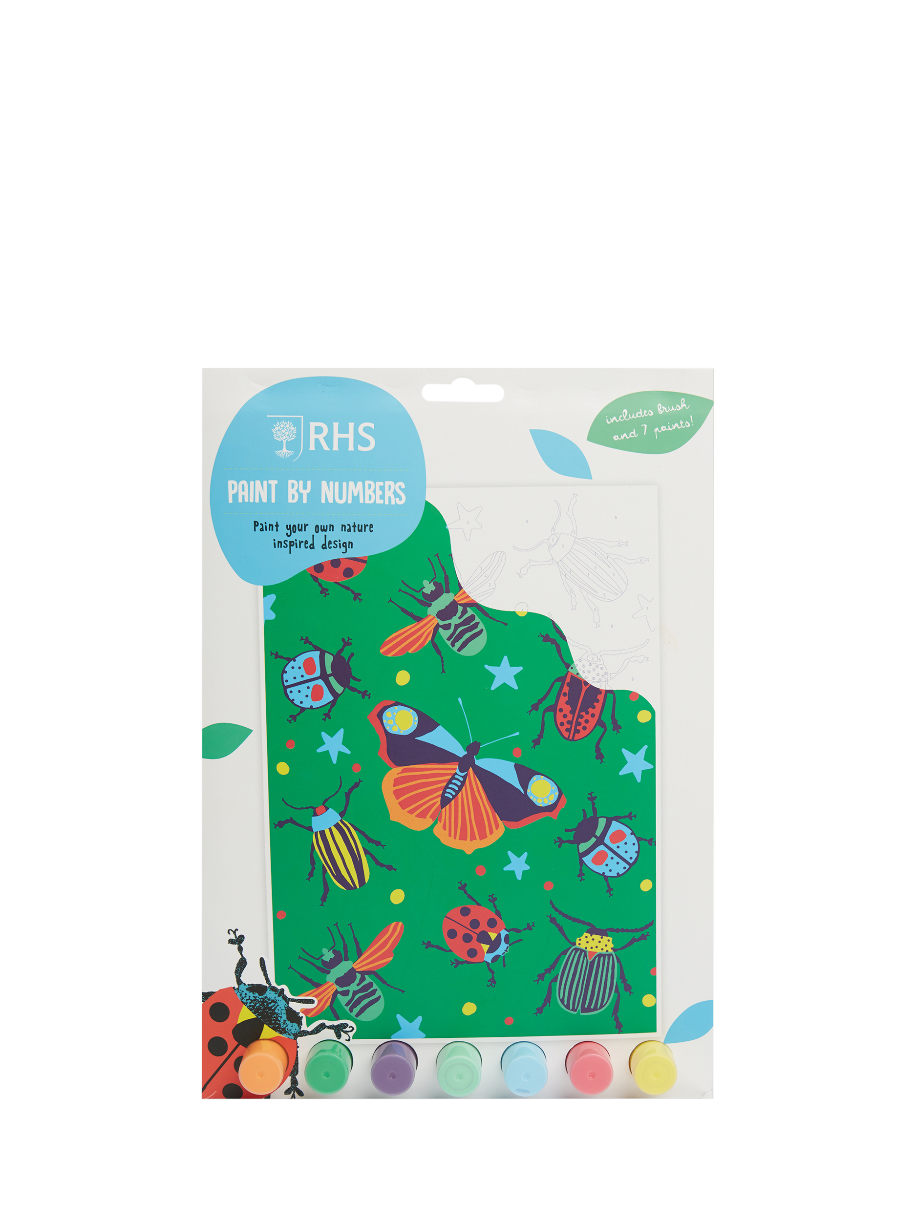 This fun "Bugs" design includes 7x paints and a brush.