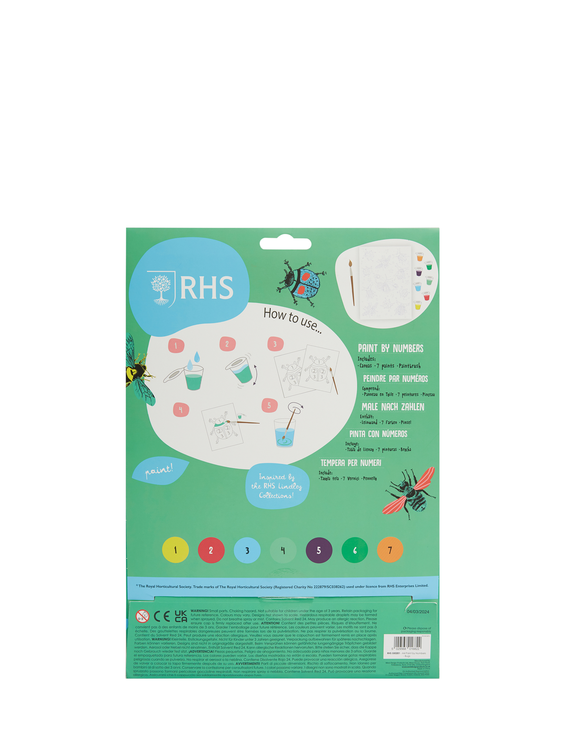 Inspired by the RHS Lindley collections, this A4 paint by numbers kit is perfect for children to take their first steps in art.