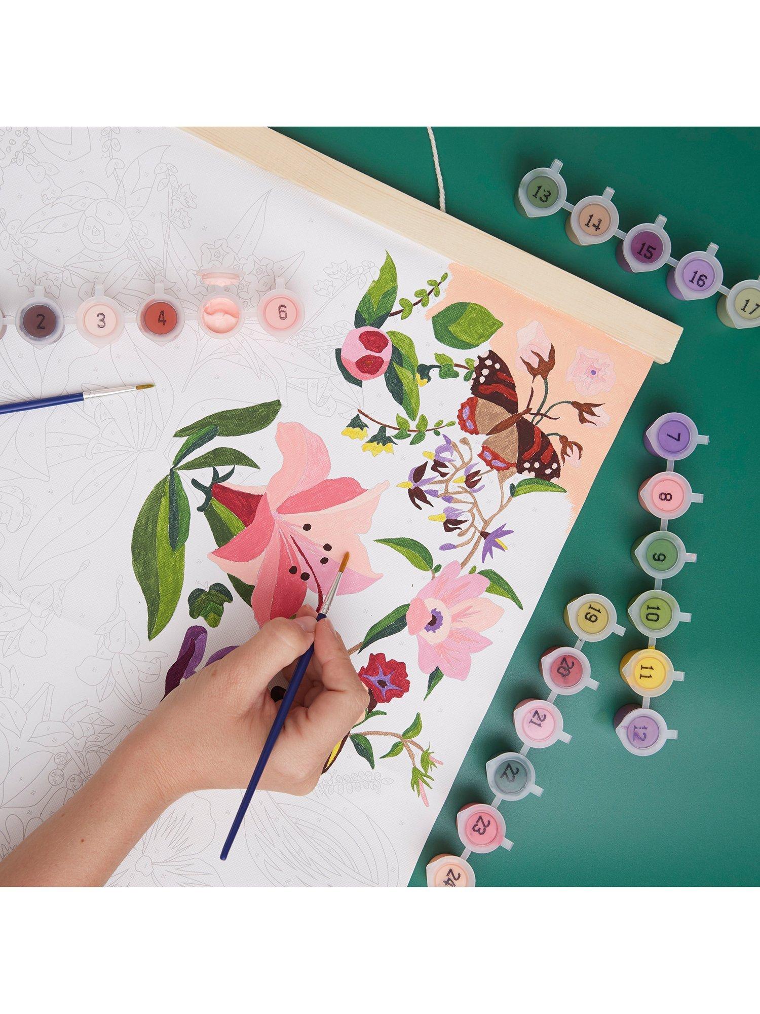 Inspired by the RHS Royal Horticultural Society Lindley collections, this paint by numbers kit makes a stunning wall hanging for your home in a floral kaleidoscope design.