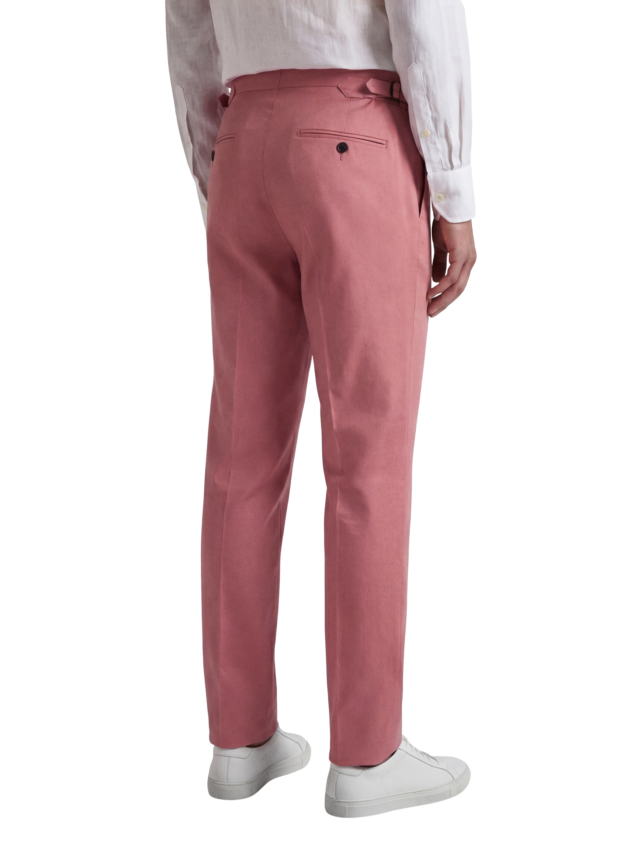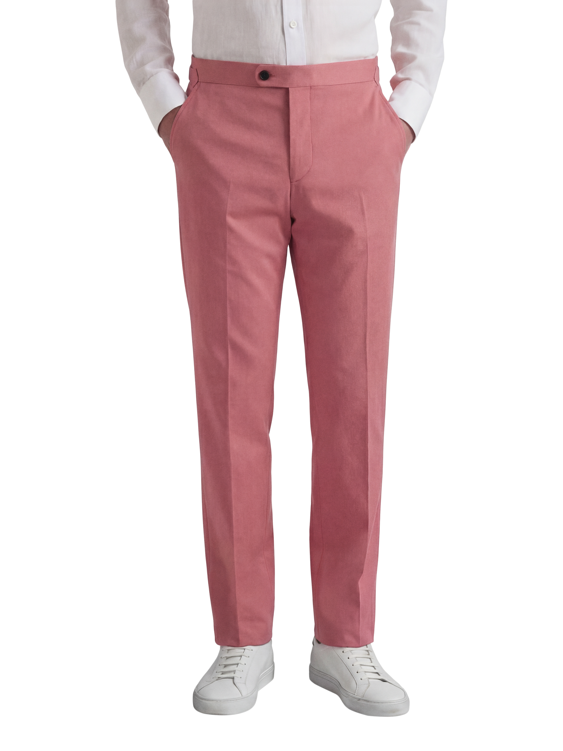 A sharp, warm-weather tailored trouser in breathable cotton, cut with a clean flat front for a modern silhouette. Ideal for smart days, summer events and elevated weekend dressing.