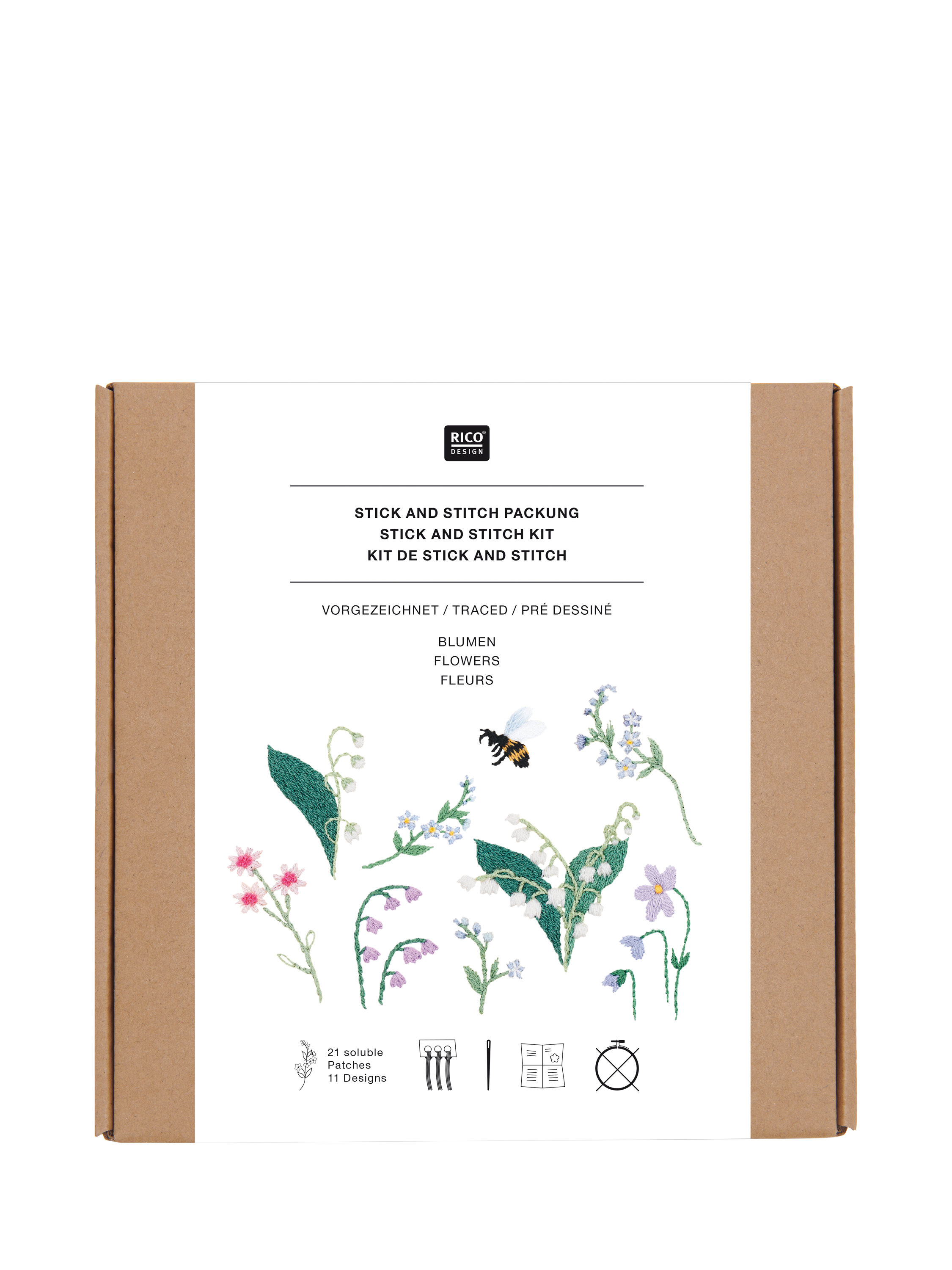 The self-adhesive pattern is stuck onto a washable textile backing you can clamp into an embroidery hoop. After embroidering, the glued-on pattern can be easily removed from the embroidered background under warm water.