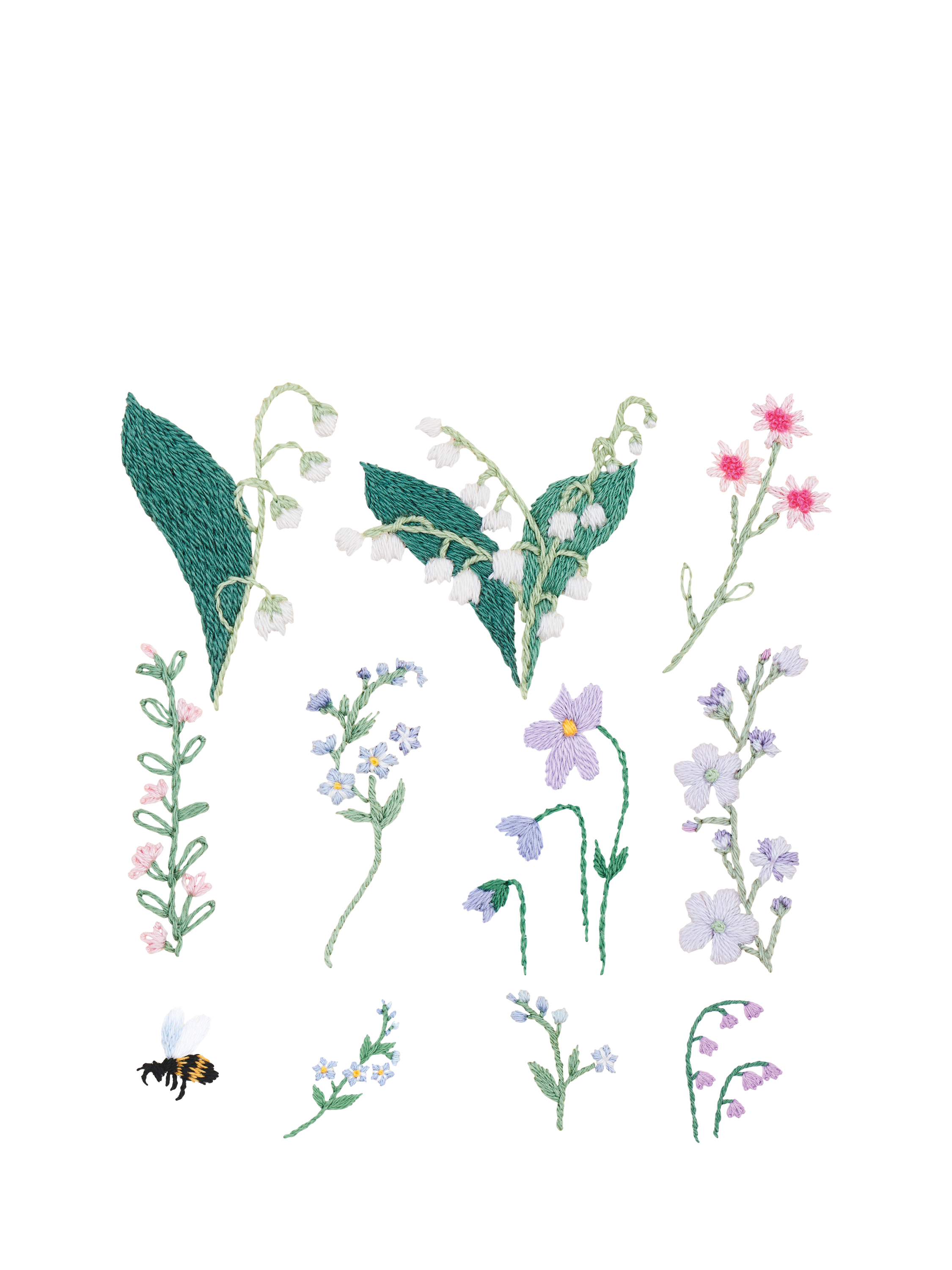 Embroider flower and bee designs onto items of clothing, tablecloths or cloth napkins.