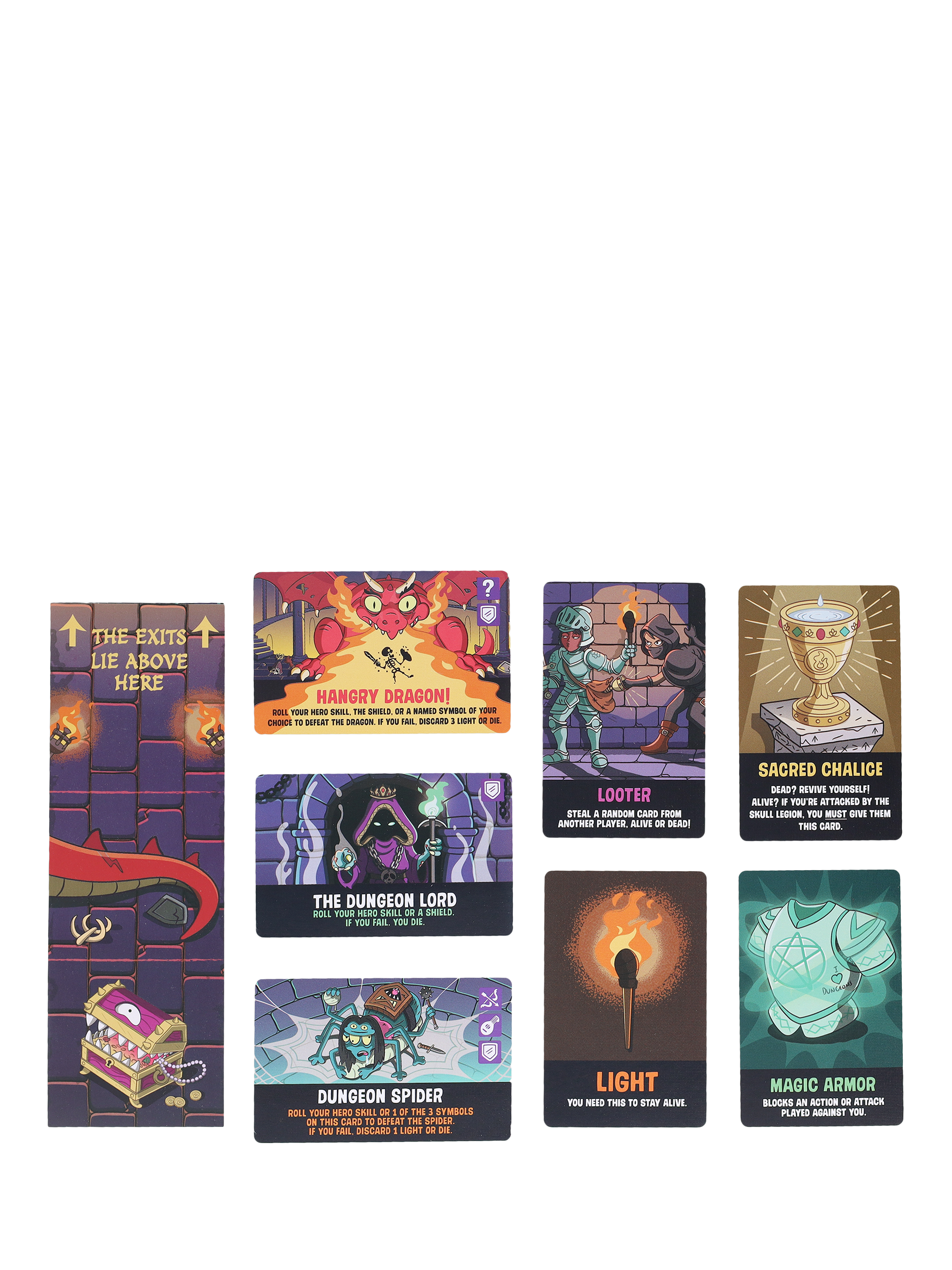 You and your fellow heroes must escape the deadly lair of the Dungeon Lord. In the pitch-black dungeon, your torch’s dying flame is all that stands between you and total darkness. There are three ways out of this place, but only one of them will grant you freedom without cost. And only the first person to find their way out will survive.