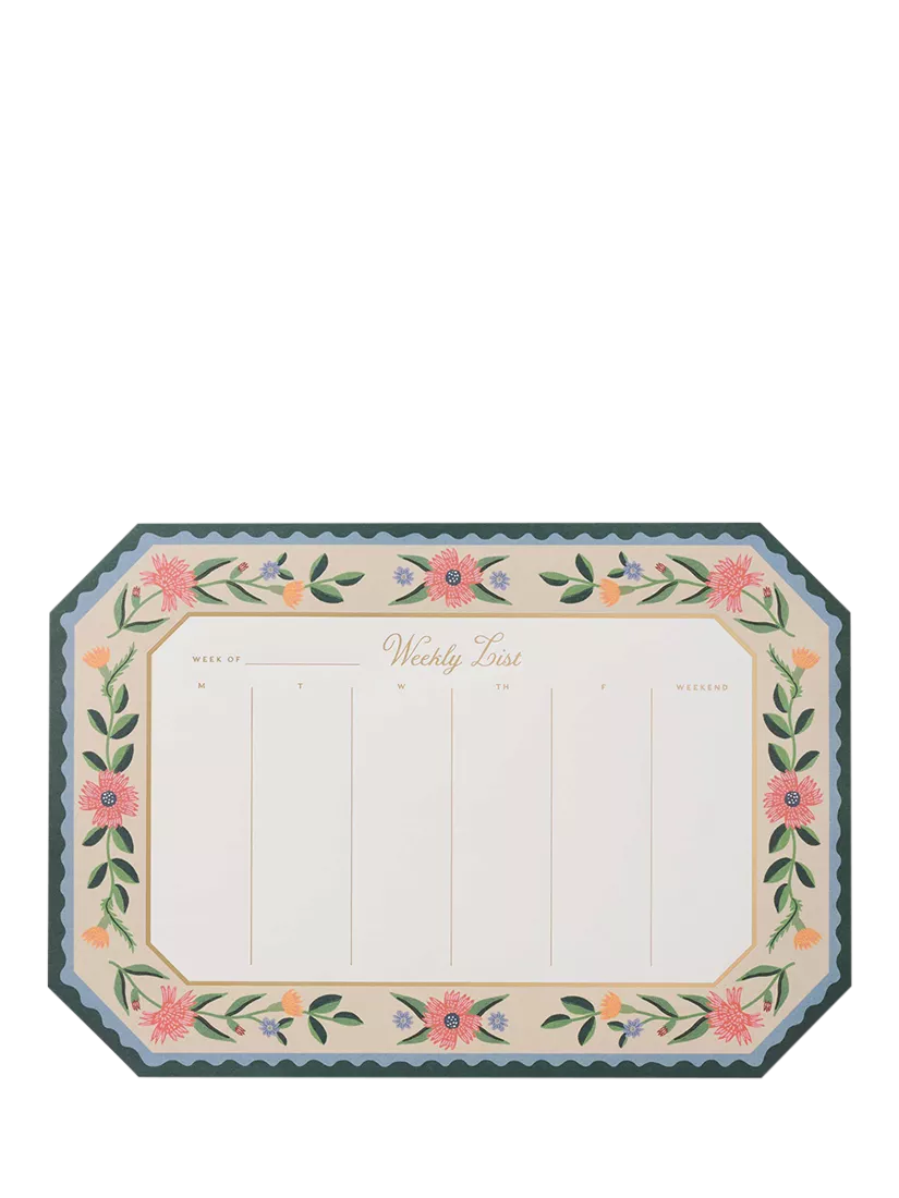 Plan your week at a glance with this illustrated desk pad from Rifle Paper Co, featuring the Aster floral design and plenty of space for notes, to-dos, and priorities.