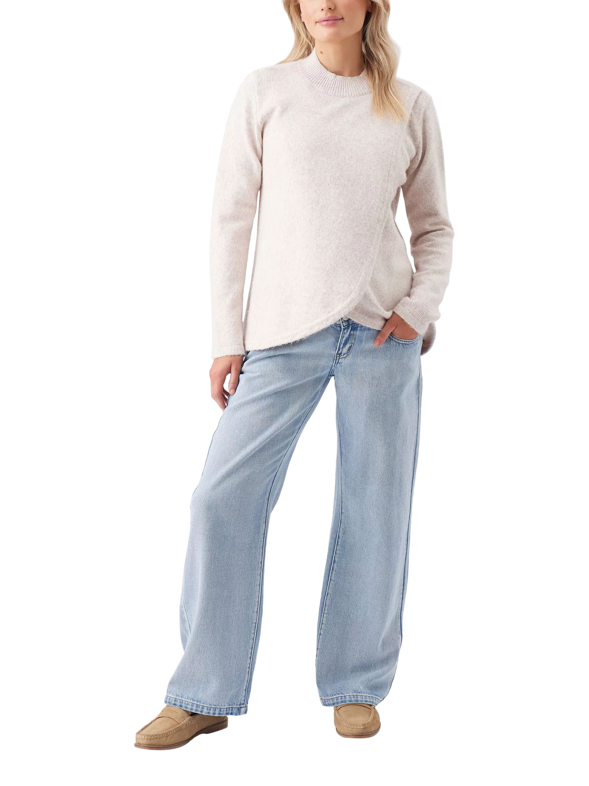 Complete your maternity and nursing wardrobe with the perfect multi-wear knit jumper. The Addison Nursing Knit is crafted from a soft and smooth fully fashioned knit blend that is both practical and pretty. Its crossover front draws the eye in, whilst also adding functionality, offering easy nursing access for breastfeeding mums. Its semi-fitted silhouette is complemented by a cosy round neckline and full-length sleeves.