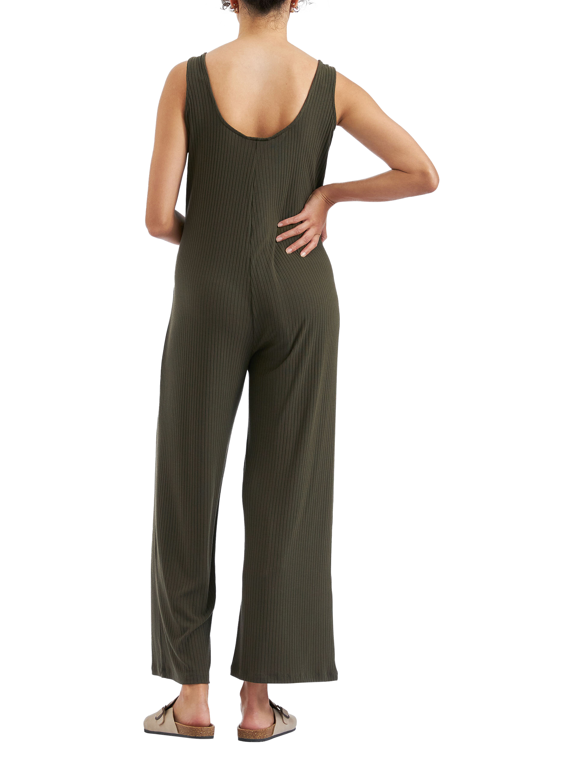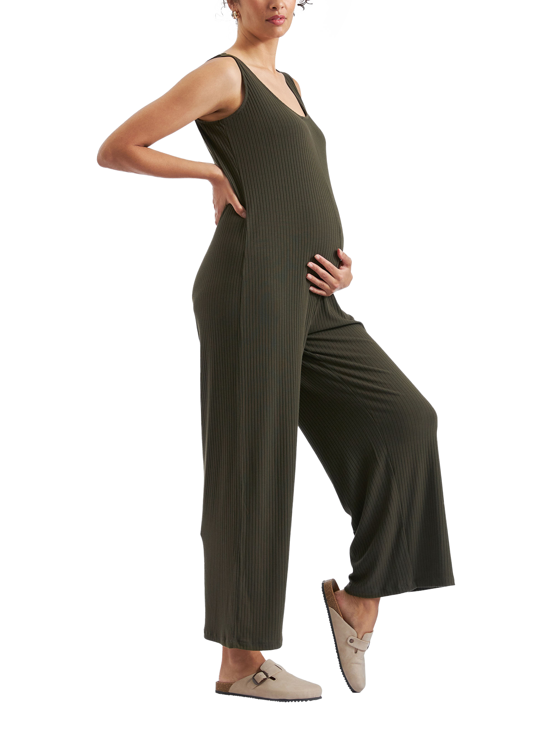 RipeBobby Ribbed Maternity Jumpsuit, Black, Khaki