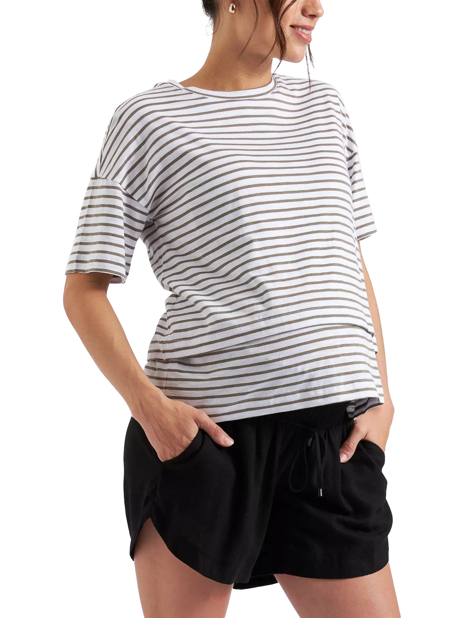 Meet your new favourite nursing tee, the Claudette. It's the perfect oversized, crew-neck boxy tee for before and after pregnancy, and its relaxed fit made from a breathable cotton stretch knit jersey ensures comfort during all three trimesters - and beyond. Simplified nursing access guaranteed with our signature lift-up overlayer.