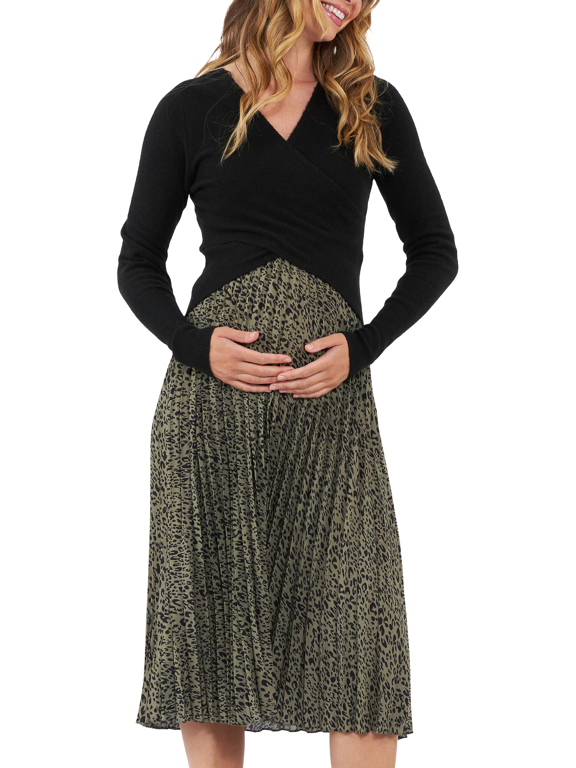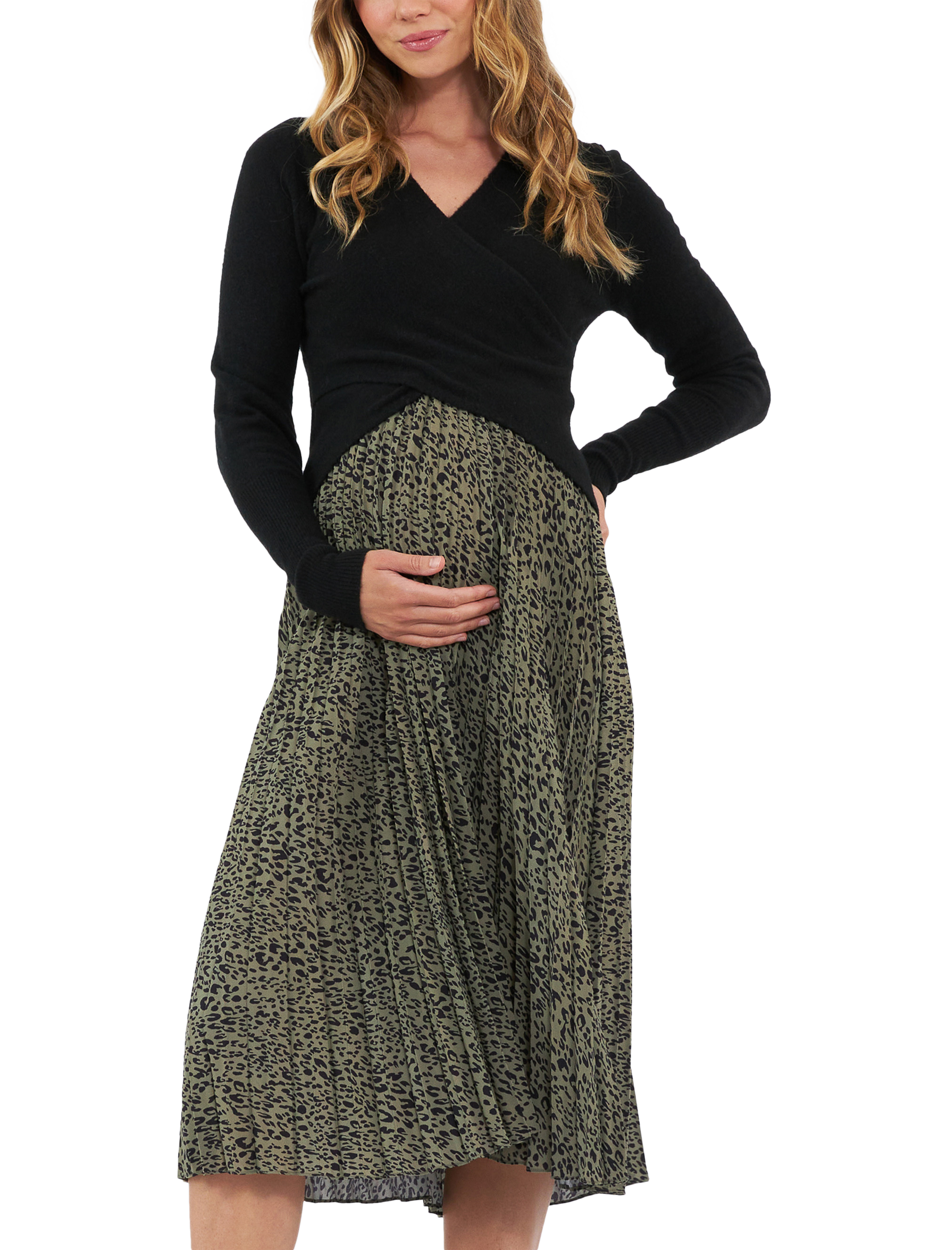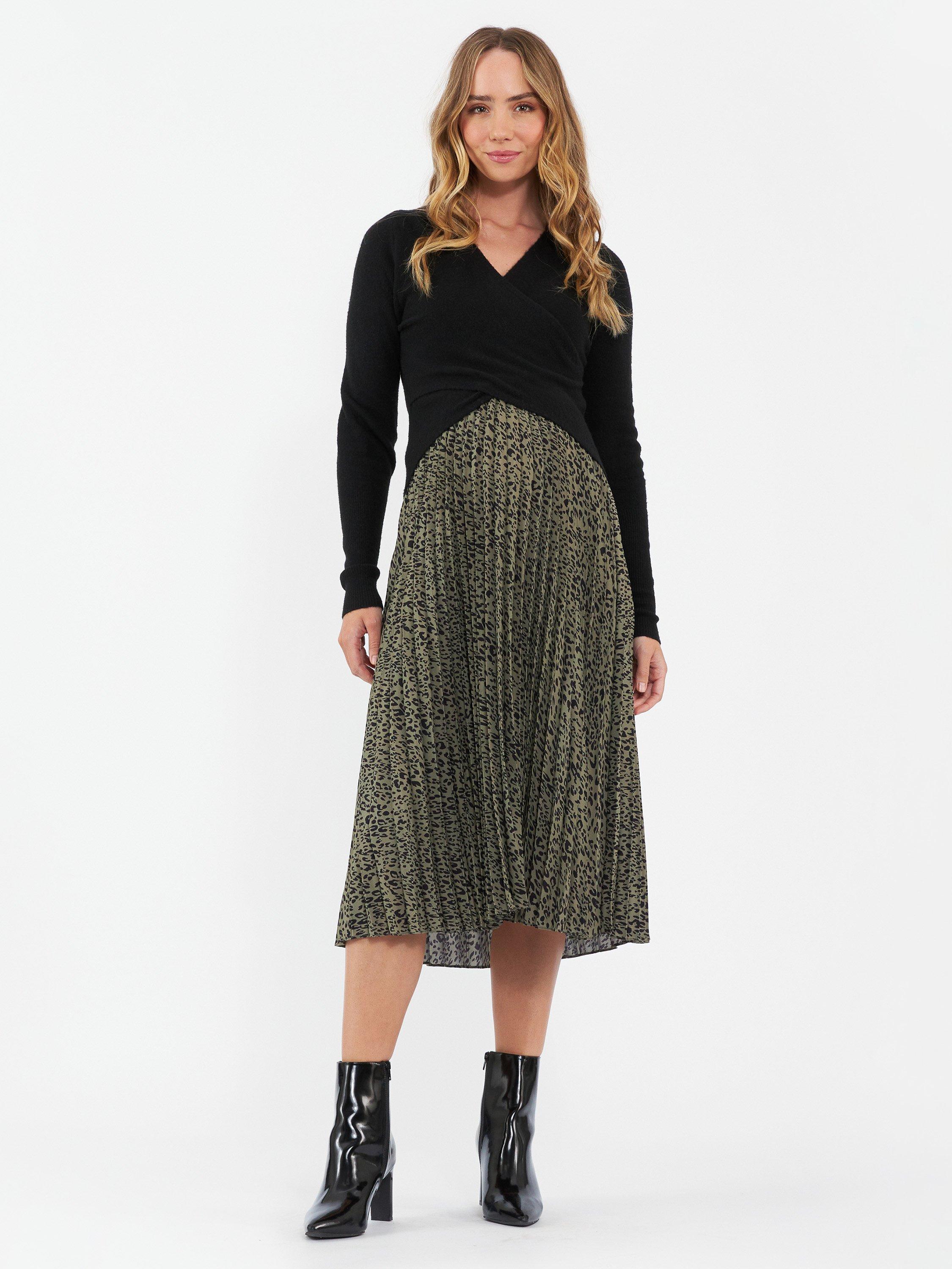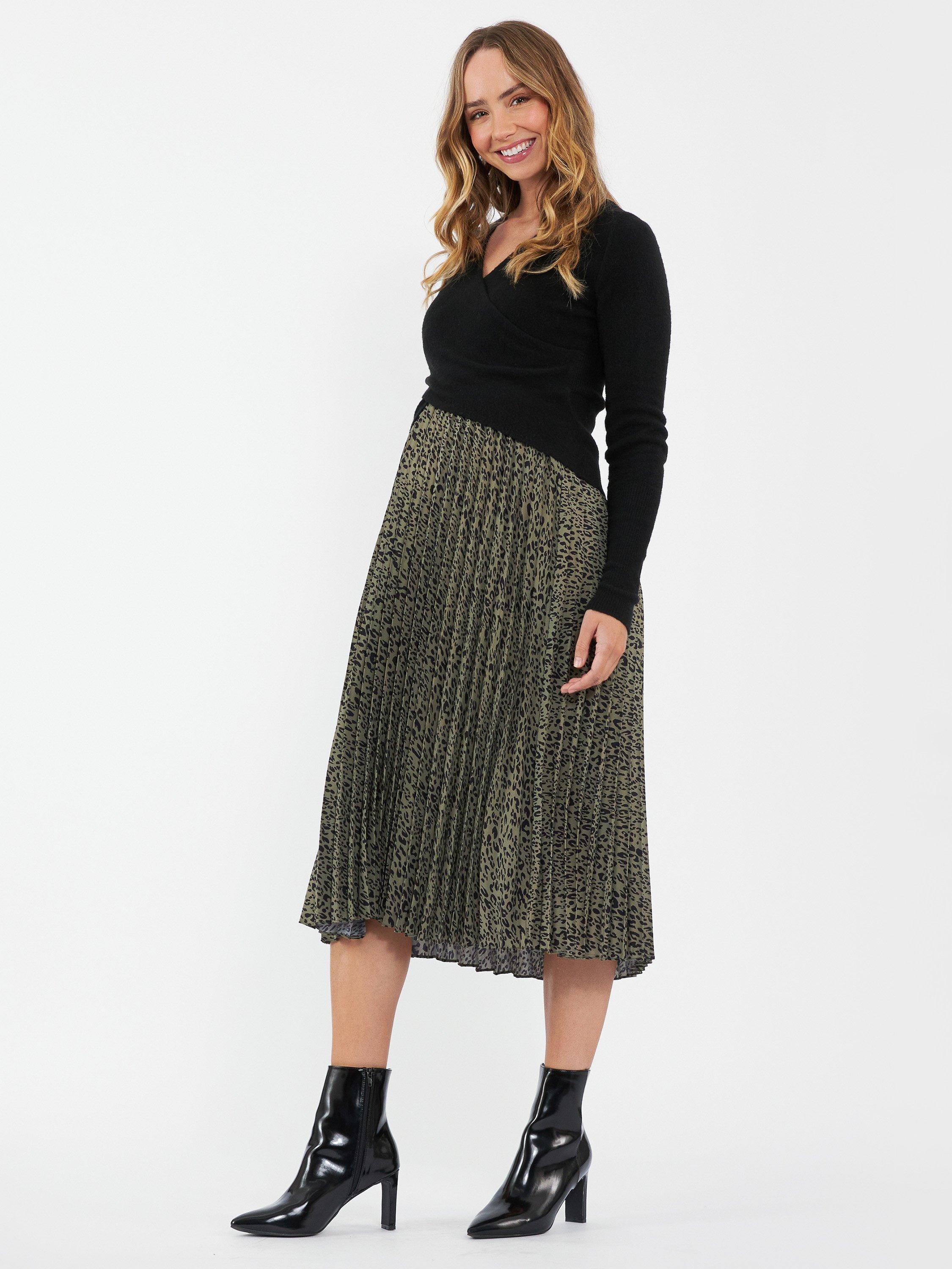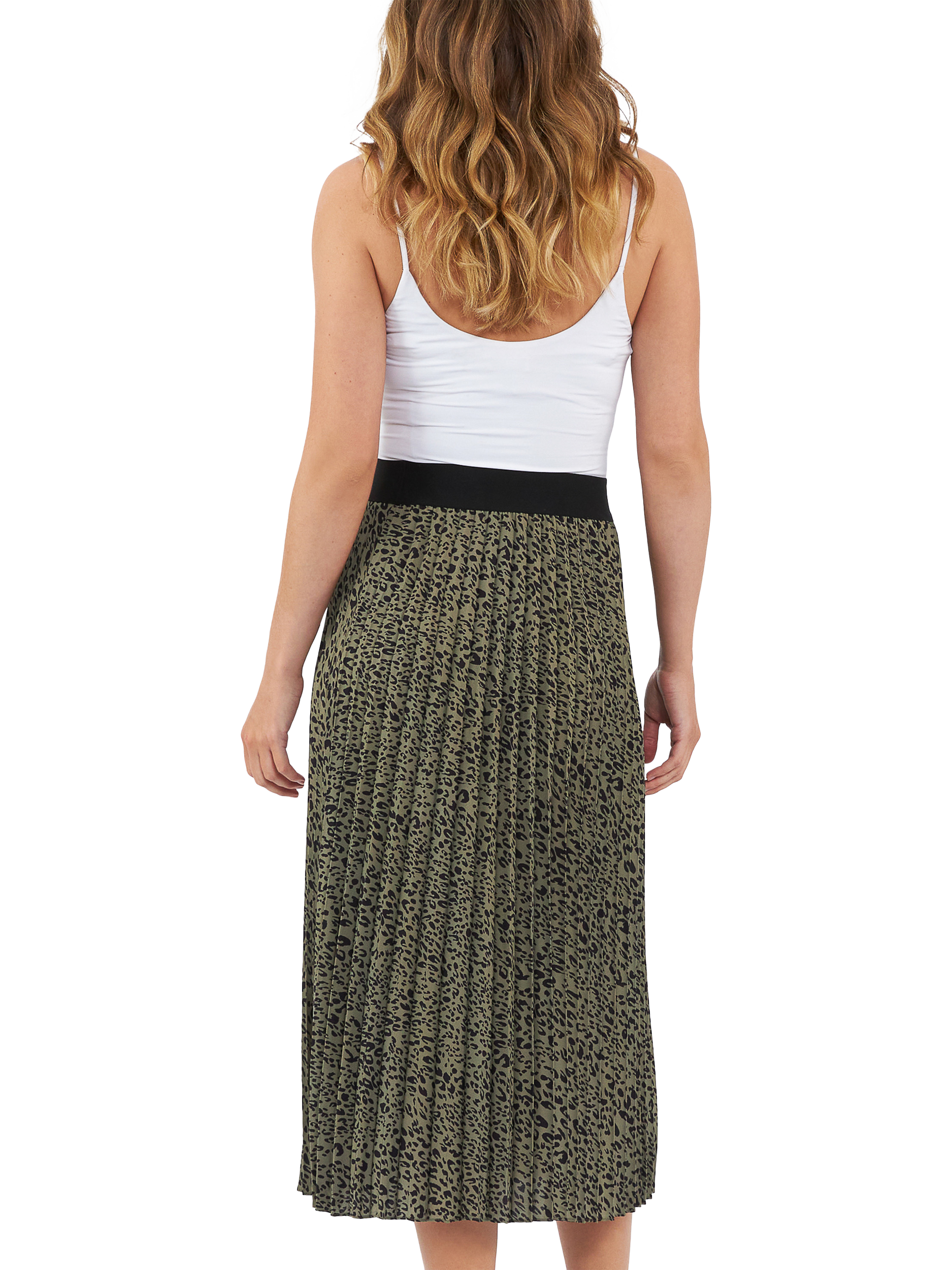 The effortlessly chic Cleo Pleat Skirt with its sunray pleated design will turn heads this season. Designed from 100% woven polyester, it features a comfortable elastic waistband designed to sit over your bump for a relaxed fit. The bold print graciously falls onto multiple-panel pleat detailing, creating a captivating flow with every stride. This versatile skirt offers endless styling options, seamlessly transitioning from casual day wear to an elegant evening out.