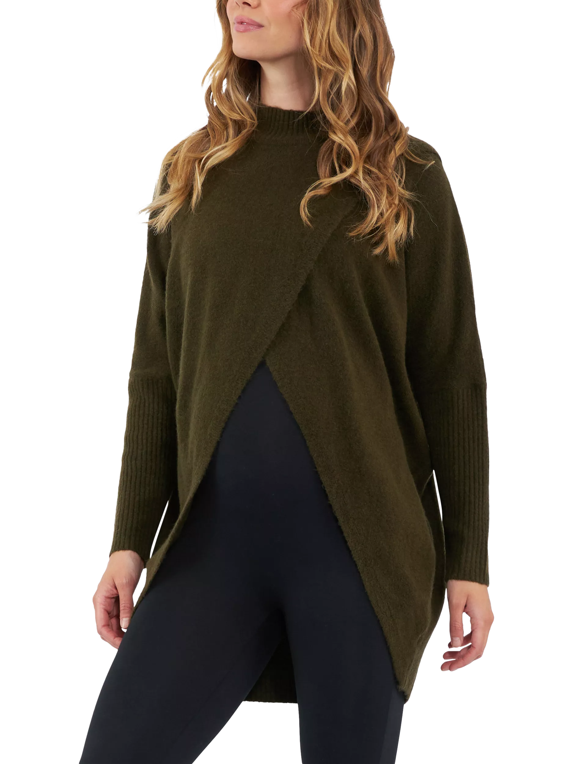 The Hallie Cross Over Knit is the perfect knit to keep you warm and stylish during those cooler days. Woven in a relaxed fit, this knit features a high neckline and cross-over silhouette that is designed to offer a flexible fit for every stage of pregnancy and beyond with easy nursing access.