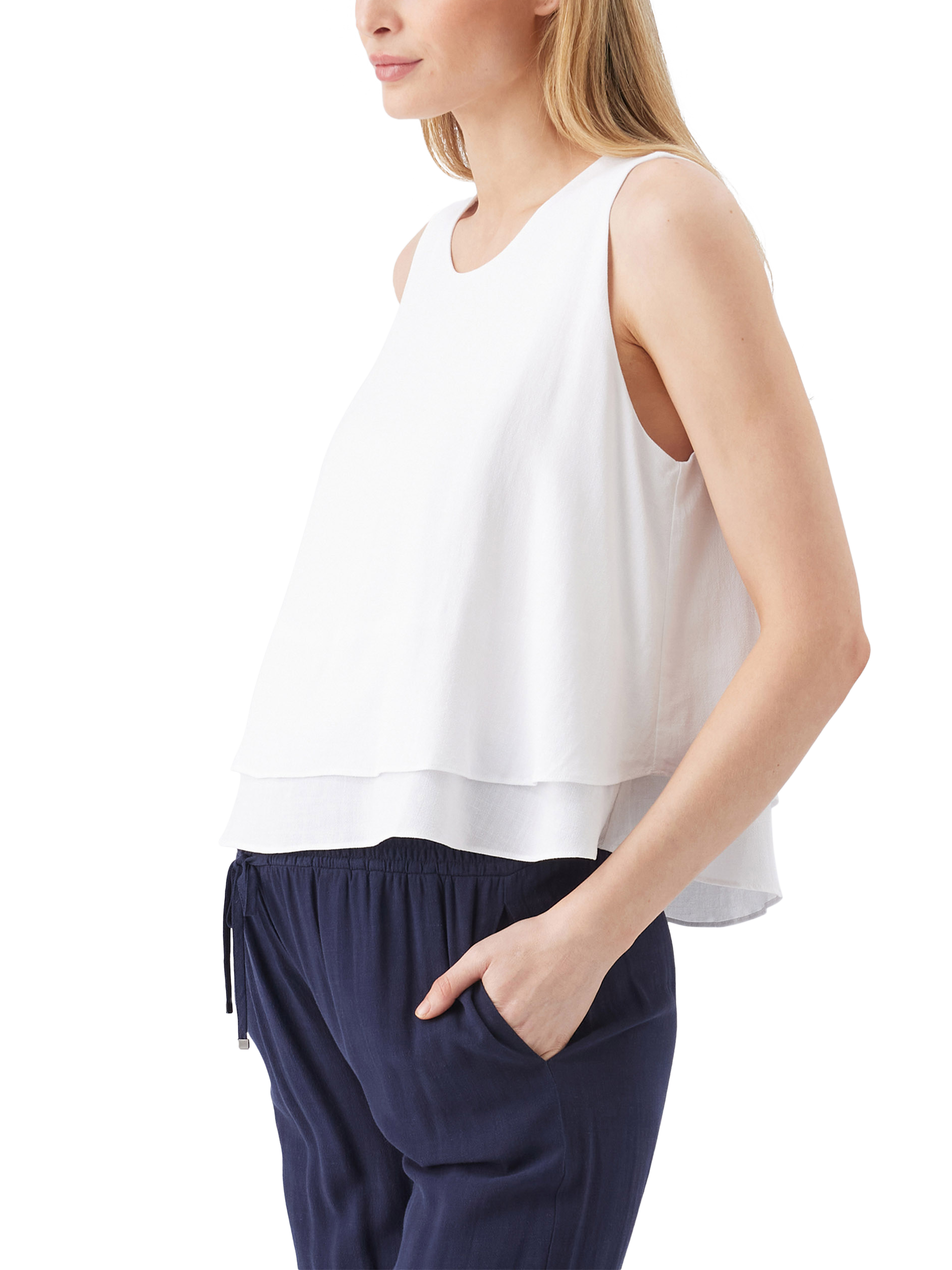 The Lois Nursing Top brings a refined touch to your everyday style. Made from a soft, breathable blend of viscose and linen, it features a semi-fitted shape through the bust that gently flares at the hem for a flattering fit. With a round neckline, sleeveless silhouette, and hidden zips, it offers easy nursing access without compromising on style. Effortless, polished, and perfect for day-to-night wear.