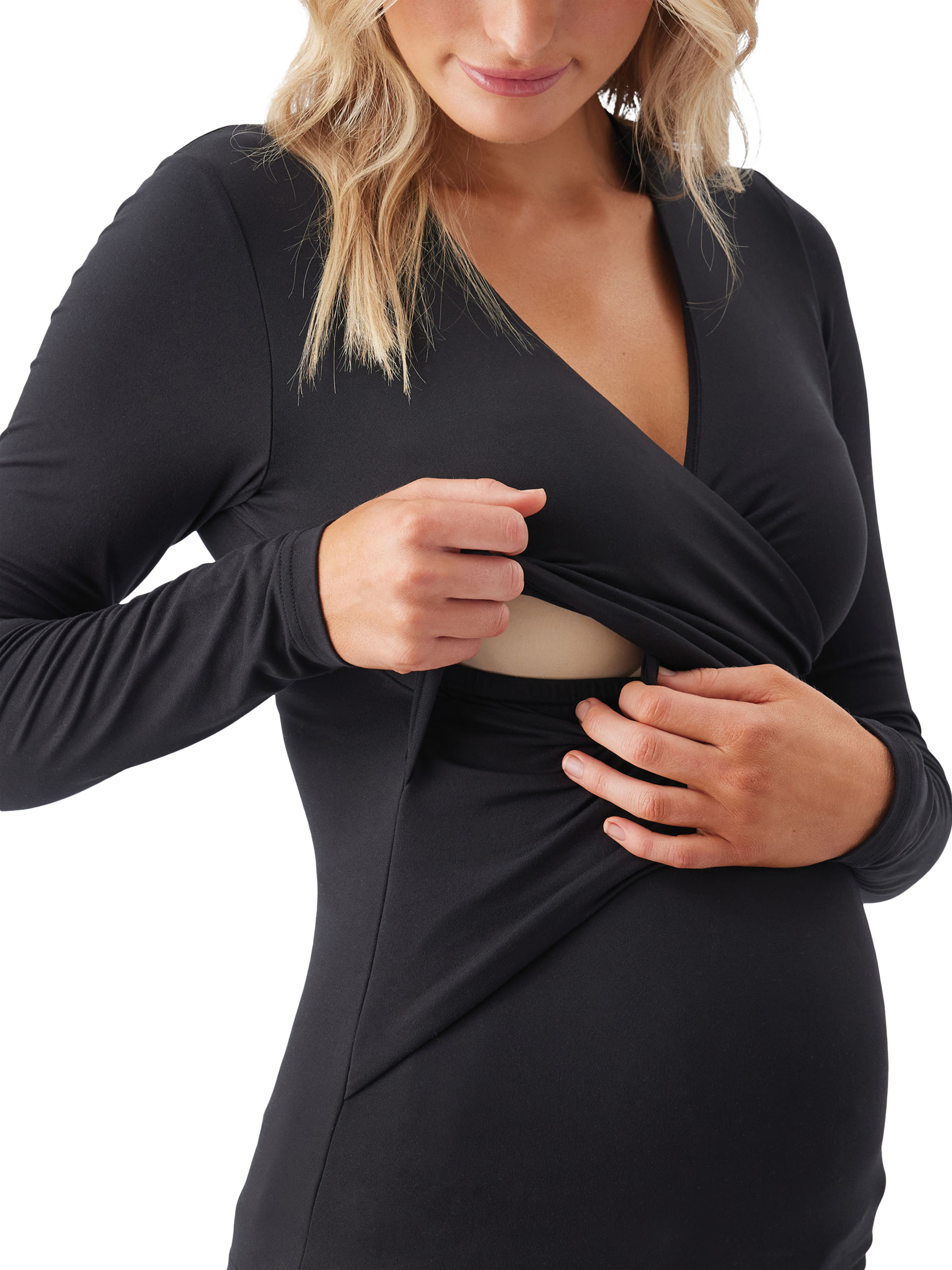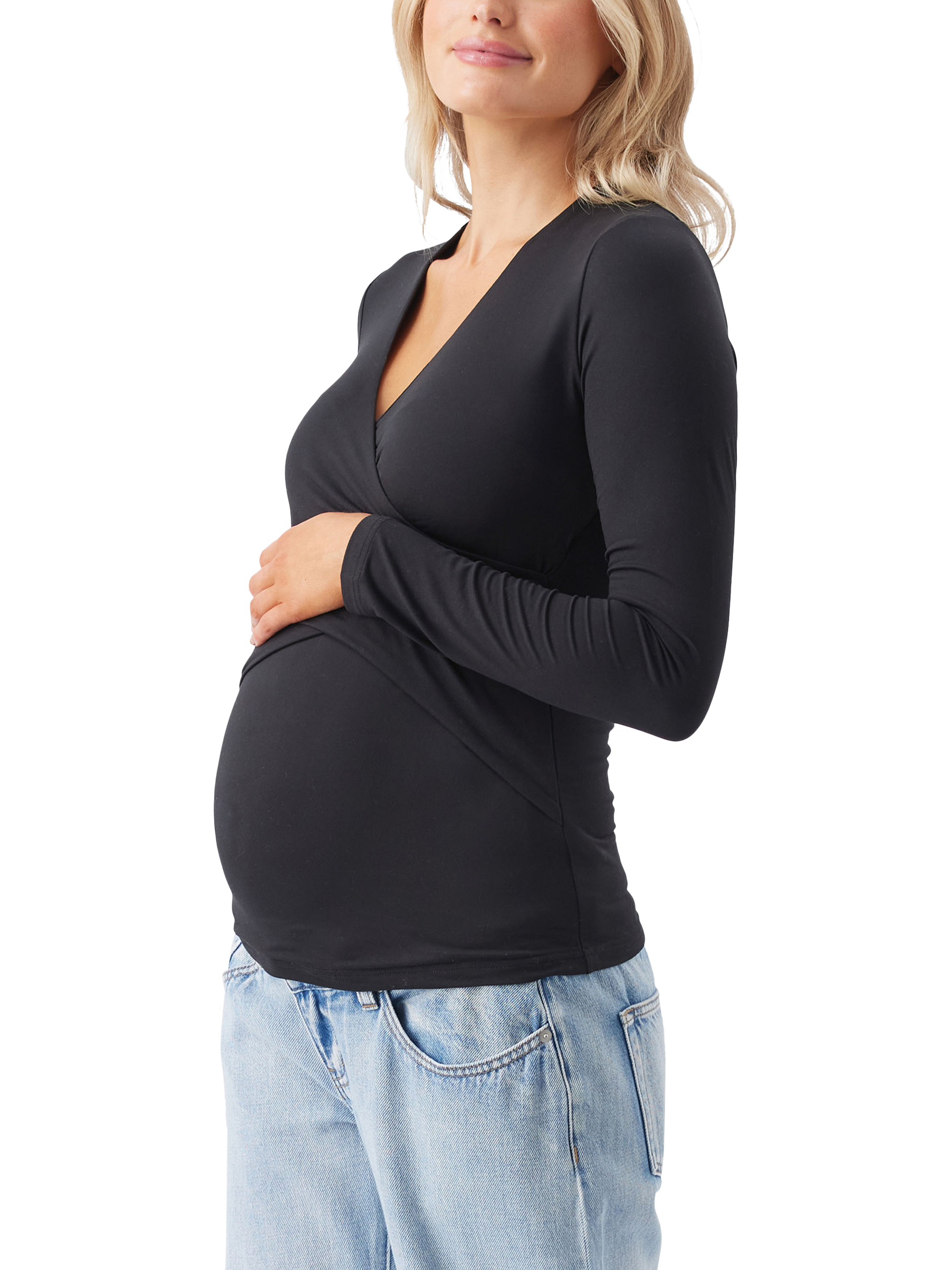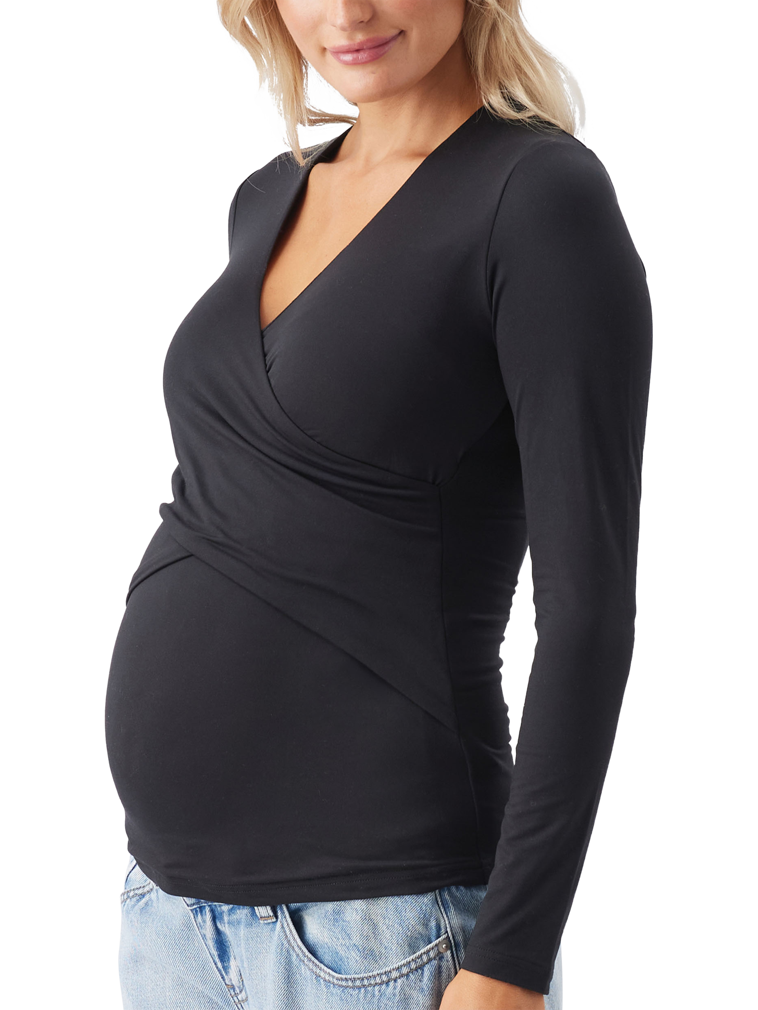 Combining the simplicity of the everyday long-sleeve top with the sophistication of an uber luxe knit fabric, the Luxe Knit Embrace Nursing Top is lightweight, allowing for breathability and comfort from AM to PM. Crafted from a soft, stretchy polyester jersey fabric, this top hugs the contours of the body and your beautiful bump. Featuring a signature cross-over front, this is an essential top for your maternity and nursing wardrobe as it will carry you throughout your pregnancy and also support your nursing journey. Wear it on its own, or as a foundational layer. This nursing-friendly top pairs perfectly with everything in your wardrobe all year round.