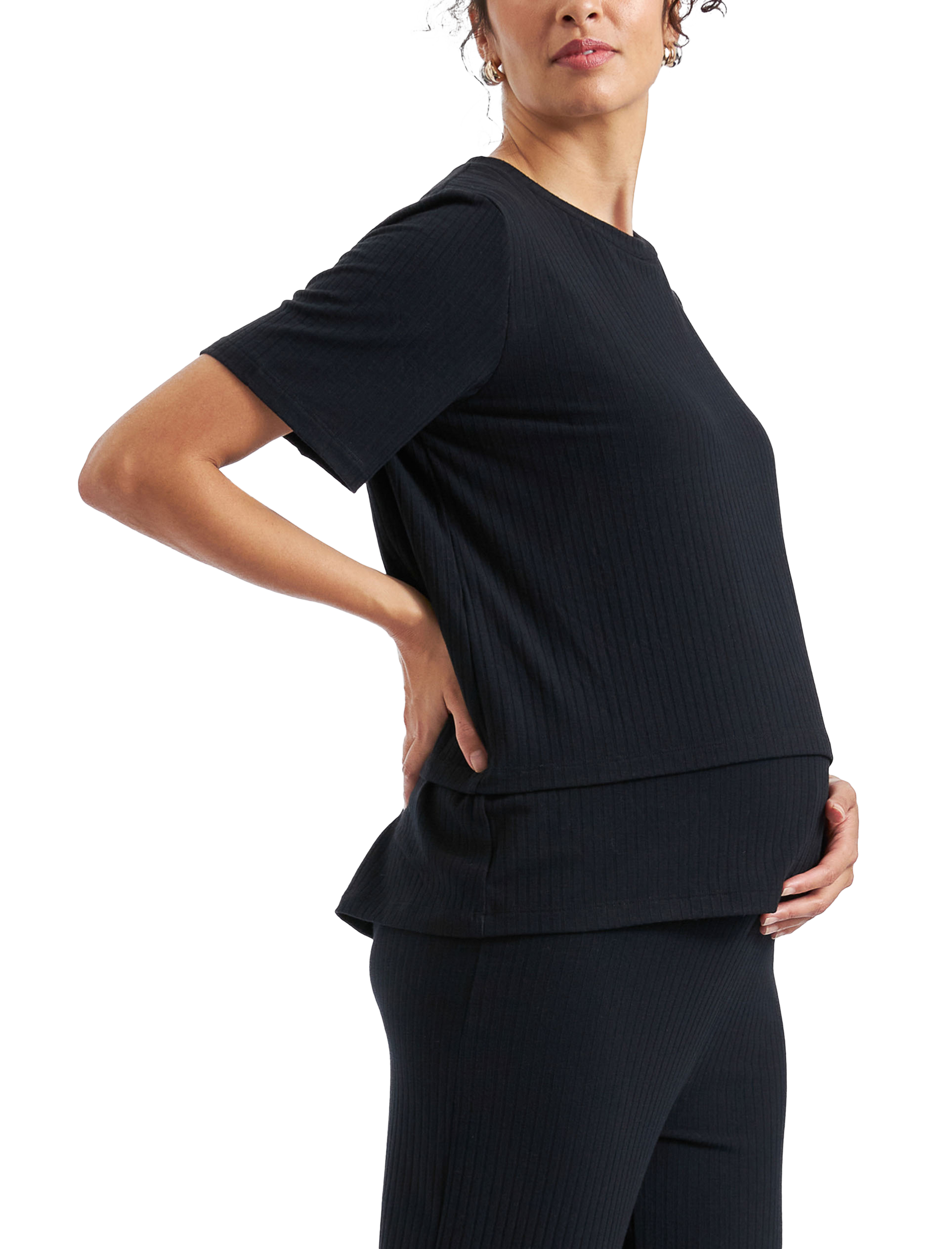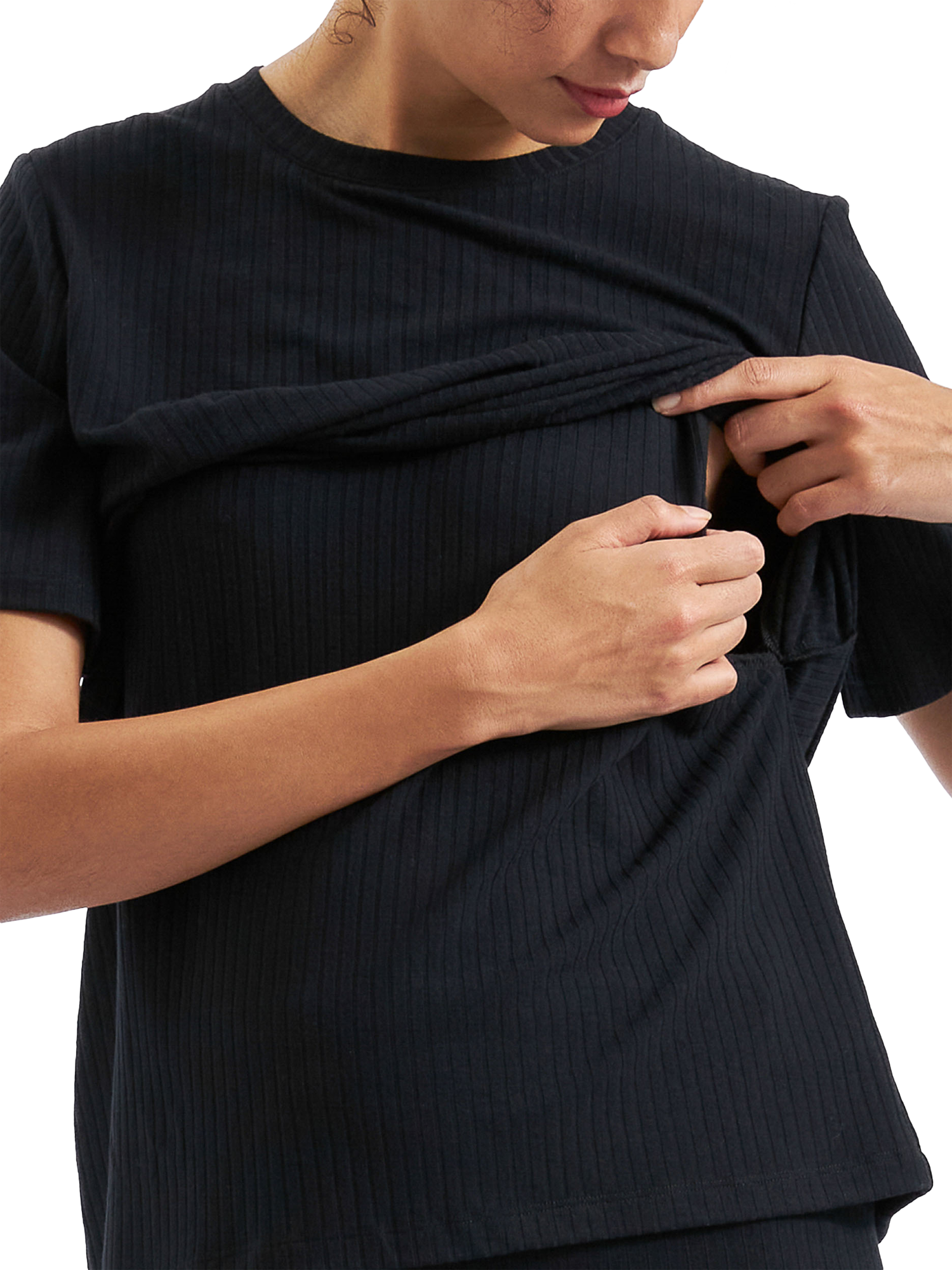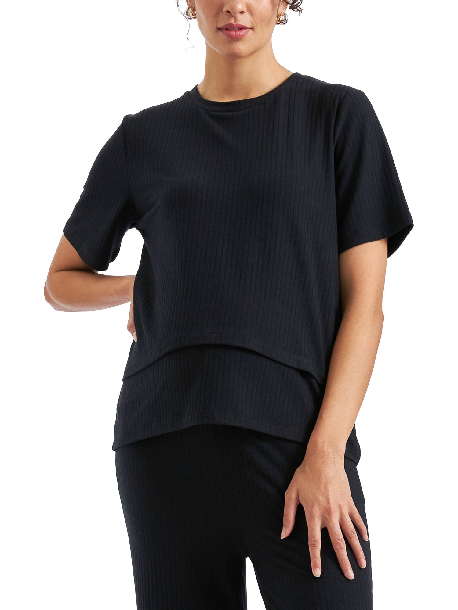 Meet our Mike Rib Nursing Top - the ultimate blend of comfort and convenience for nursing mums! With a relaxed fit, classic neckline and a clever lift-up overlayer, it offers easy nursing access without compromising on style.