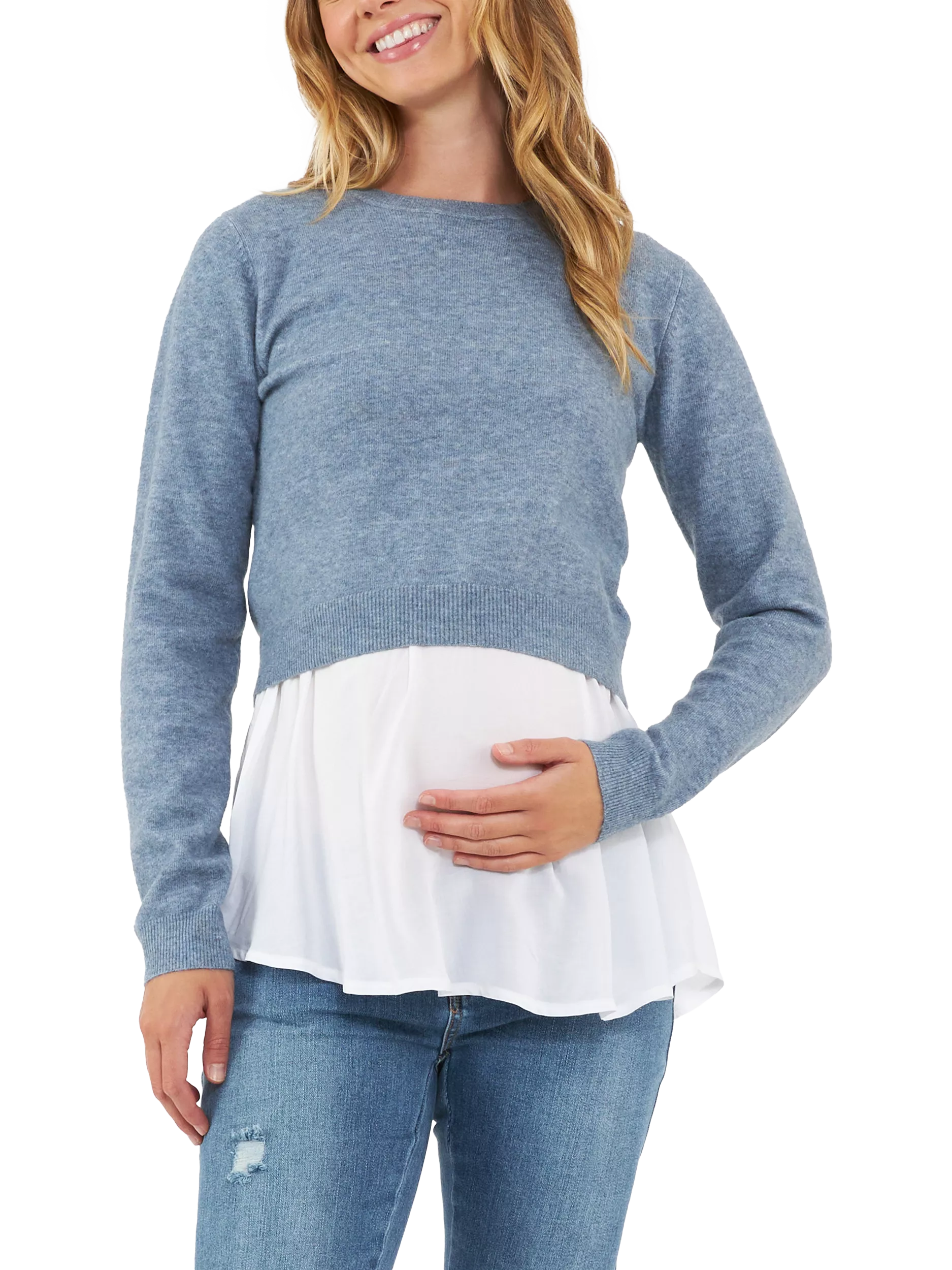 From work to the weekend, the Sandy Detachable Nursing Knit will be on high rotation! This versatile top features a removable under-layer, leaving a cute cropped knit - perfect for pairing with high waisted skirts, layering over dresses or wear as a set with the Dani Knit Skirt. Post-pregnancy the duo provides easy, discreet nursing access.
