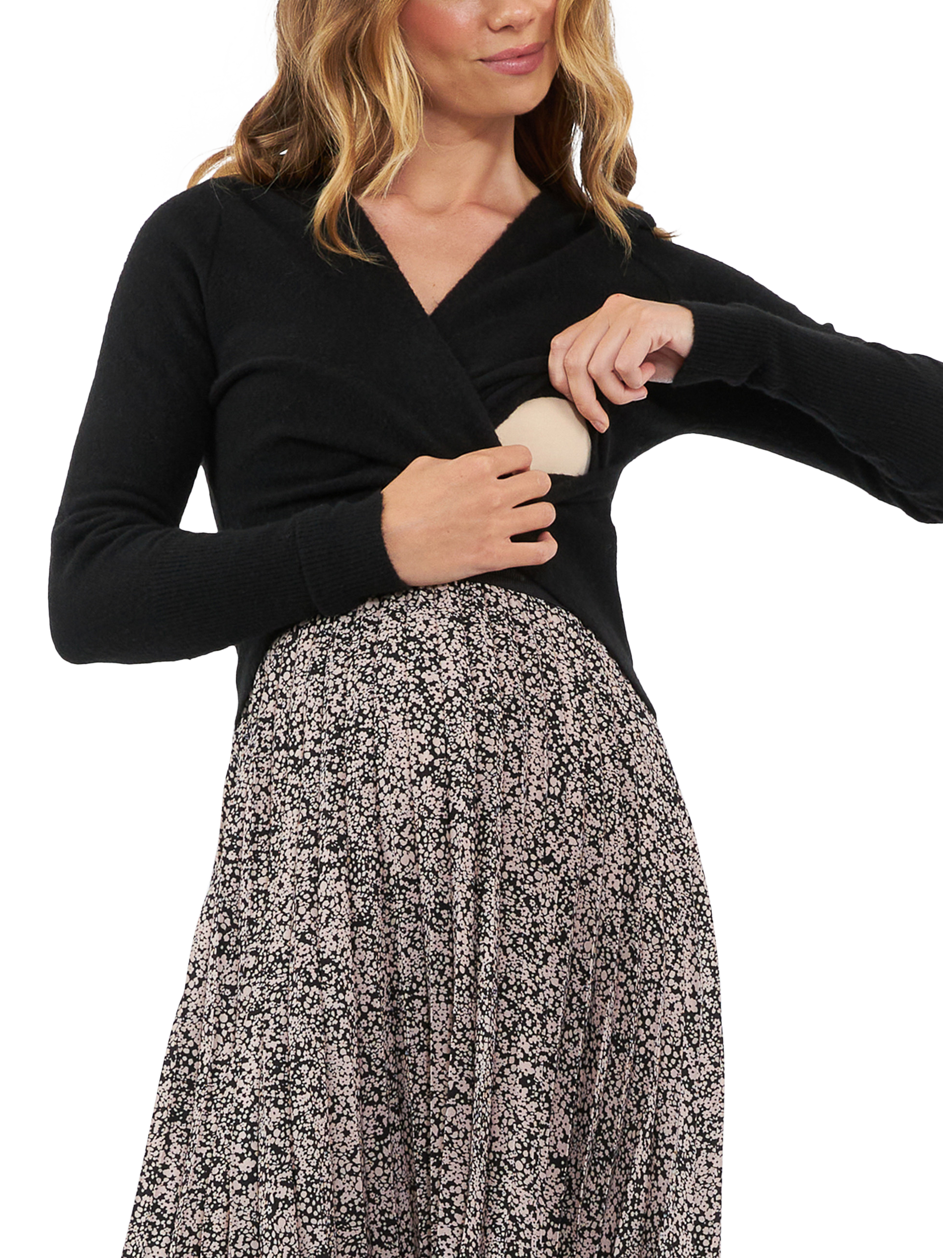 The perfect knit to pair with all your high-waisted bottoms. Ripe's Willa nursing knit features a feeding-friendly cross over design, cropped length and long sleeves.